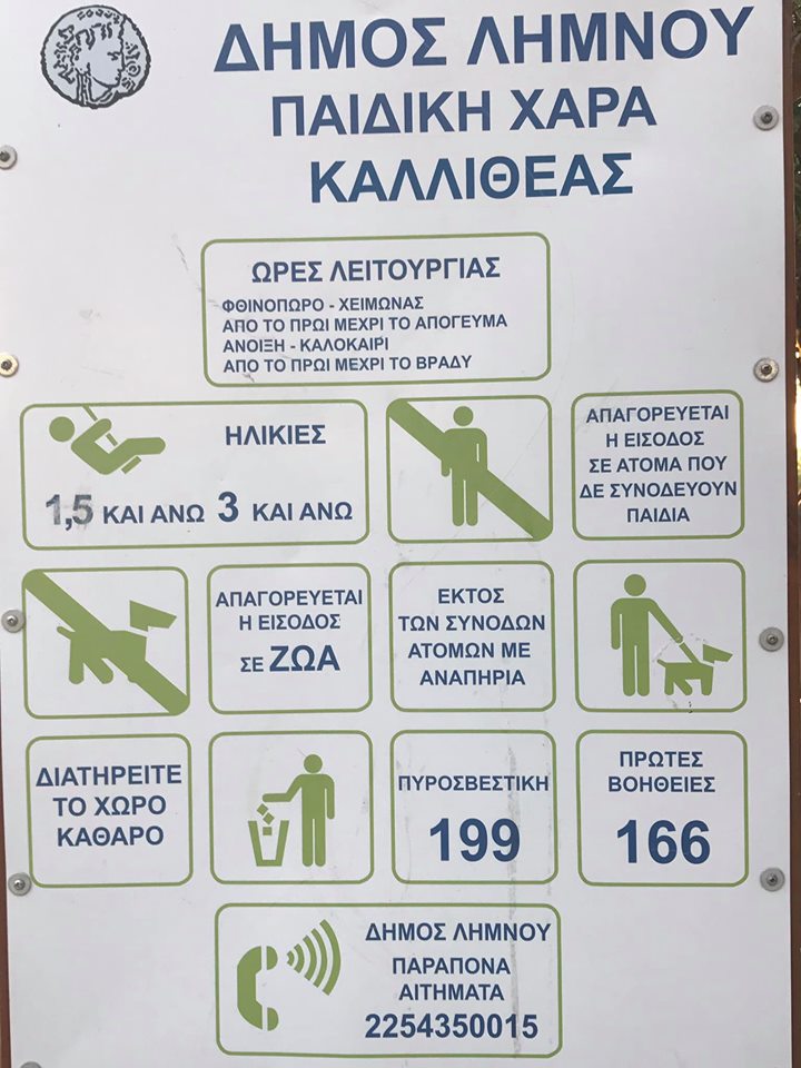 «Επειδή στην παιδική χαρά δημιουργούνται διάφορα προβλήματα, γίνεται γνωστό ότι:
