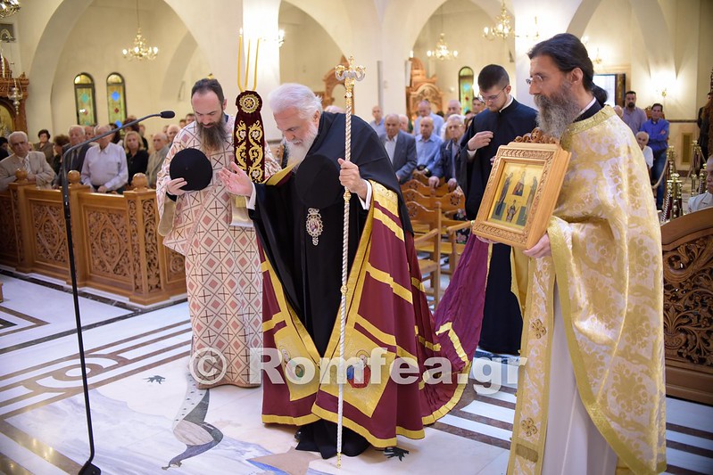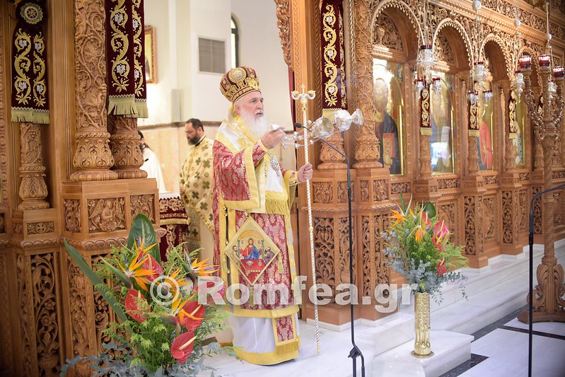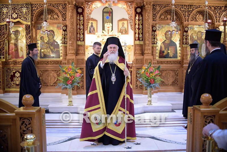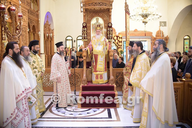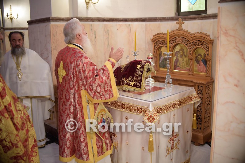 Στην Θεία Λειτουργία προεξήρχε ο Σεβ. Μητροπολίτης Λήμνου και Αγίου Ευστρατίου κ. Ιερόθεος Γ’, πλαισιούμενος από τον Προϊστάμενο του Ναού π. Ματθαίο Χάλαρη, τους συνεφημερίους του και κληρικούς Ιερών Μητροπόλεων.