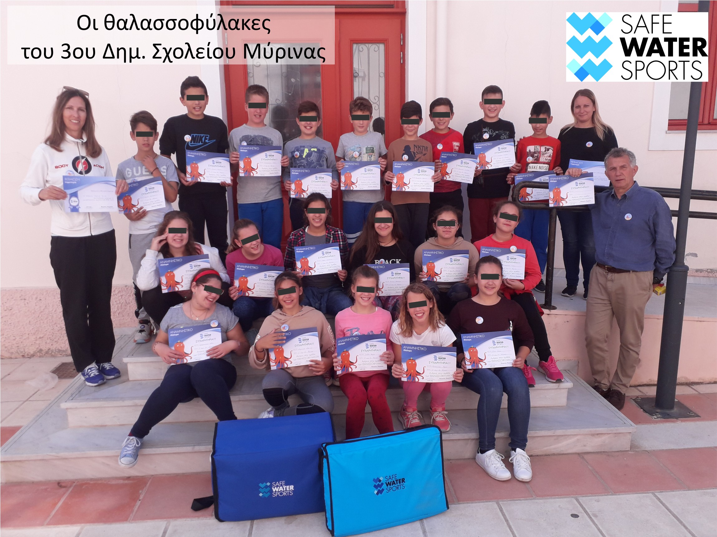 Το 3ο Δημοτικό Σχολείο Μύρινας, πήρε μέρος στο εκπαιδευτικό πρόγραμμα “SafeWaterSports” με τους/τις μαθητές/τριεςτης Ε’ τάξης σχολ. έτους 2018-2019. Στο πλαίσιο του 1ουΣυνεδρίου Θαλασσοφυλάκων που πραγματοποιήθηκε στο Πλωτό Μουσείο Νεράιδας στη Μαρίνα Φλοίσβου βραβεύτηκε ως το σχολείο της περιφέρειας Βορείου Αιγαίου που υλοποίησε τις περισσότερες δραστηριότητες του προγράμματοςτην χρονιά που πέρασε.