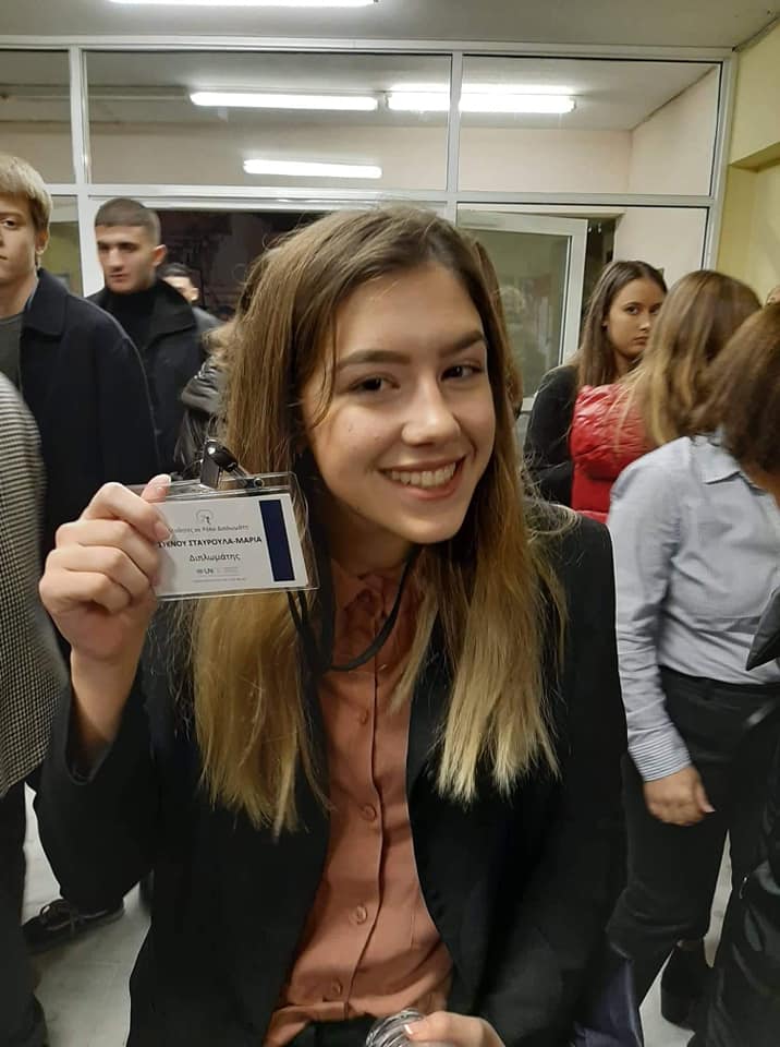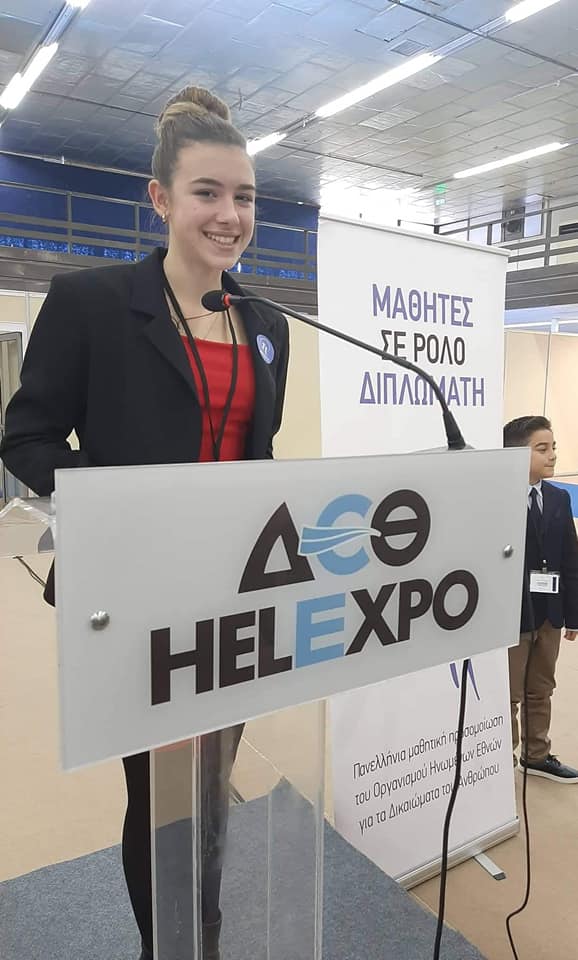 Η μαθήτρια μας εκπροσώπησε το σχολείο μας και τη Λήμνο ως επίτροπος του Περού επιλέγοντας ως θεματική τη βία κατά των γυναικών. Στην προσομοίωση συμμετείχαν 700 μαθητές από σχολεία όλης της χώρας.
