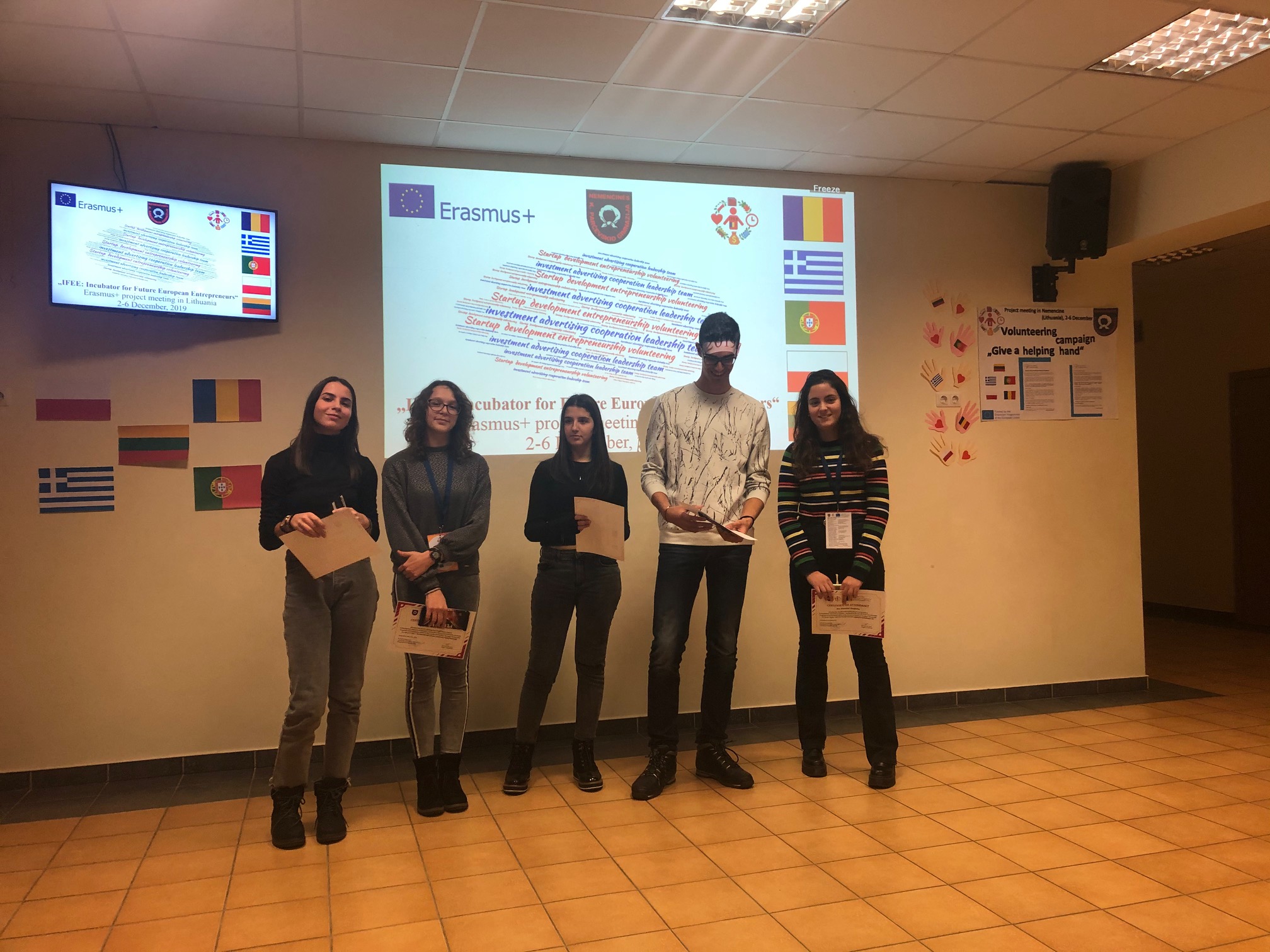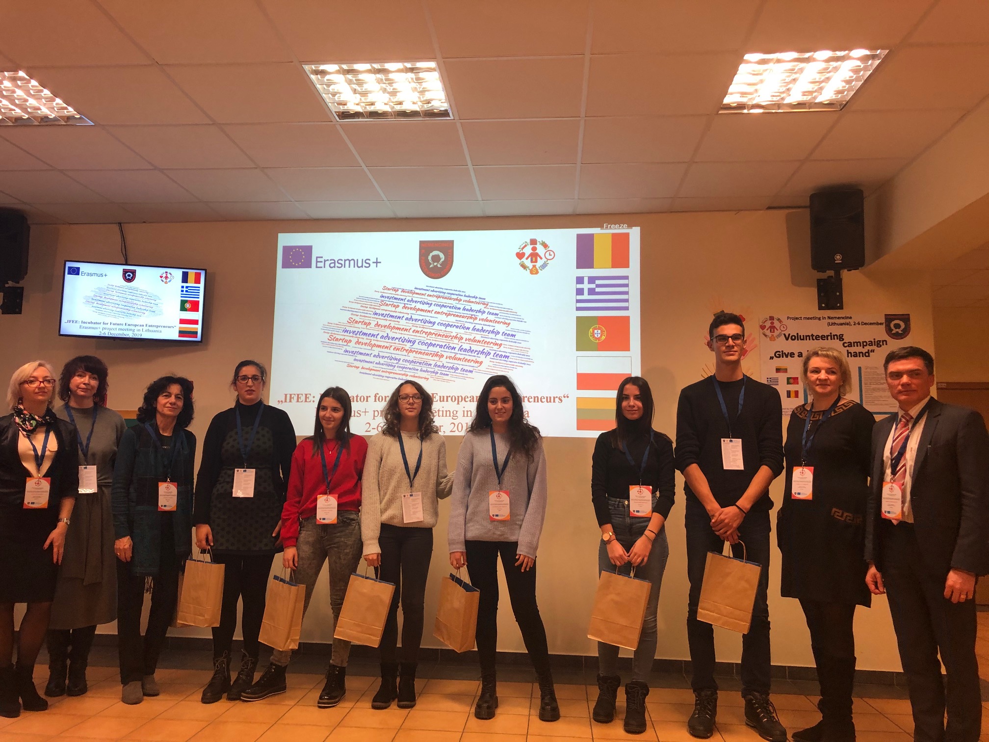 Στο σχολείο του Nemencine συμμετείχαν σε διάφορες δραστηριότητες και έμαθαν για τη σημασία της SWOT ανάλυσης για την επέκταση των επιχειρήσεων, κατασκεύασαν χριστουγεννιάτικα στολίδια, υλοποίησαν εθελοντική δράση για την οικονομική ενίσχυση του νοσοκομείου της πόλης και την Παρασκευή το βράδυ παρακολούθησαν την φωταγώγηση του χριστουγεννιάτικου δέντρου.