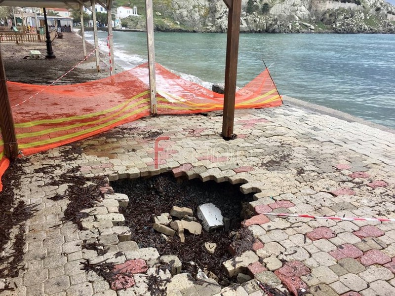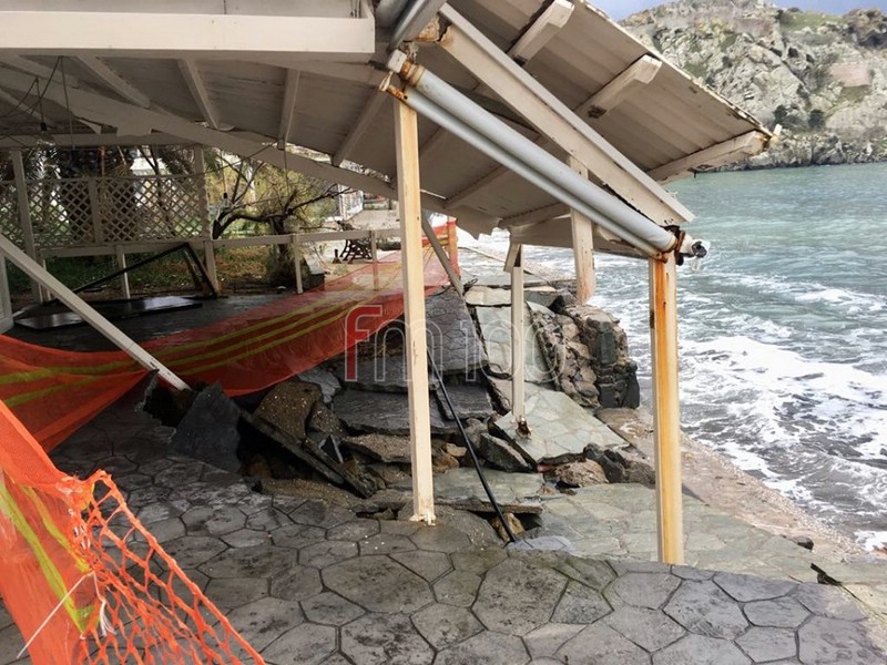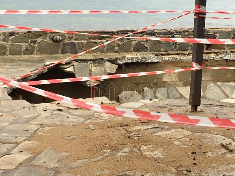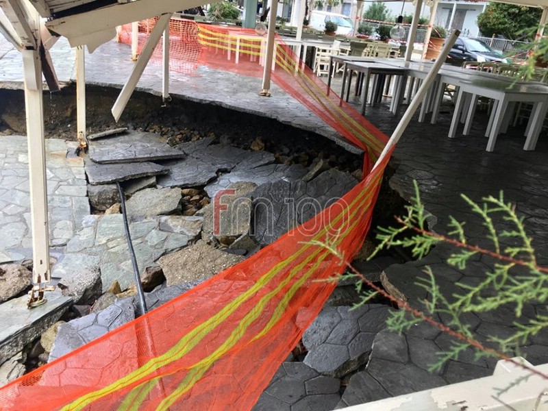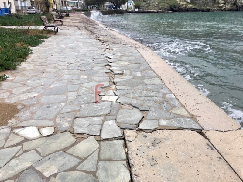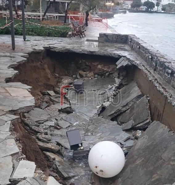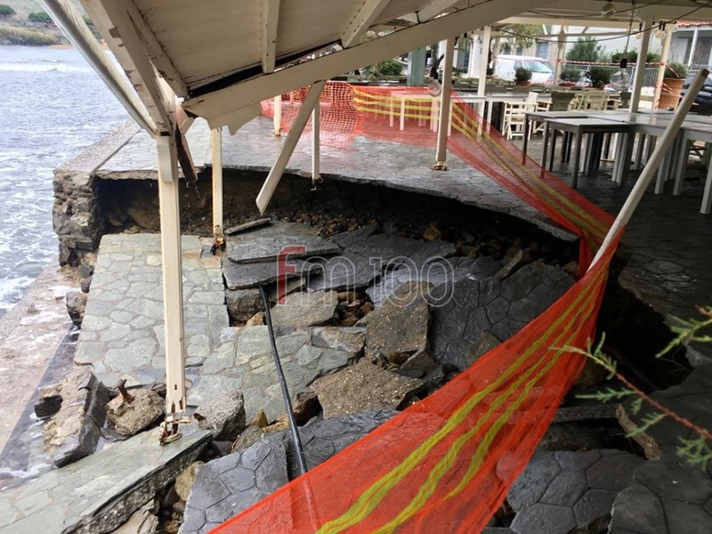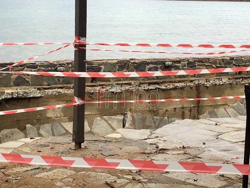 Η δημοτική αρχή έχει αποκλείσει τα σημεία με κόκκινες κορδέλες και ο Δήμαρχος του νησιού, μιλώντας σήμερα στο μεσημεριανό δελτίο ειδήσεων της ΕΡΤ ανέφερε μεταξύ άλλων ότι από αύριο θα ξεκινήσουν οι εργασίες αποκατάστασης.