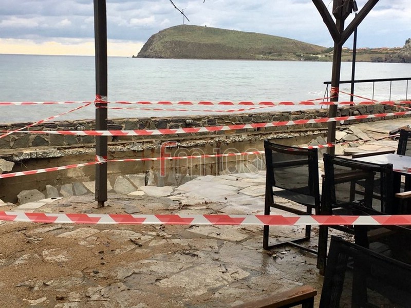 Είναι χαρακτηριστική η φωτογραφία μπροστά από το καφε Καραγκιόζης οπου το τοιχίο έχει μείνει ανέπαφο, όμως εχει υποχωρήσει μέρος της πλατειάς.