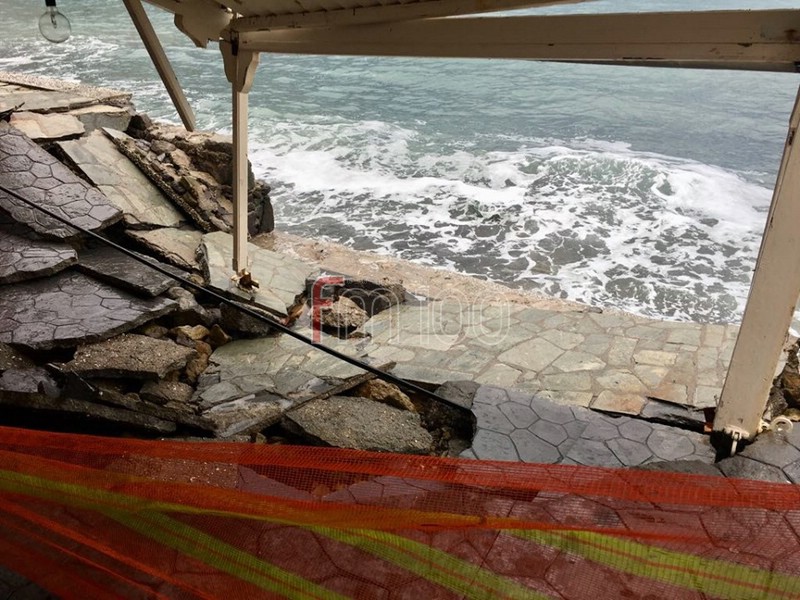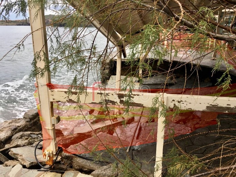 Όπως φαίνεται και στις φωτογραφίες που ακολουθούν, μεγάλα τμήματα από το τοιχίο έχουν υποχωρήσει. Όμως το πλέον ανησυχητικό είναι ότι το πρόβλημα δεν υφίσταται μόνο στο τοιχίο αλλά και στην πλατεία εκεί όπου φιλοξενούνται τα τραπεζοκαθίσματα των καταστημάτων.