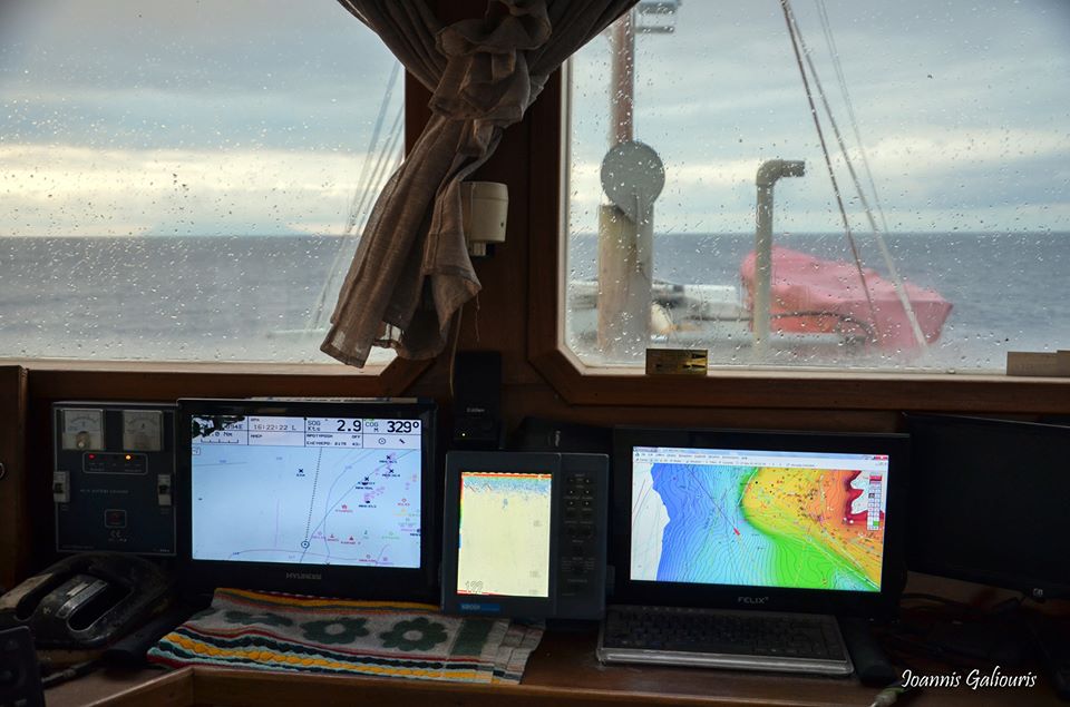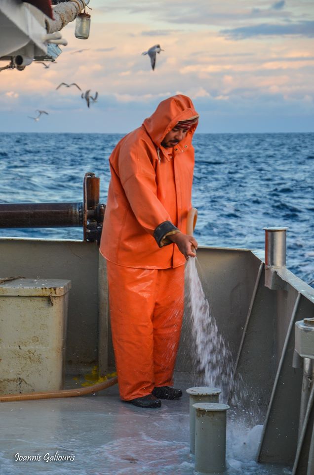 Όσο είμαστε εν πλω, είχα την ευκαιρία να ενημερωθώ για τον τρόπο λειτουργίας της τράτας, τους αυστηρούς κανόνες που διέπουν αυτό το είδος του ψαρέματος και για τον τρόπο που λειτουργεί η επιτήρηση μέσω δορυφόρου ώστε να εξασφαλιστεί η εφαρμογή των διαταγών. Ο σεβασμός στο περιβάλλον είναι στις προτεραιότητες του συνεπή κυβερνήτη αλιευτικού.