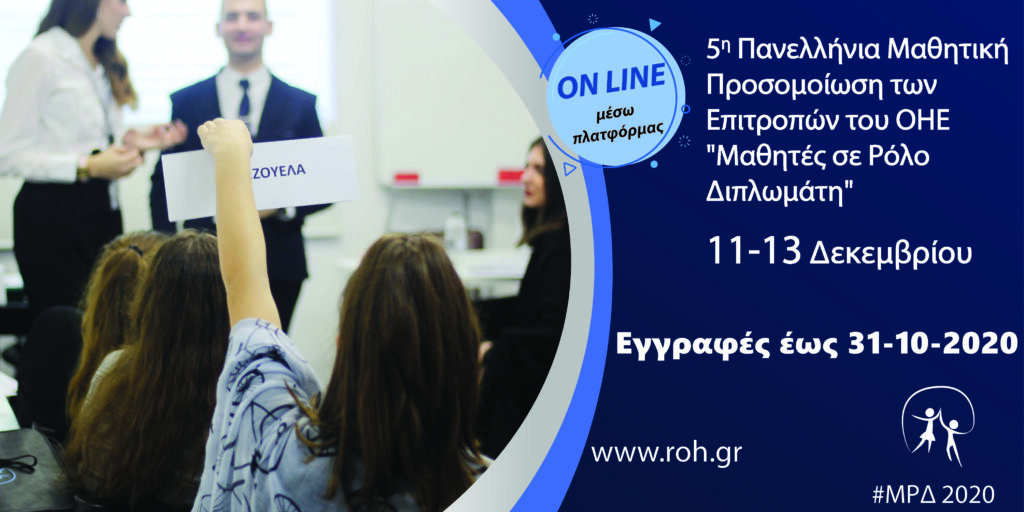 Η φετινή 5η Πανελλήνια μαθητική προσομοίωση των Επιτροπών του ΟΗΕ για τα Δικαιώματα του Ανθρώπου “Μαθητές σε ρόλο Διπλωμάτη” τελεί υπό την αιγίδα τόσο του Υπουργείου Παιδείας και Θρησκευμάτων, όσο και του Περιφερειακού Κέντρου Πληροφόρησης του ΟΗΕ. Παράλληλα, συμπίπτει με την επέτειο των 75 χρόνων από την Ίδρυση του Οργανισμού Ηνωμένων Εθνών, η οποία εορτάζεται παγκοσμίως!