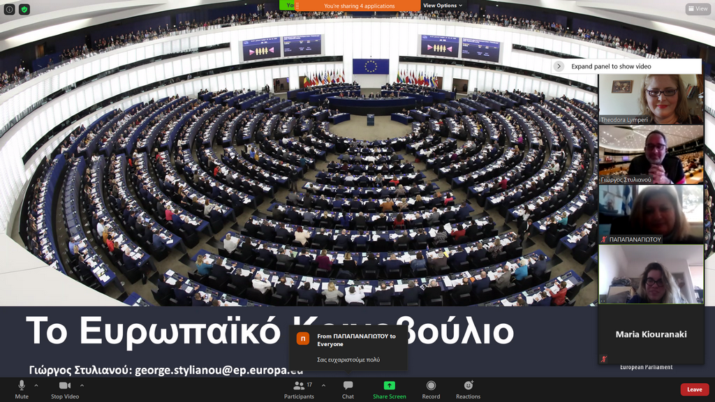 Όπως αναφέρεται στο σχετικό δελτίο Τύπου που εξέδωσε το σχολείο: «Την ξενάγηση πραγματοποίησε ο κ. Γιώργος Στυλιανού, Γενικός Διευθυντής Επικοινωνίας της Μονάδας επισκέψεων και σεμιναρίων του Ευρωπαϊκού Κοινοβουλίου, τον οποίο ευχαριστούμε πολύ».