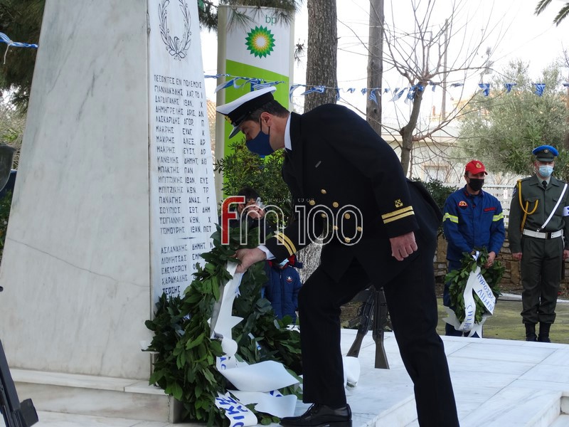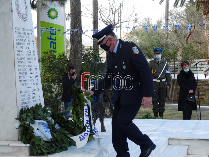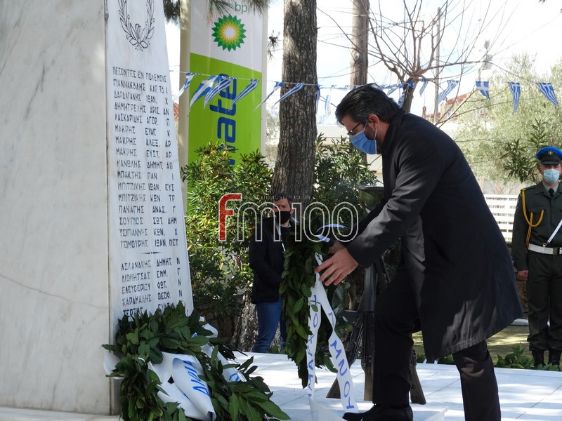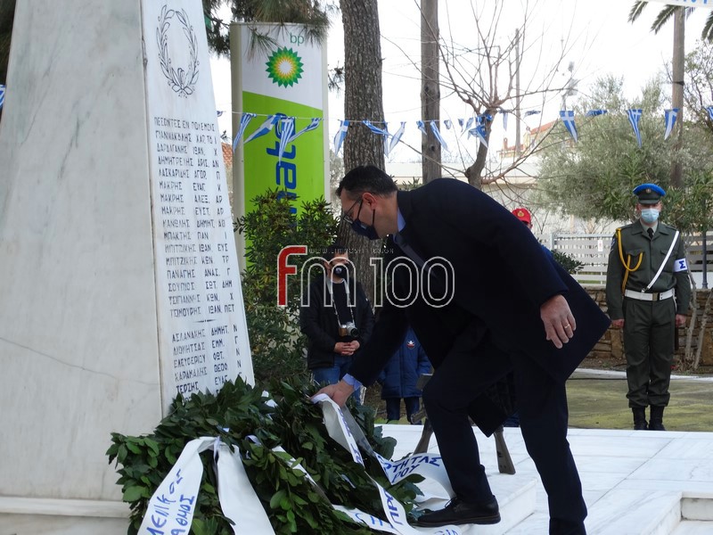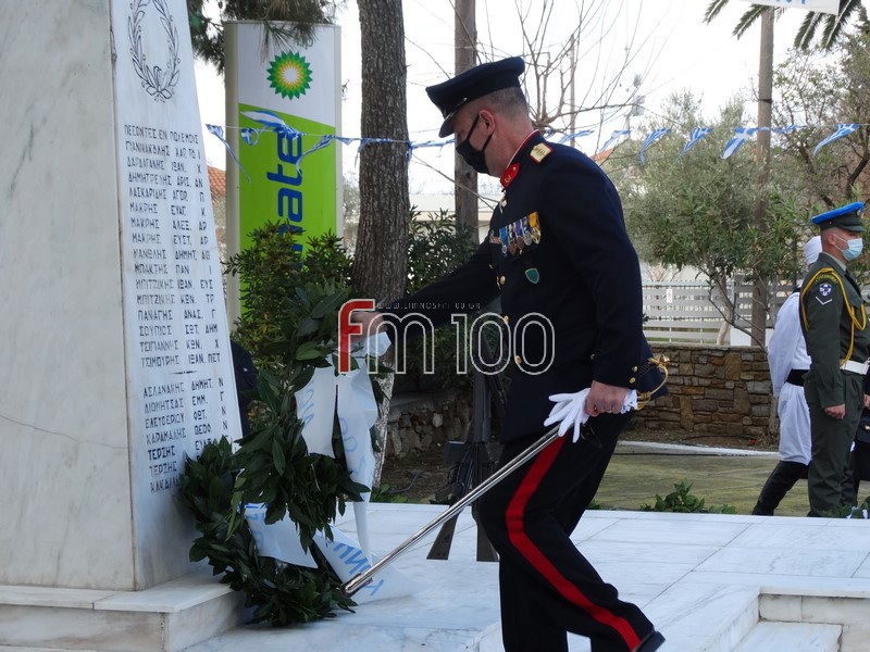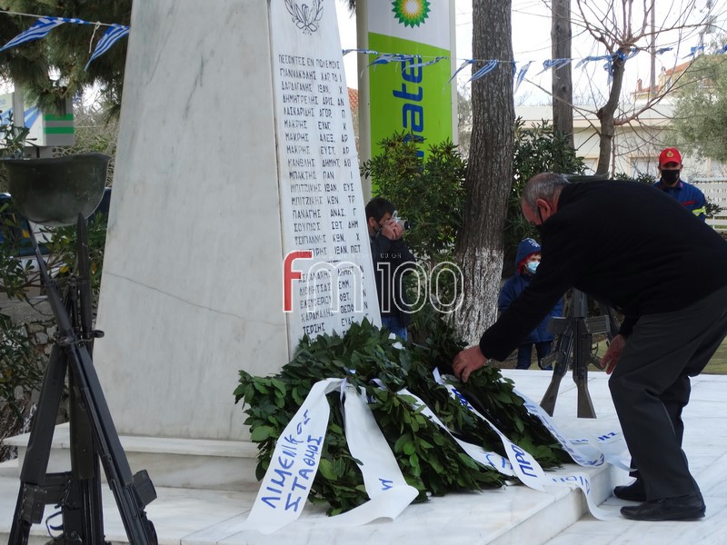 Στη συνέχεια, ακολούθησε επιμνημόσυνη δέηση και κατάθεση στεφάνων στον χώρο του Ηρώου Πεσόντων από την πολιτική ηγεσία του νησιού και εκπροσώπους των Ενόπλων Δυνάμεων και των Σωμάτων Ασφαλείας. Μετά το πέρας της τελετής οι παρευρισκόμενοι έψαλαν όλοι μαζί τον Εθνικό Ύμνο.
