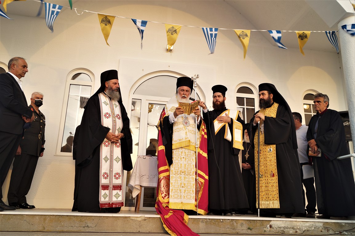 Παρέστησαν οι πολιτικές και στρατιωτικές αρχές, εκπρόσωποι φορέων και πλήθος πιστών στον αύλειο χώρο στο λόφο γύρω από τον Ι. Ναό.
