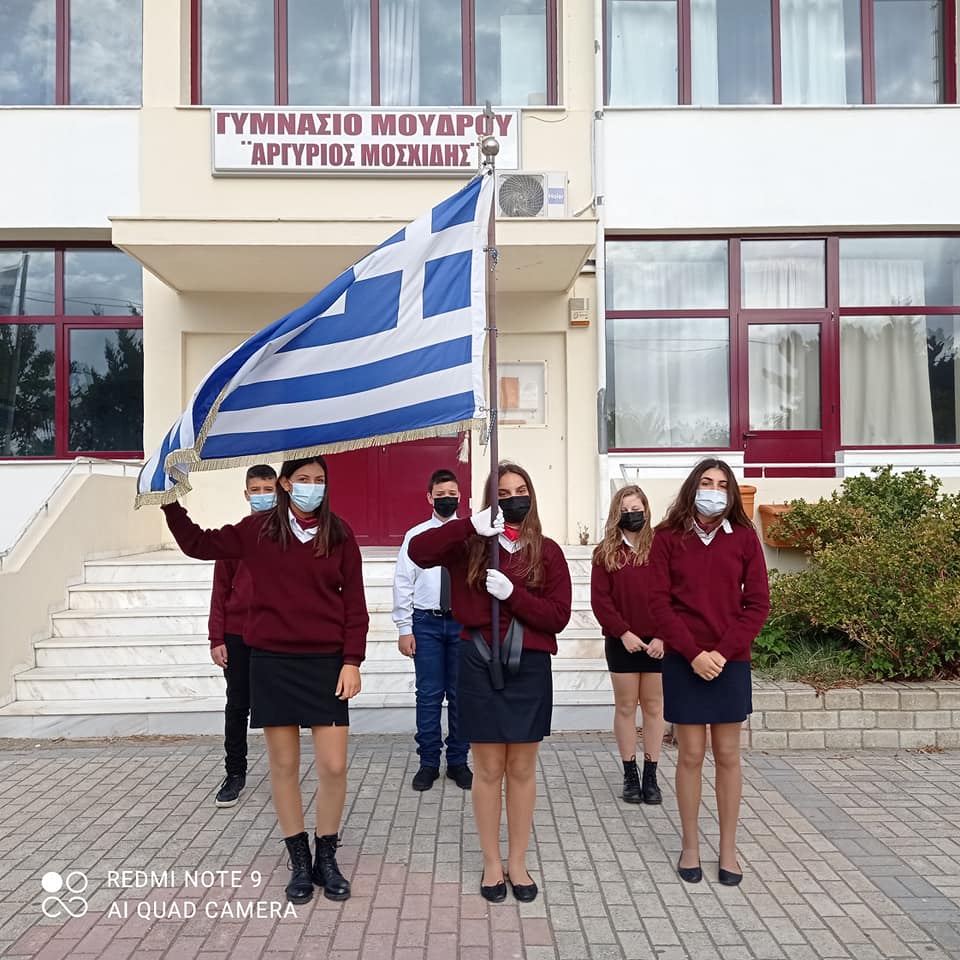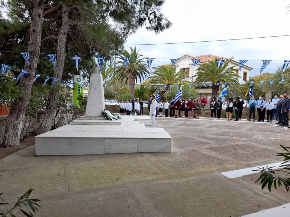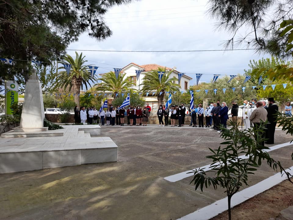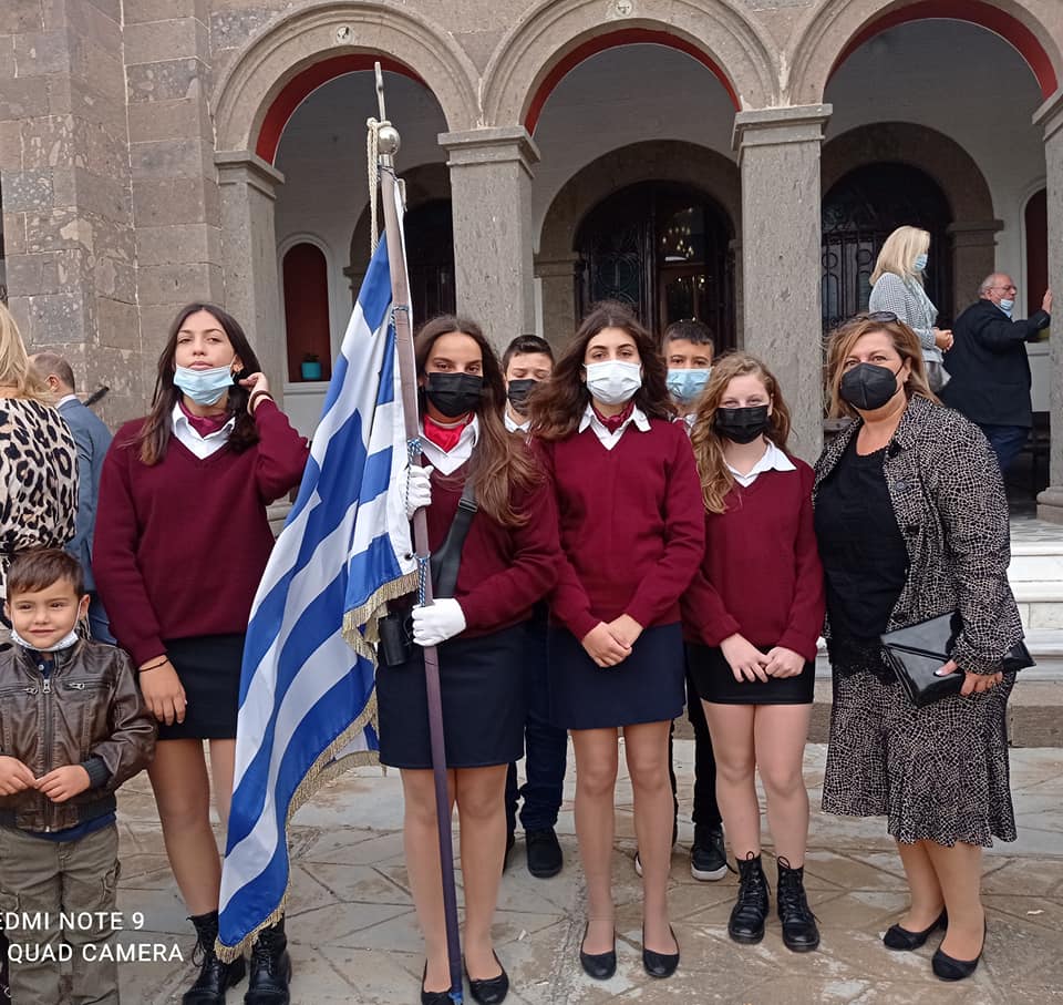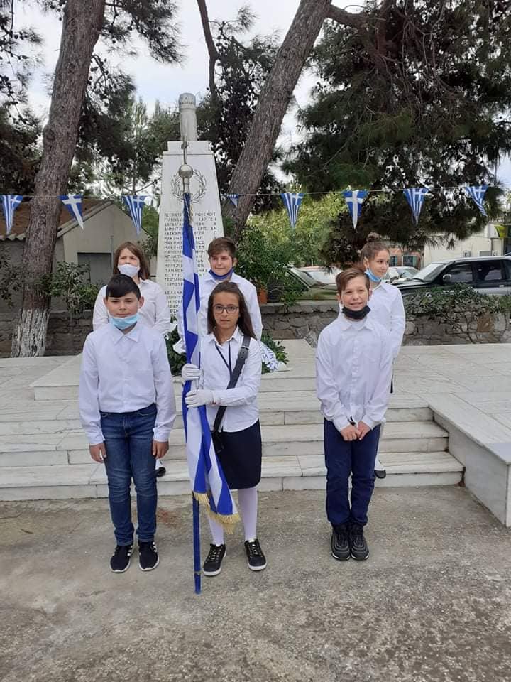 Στις εορταστικές εκδηλώσεις συμμετείχε επίσης αποστολή μαθητών του Δημοτικού Σχολείου Μούδρου, η οποία τίμησε την επέτειο με καμάρι.