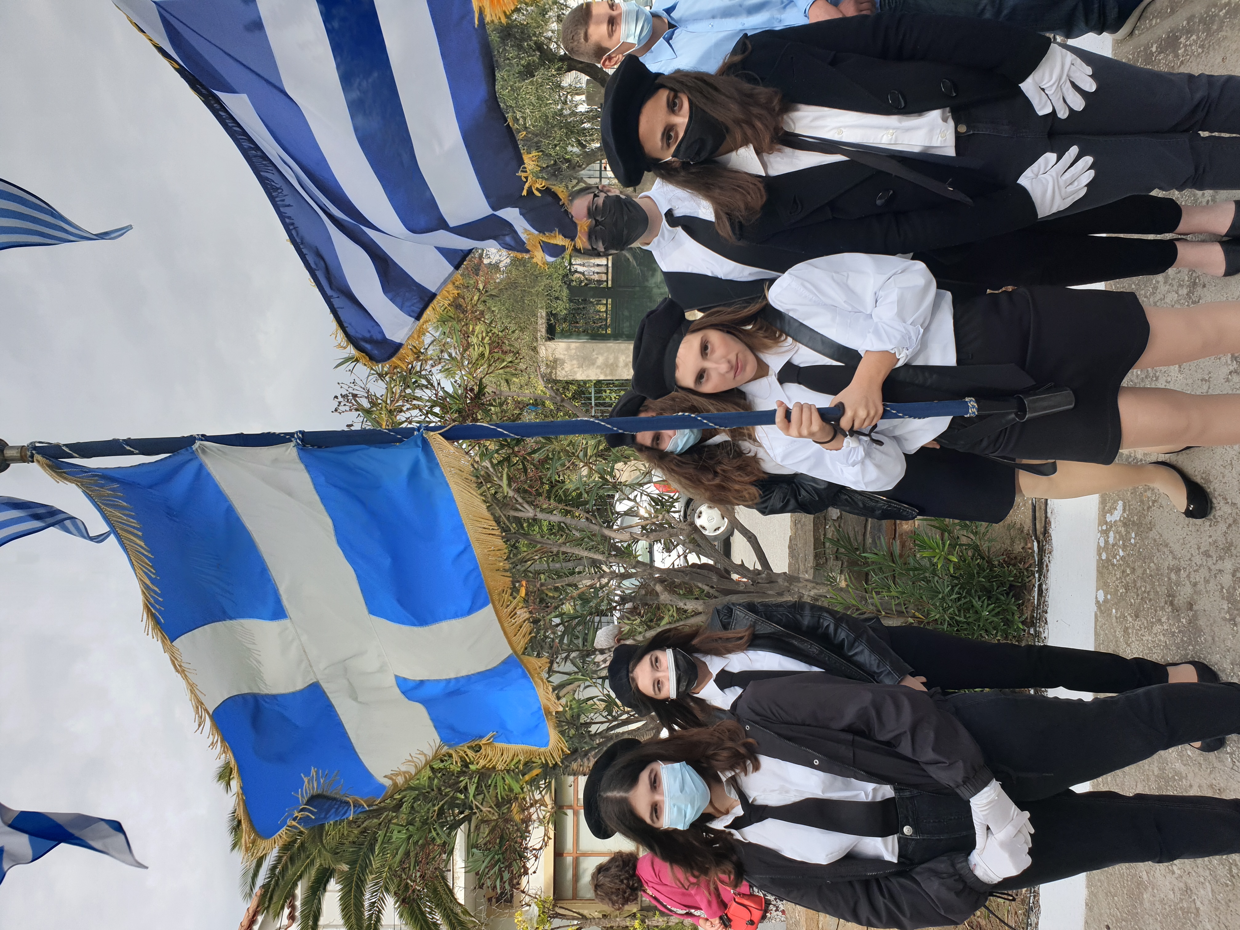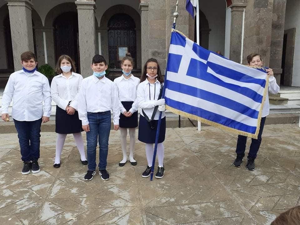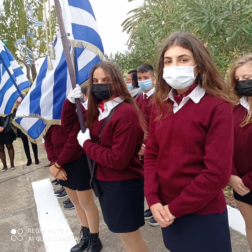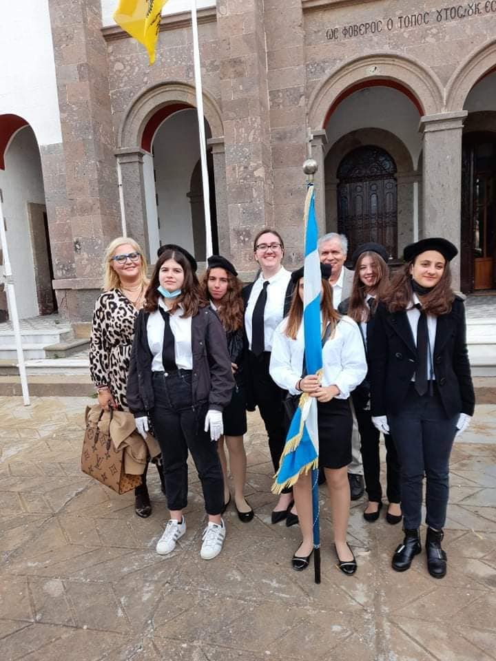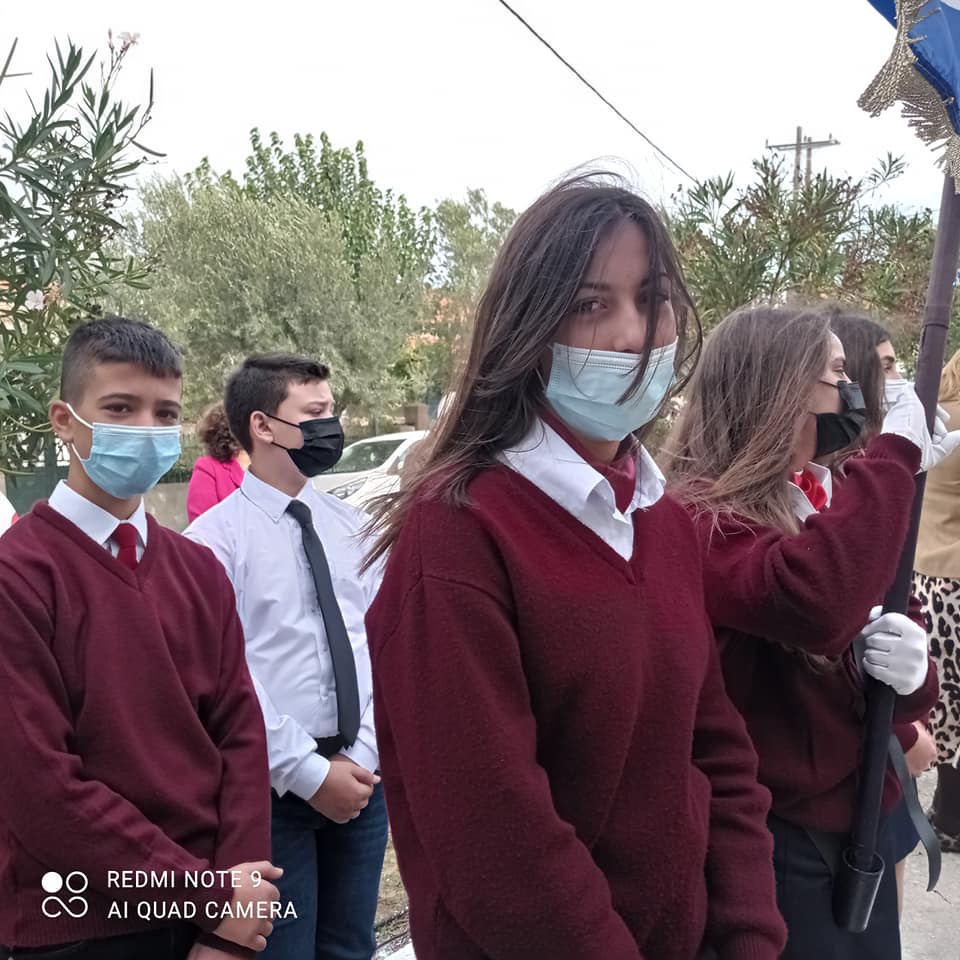 Στις εορταστικές εκδηλώσεις συμμετείχε επίσης αποστολή μαθητών του Δημοτικού Σχολείου Μούδρου, η οποία τίμησε την επέτειο με καμάρι.