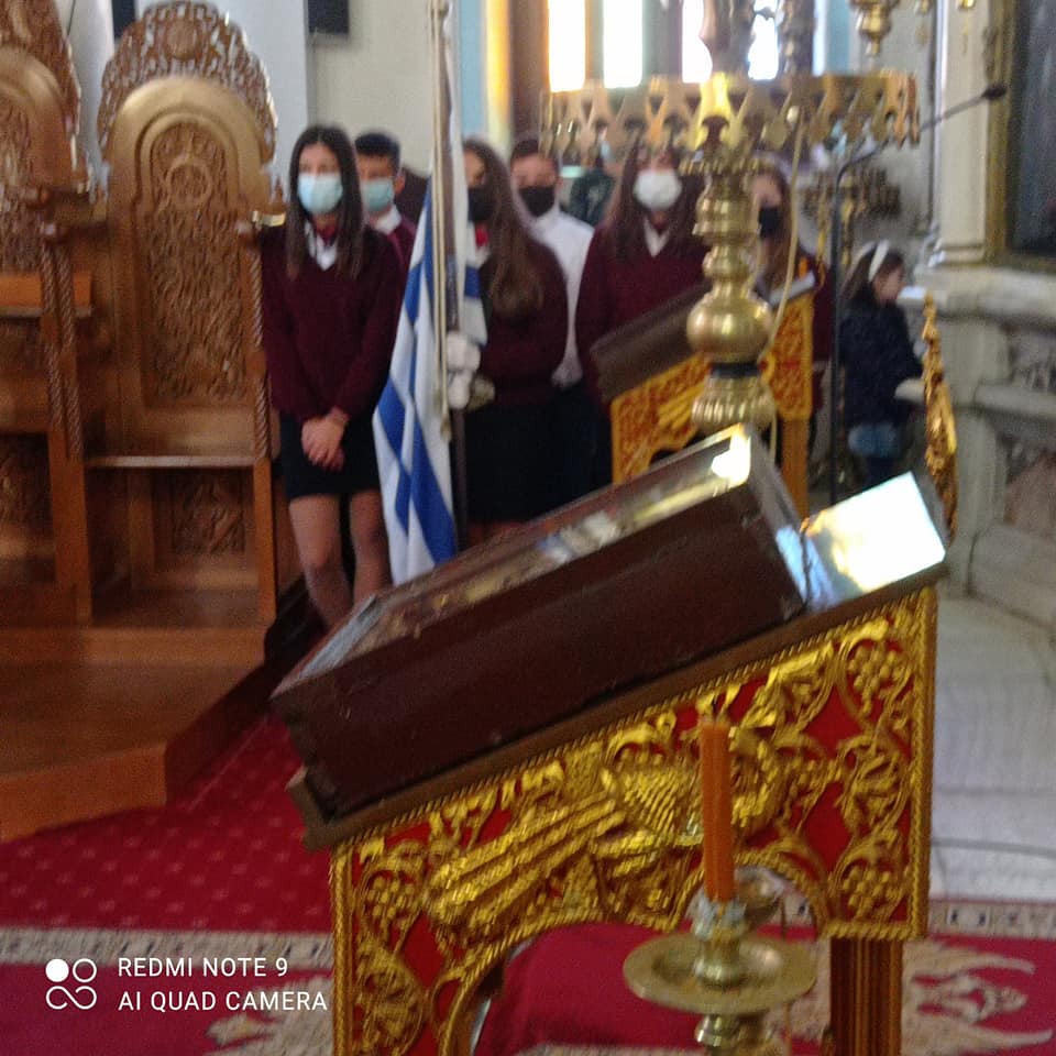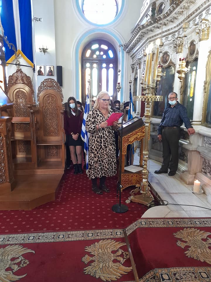 Για τη σημασία της ημέρας μίλησε στο εκκλησίασμα η εκπαιδευτικός του Γενικού Λυκείου Μούδρου, κ. Θεοδώρα Λυμπέρη.