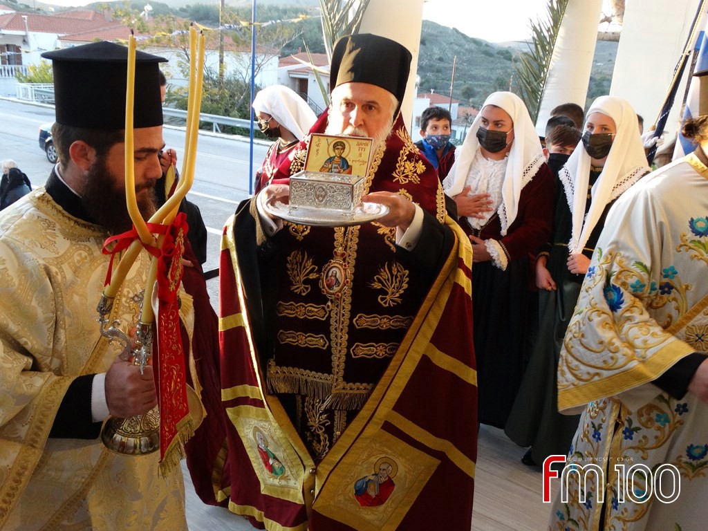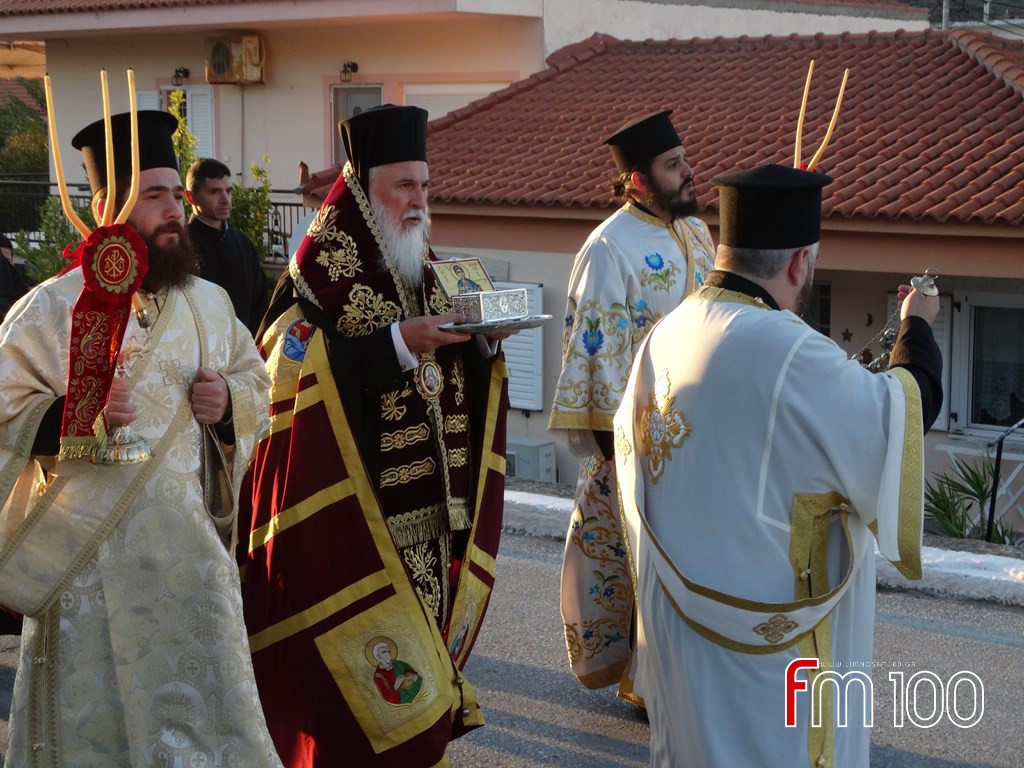 Αφού η πομπή έφτασε στον Ιερό Ναό, ακολούθησε Μέγας Πανηγυρικός Εσπερινός χοροστατούντος του Σεβασμιώτατου Μητροπολίτη Λήμνου και Αγίου Ευστρατίου κ. Ιερόθεου.