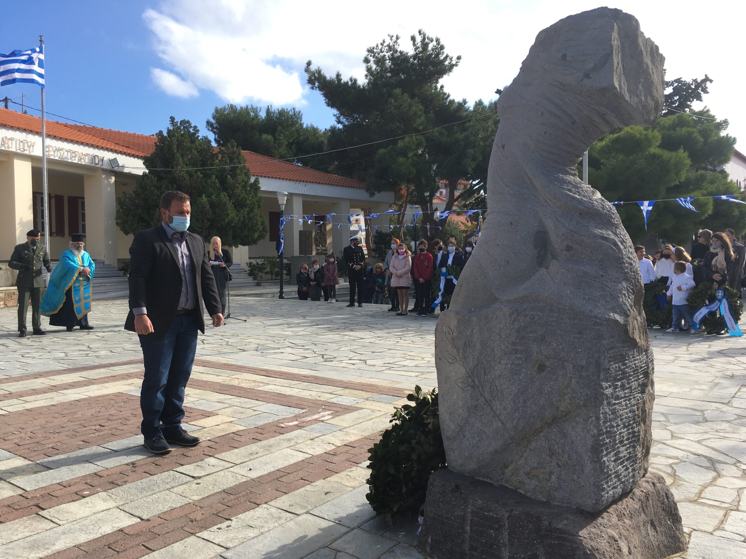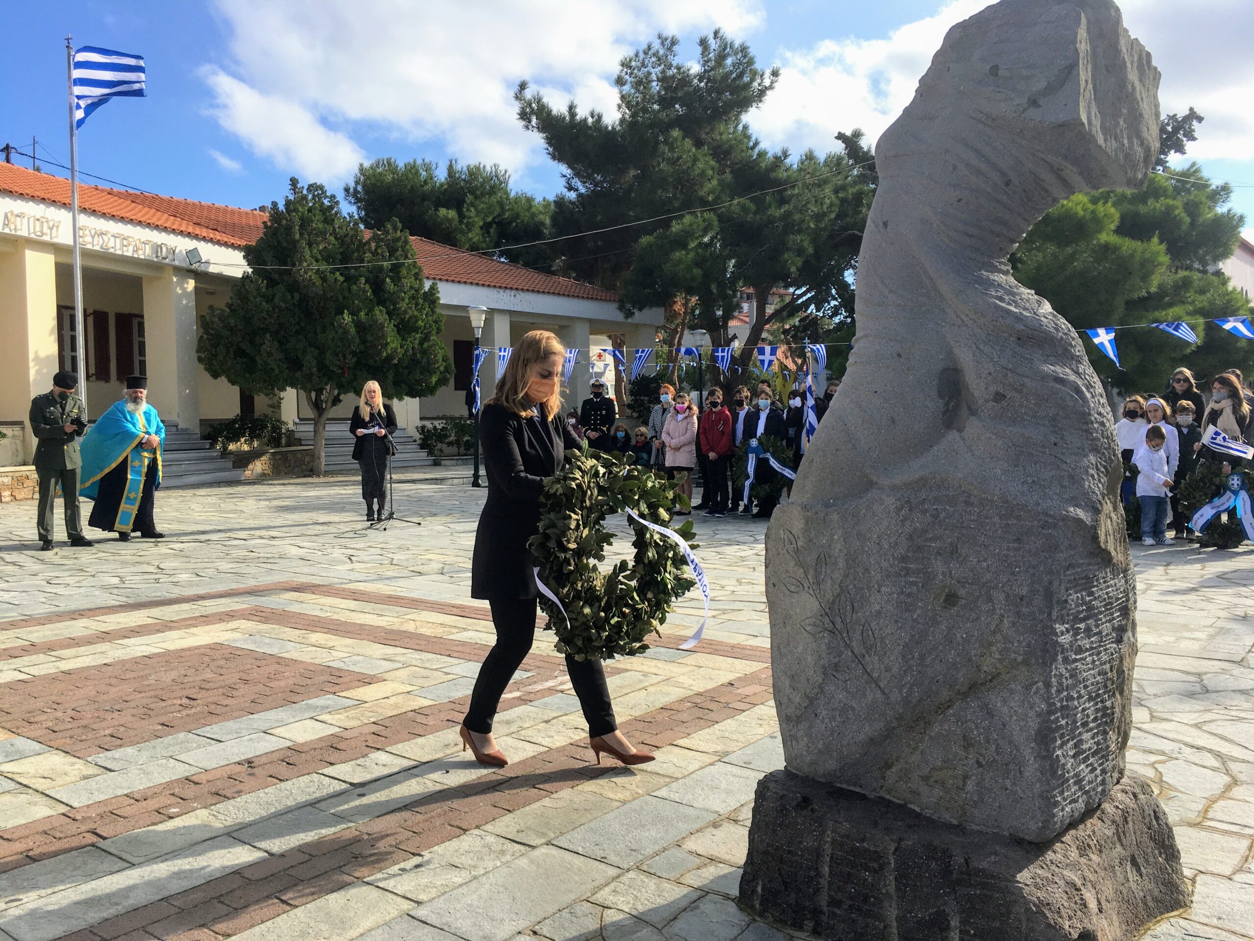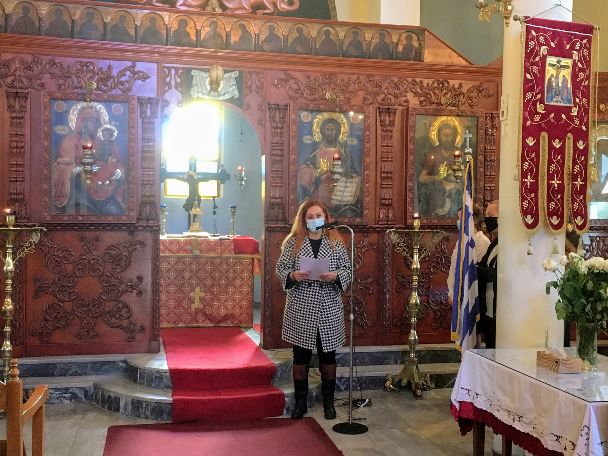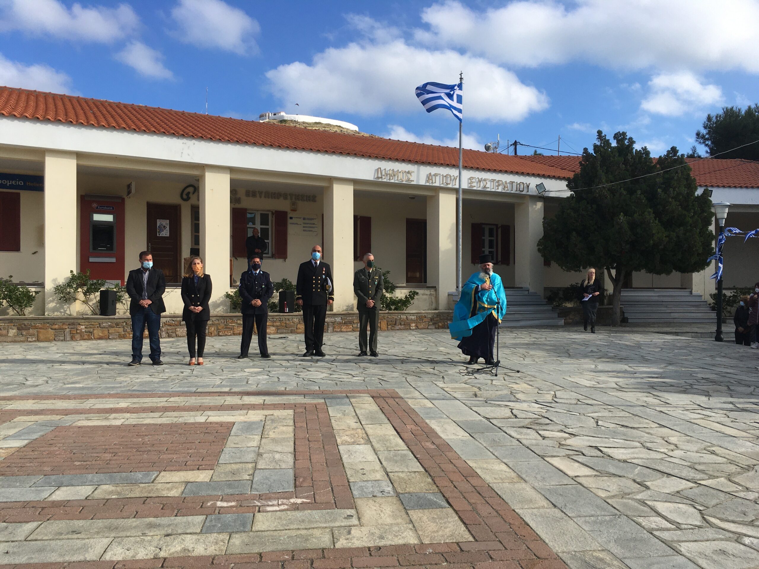 Τον Πανηγυρικό λόγο εκφώνησε η καθηγήτρια φυσικής αγωγής του γυμνασίου λ.τ. Αγίου Ευστρατίου κυρία Αλεξάνδρα Στεφανίδου.