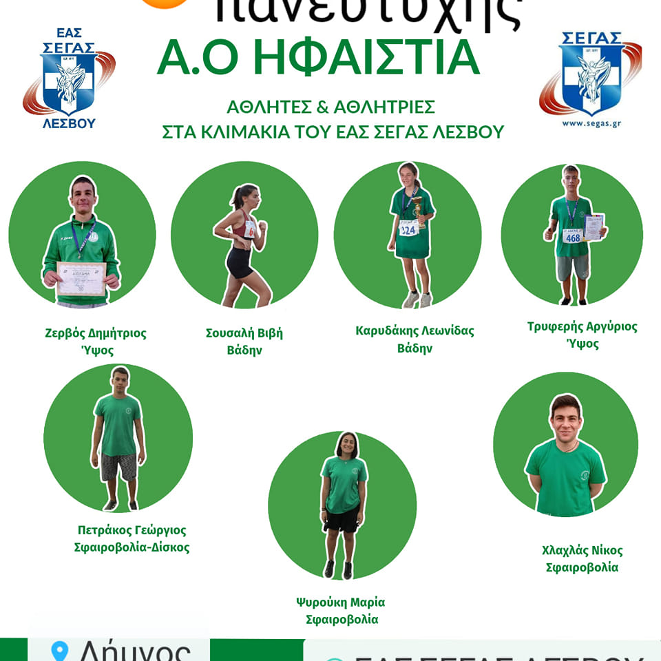 Στο κλιμάκιο της ΕΑΣ Λέσβου συμπεριλαμβάνονται είκοσι επτά (27) αθλητές και αθλήτριες, οι επτά (7) από τους οποίους ανήκουν στον Α.Ο. Ηφαιστία και οι τέσσερις (4) στην ΑΕΛ.