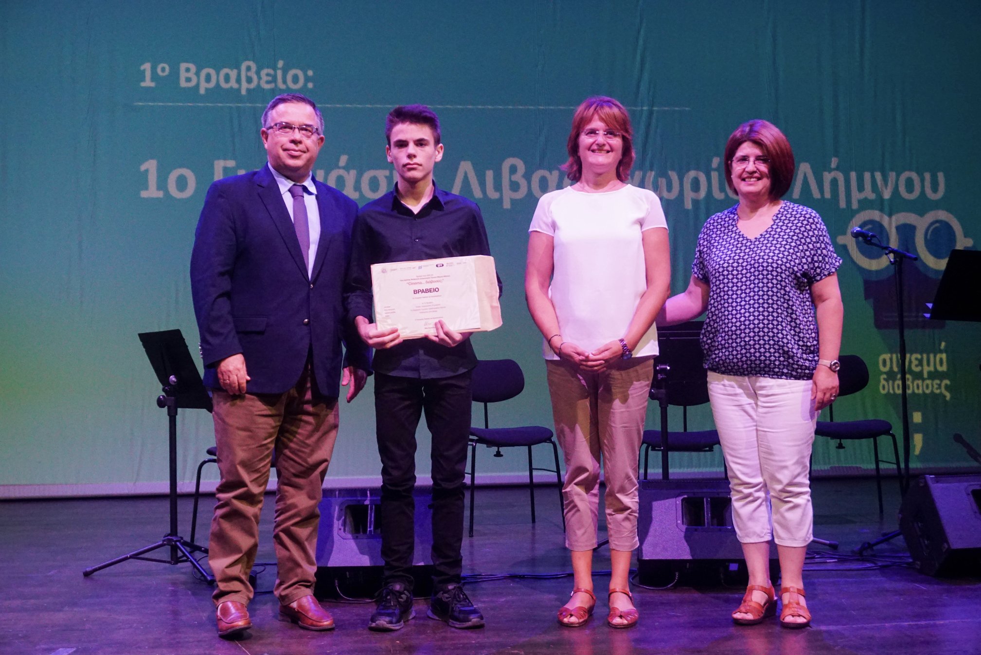 Το Γυμνάσιο Λιβαδοχωρίου εκπροσωπήθηκε από τις υπεύθυνες καθηγήτριες και τον μαθητή Χρήστο Σαμοθράκη ο οποίος έκανε τη σκηνοθεσία και το μοντάζ στην ταινία μας και παρέλαβε από τον Γενικό Γραμματέα Επικοινωνίας και Ενημέρωσης της Προεδρίας της Κυβέρνησης κ. Δημήτριο Γαλαμάτη το 1ο Βραβείο Τεκμηρίωσης για την ταινία Ντοκιμαντέρ «Λαξεύματα στον βράχο». Την αποστολή μας συνόδευσε και η κ. Ανίτα Χαλαμανδάρη.
