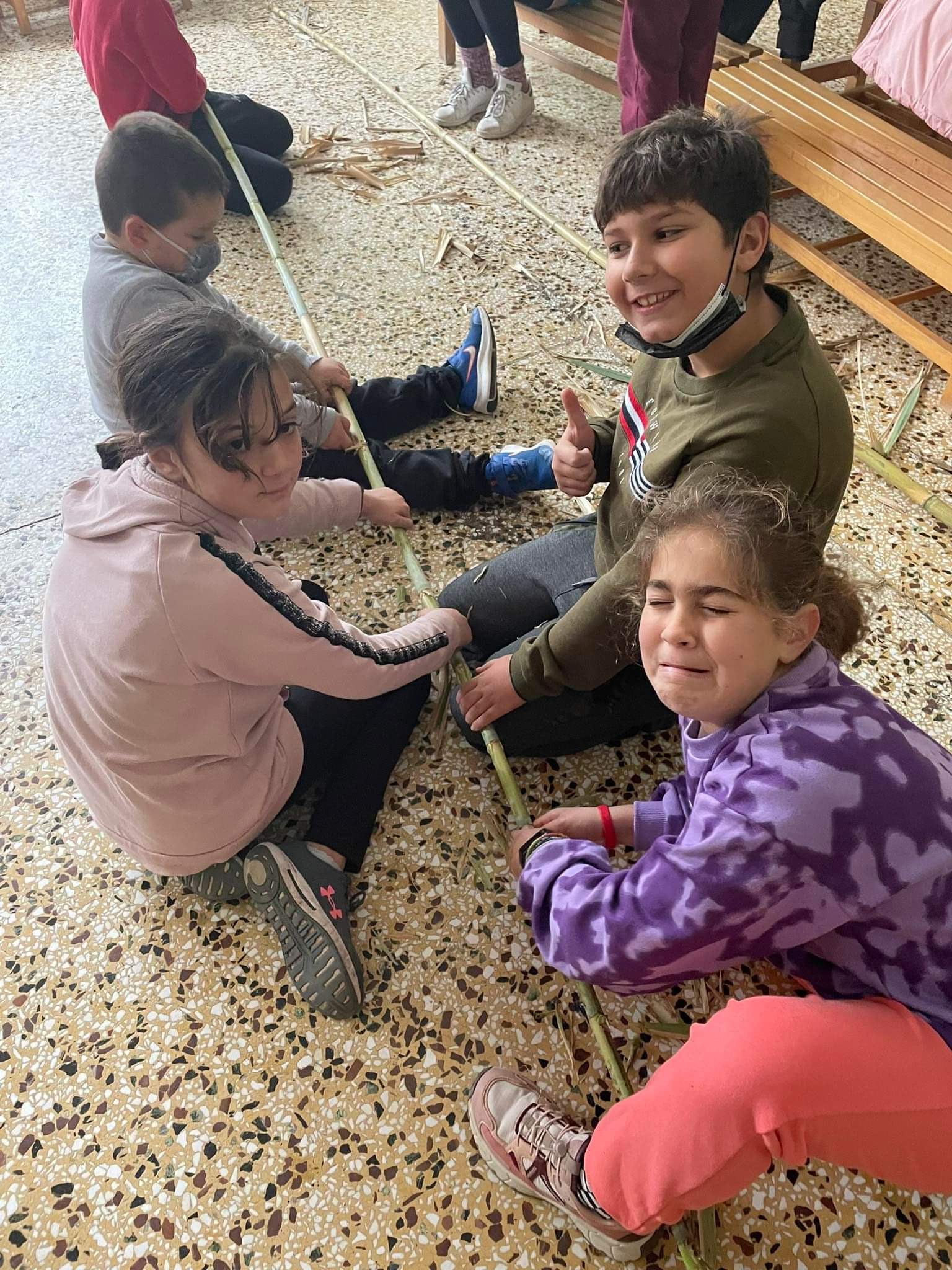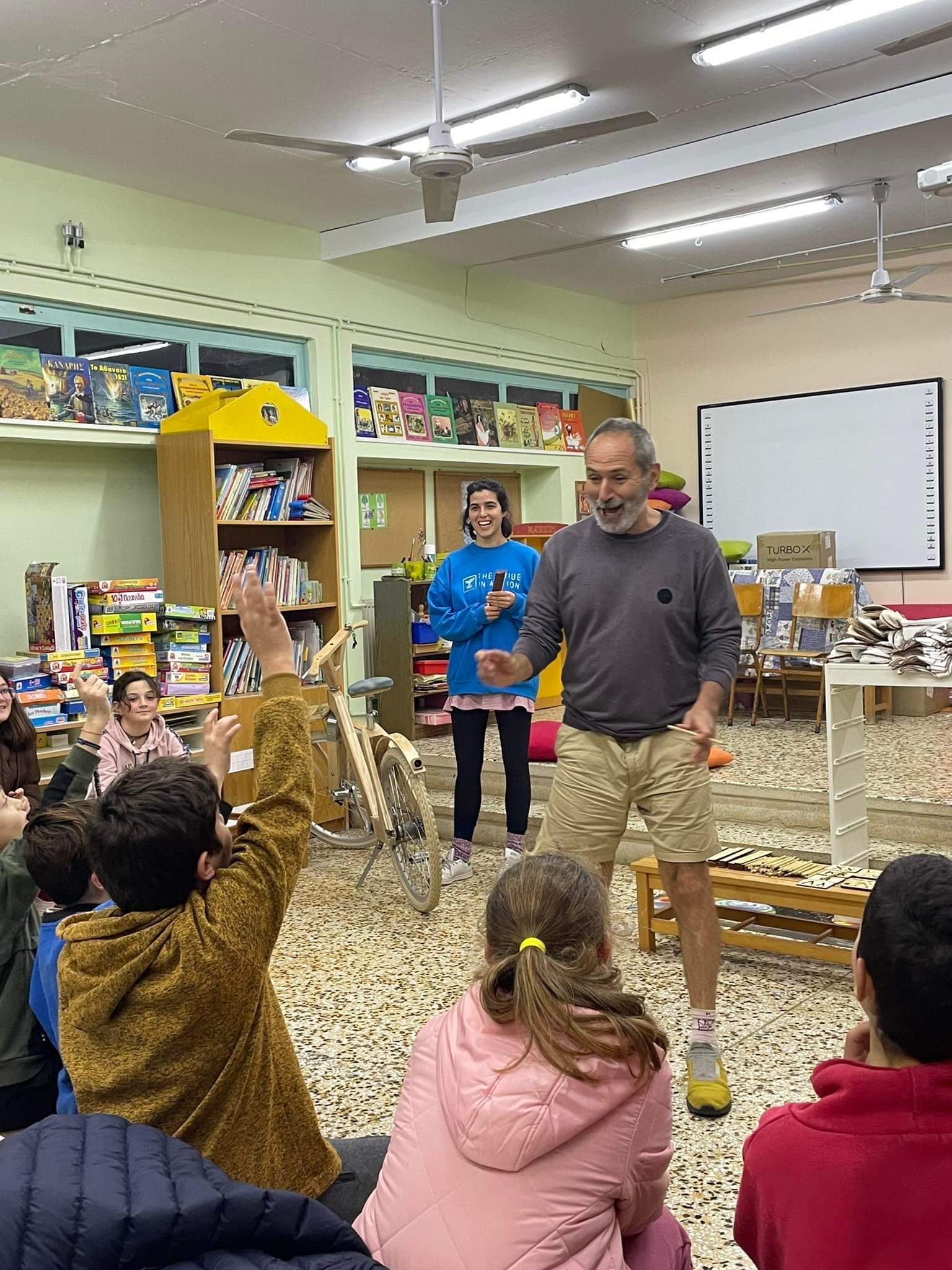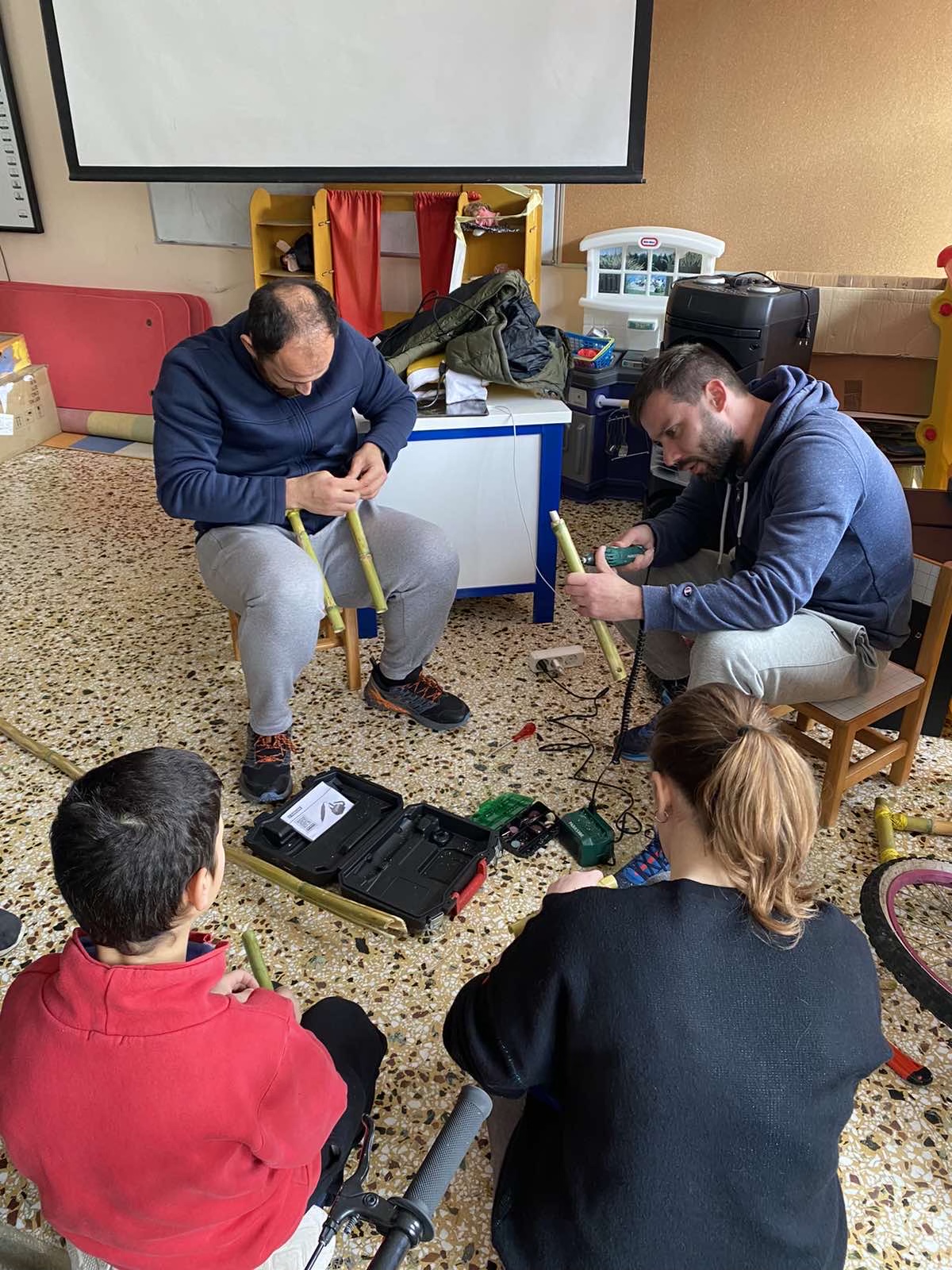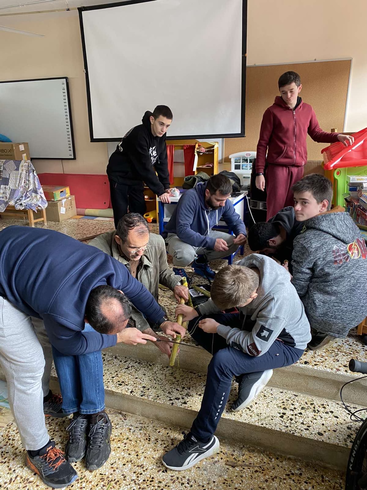 Στη συνέχεια, η θεωρία έγινε πράξη μέσα από την κατασκευή μουσικών οργάνων, παιχνιδιών και χρηστικών αντικειμένων, όπως ποτήρια και κουτάλια, από καλάμια και αλλά ντόπια υλικά, την ανακατασκευή ενός ποδηλάτου από τα σκουπίδια και τη φύτευση 30 ελαιοδένδρων!