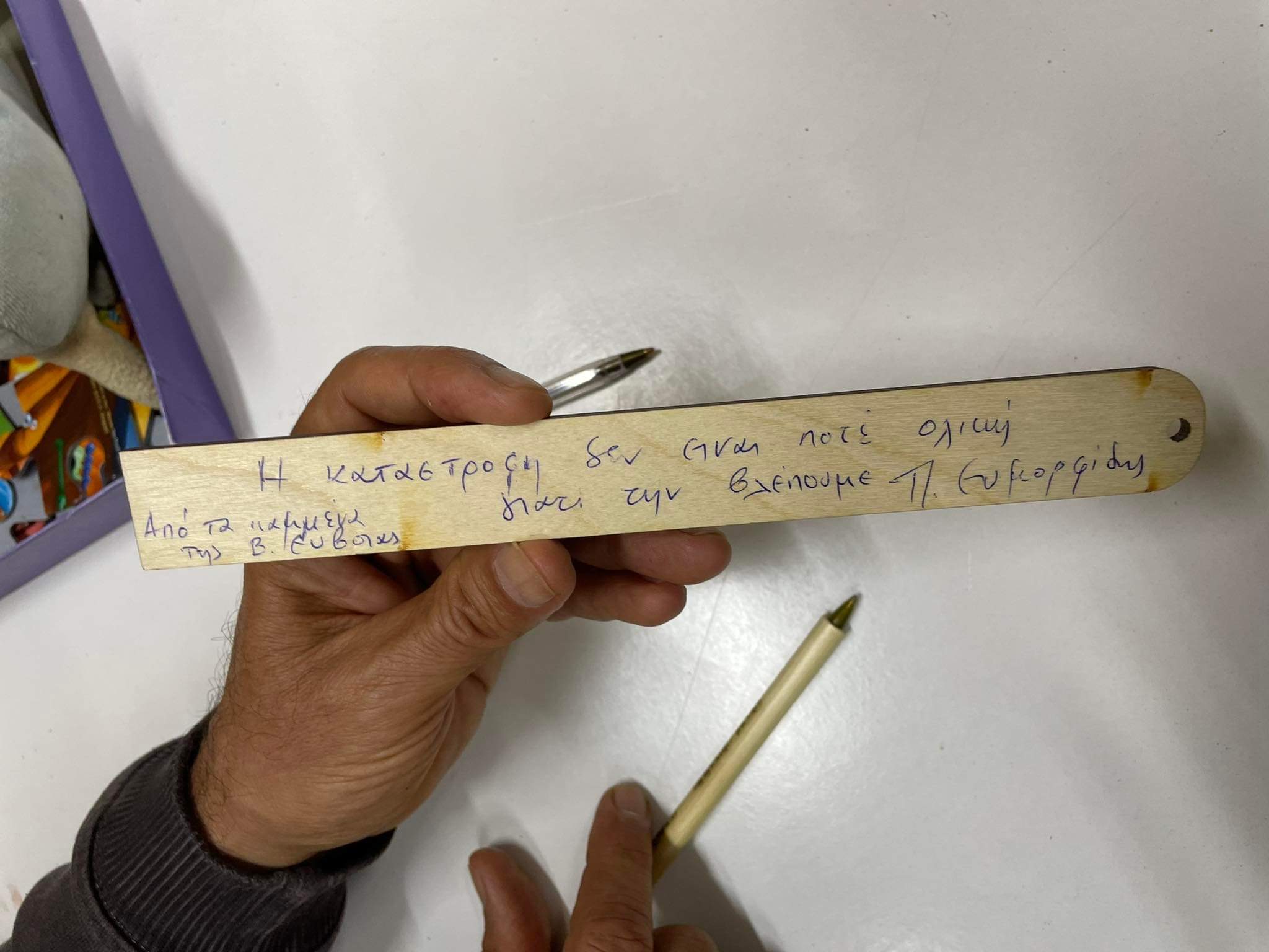 Προσφέρθηκαν υπέροχα οικολογικά δώρα στη σχολική κοινότητα, ανάμεσα στα οποία και σχολικά είδη φτιαγμένα από τα καμμένα της Εύβοιας, και ένα ξύλινο ποδήλατο στο Δήμο Αγίου Ευστρατίου!