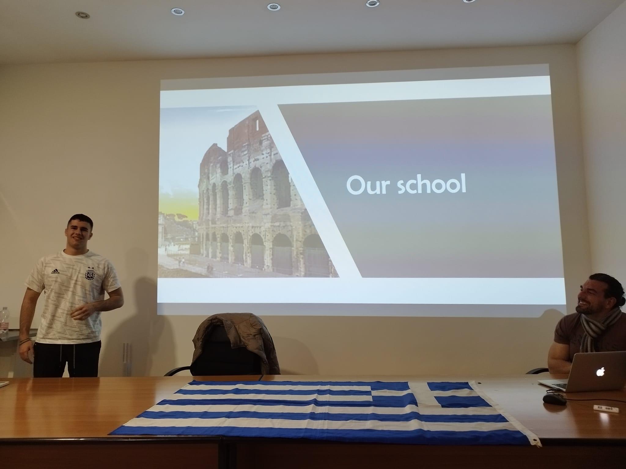 Οι 14 μαθητές των τομέων Πληροφορικής και Υγείας καθώς και οι συνοδοί καθηγητές που συμμετέχουν στο πρόγραμμα, την πρώτη μέρα της επίσκεψής τους στη Ρώμη, ξεναγήθηκαν στο ιστορικό κέντρο της πόλης, σε εμβληματικά πολιτιστικά μνημεία της, όπως το Πάνθεον, πλατείες όπως την Piazza di Spagna, την Fontana di Trevi, την εκκλησία Santa Maria degli Angelo e dei Martiri, βουλευτικά και κυβερνητικά κτήρια και πλούσιους εμπορικούς δρόμους της πόλης.