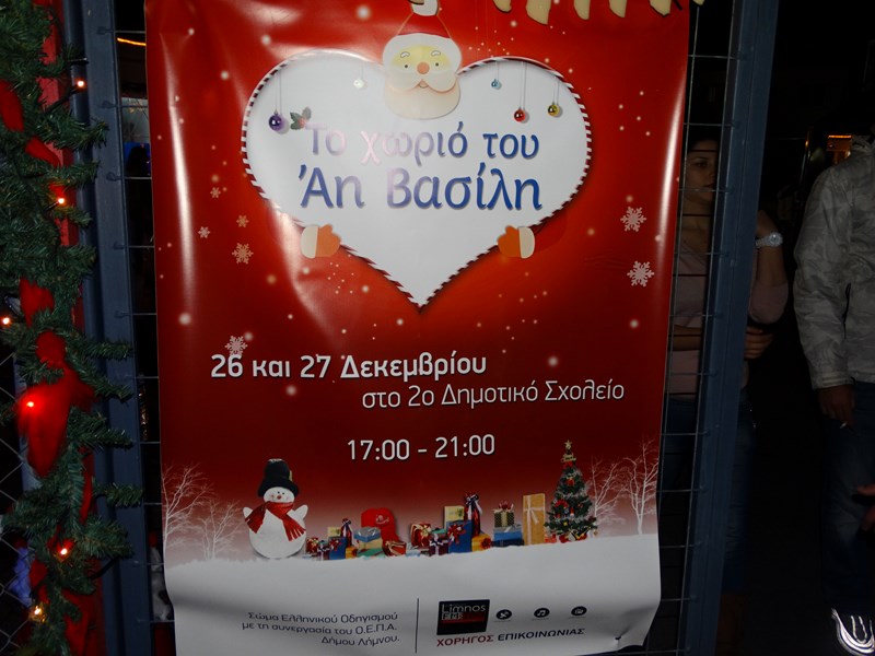 Τα εργαστήρια του Άη Βασίλη, έσφιζαν από ζωή και παιδική αδηφάγα έξαρση, τα παιχνίδια του προσκοπισμού και οδηγισμού στο προαύλιο του χωριού, γνώρισαν μεγάλη επιτυχία, η χορωδία του Δήμου Λήμνου, παιάνισε χριστουγεννιάτικους ήχους, και ο Άη Βασίλης ευτυχισμένος που βρισκόταν ανάμεσα σε χαρούμενα πρόσωπα, απολάμβανε το θρόνο του και τον καφέ του, μετά το μεγάλο ταξίδι από το Βόρειο Πόλο.
