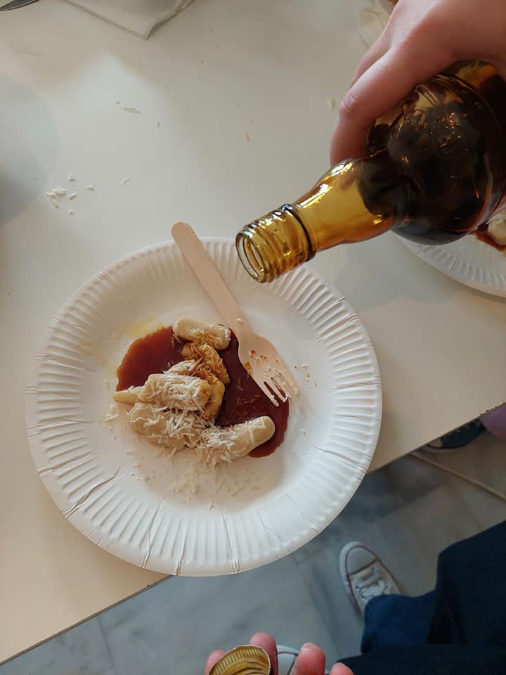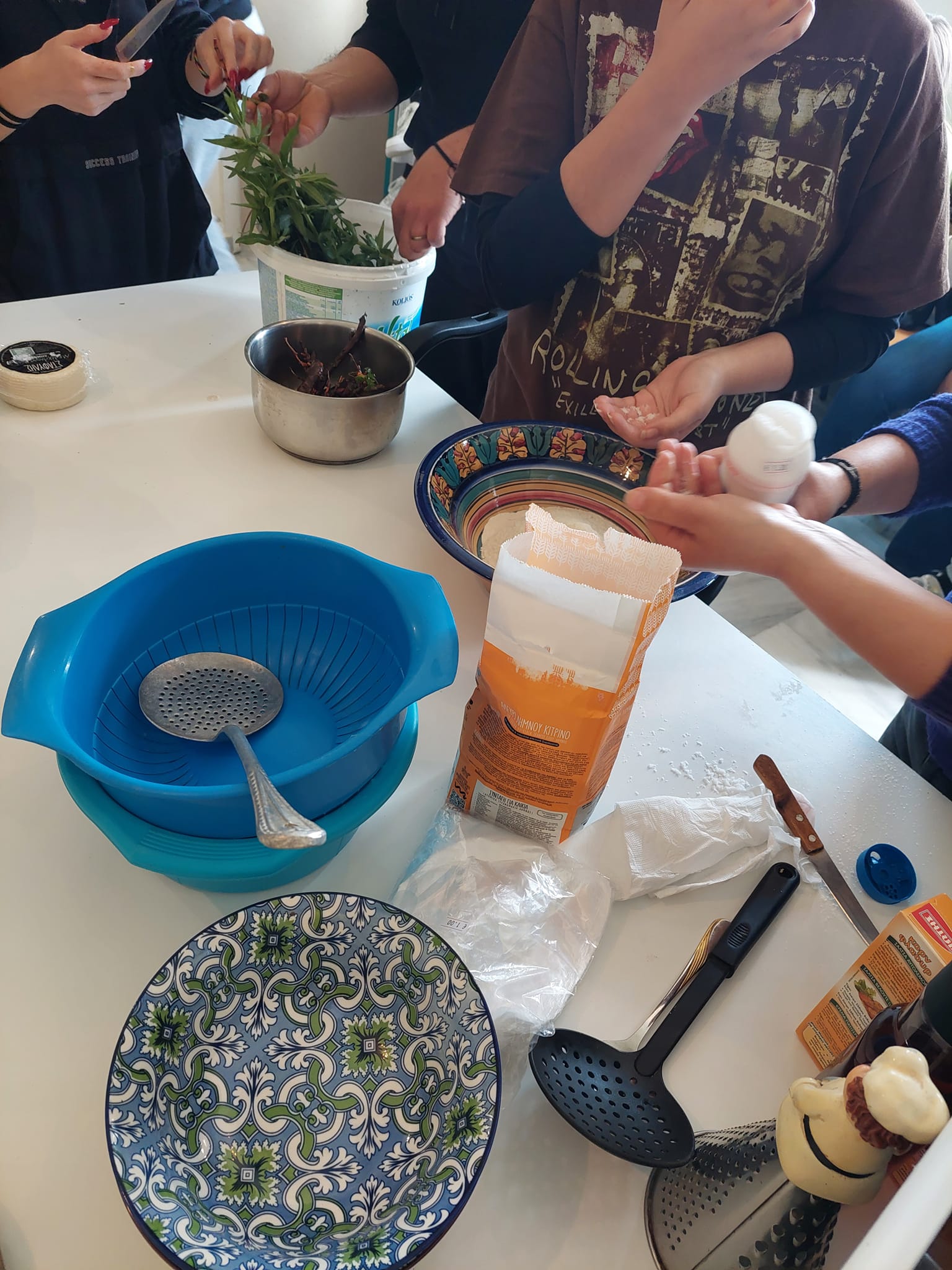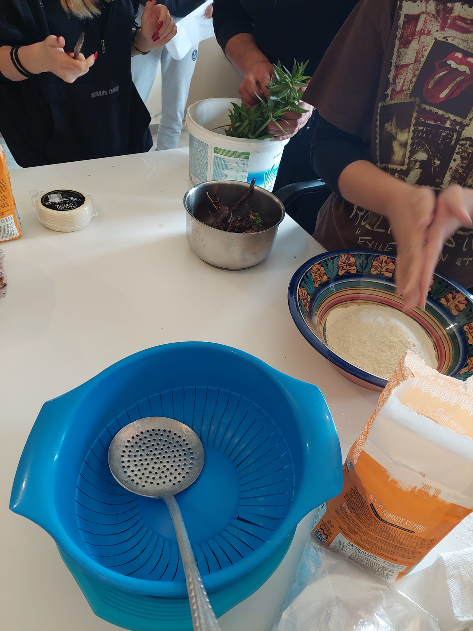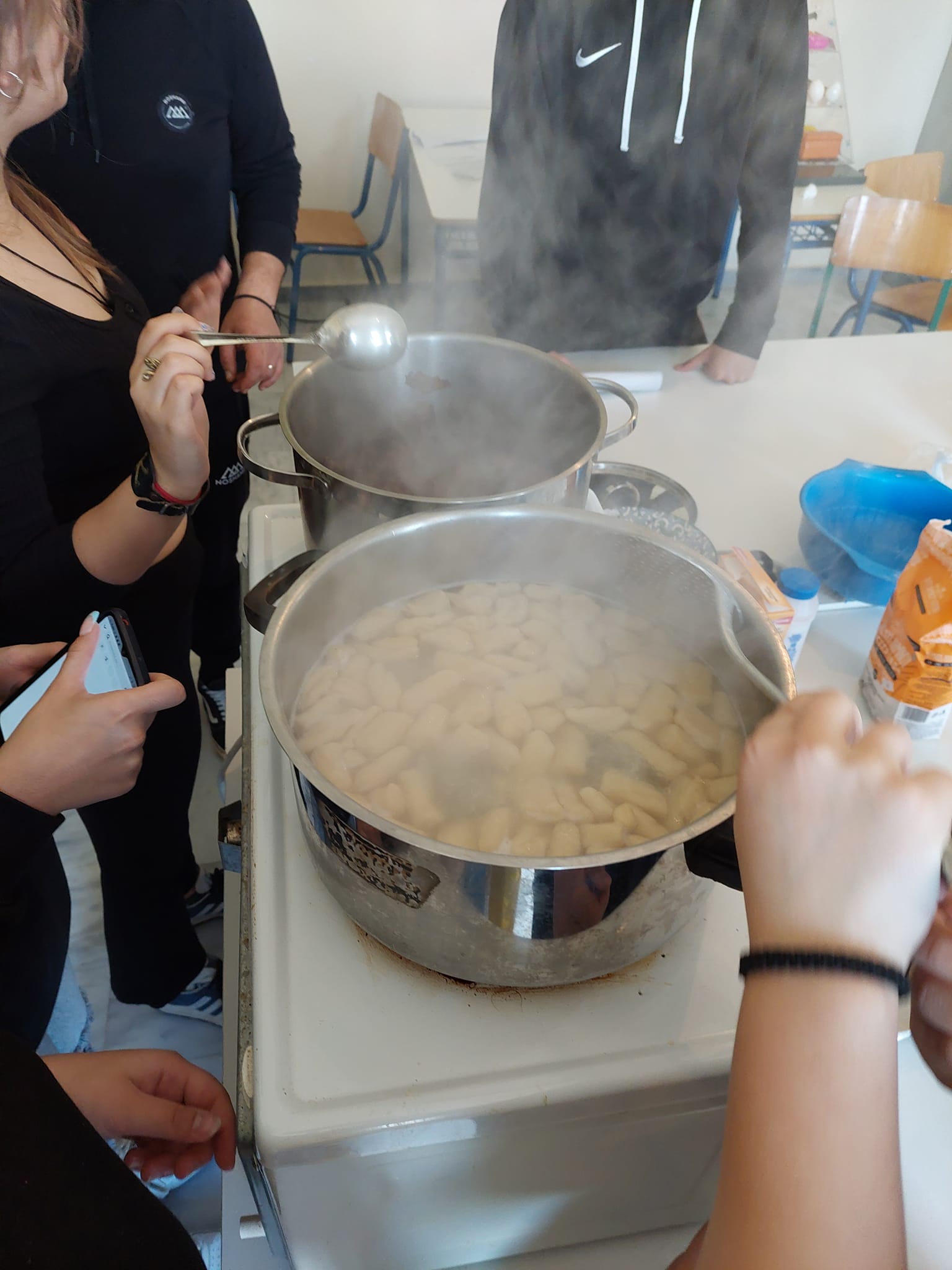 Συγκεκριμένα με βάση την ολιστική προσέγγιση και την εφαρμογή στοιχείων της άυλης πολιτιστικής κληρονομιάς στην καθημερινή ζωή, μαθητές και μαθήτριες του προγράμματος, μαζί συμμαθητές και συμμαθήτριές τους, ζύμωσαν με αλεύρι Λήμνου αφτούδια-μακαρόνες και μουστοκούλικα και τα πρόσφεραν στη μαθητική κοινότητα συνοδευμένα με Μελίχλωρο Λήμνου και πετιμέζι! Επίσης, έγινε ιδιαίτερη αναφορά στα έθιμα του Πάσχα και ακολούθησε η βαφή αυγών με φυσικό τρόπο, αξιοποιώντας φύλλα κρεμμυδιών και ρίζες.
