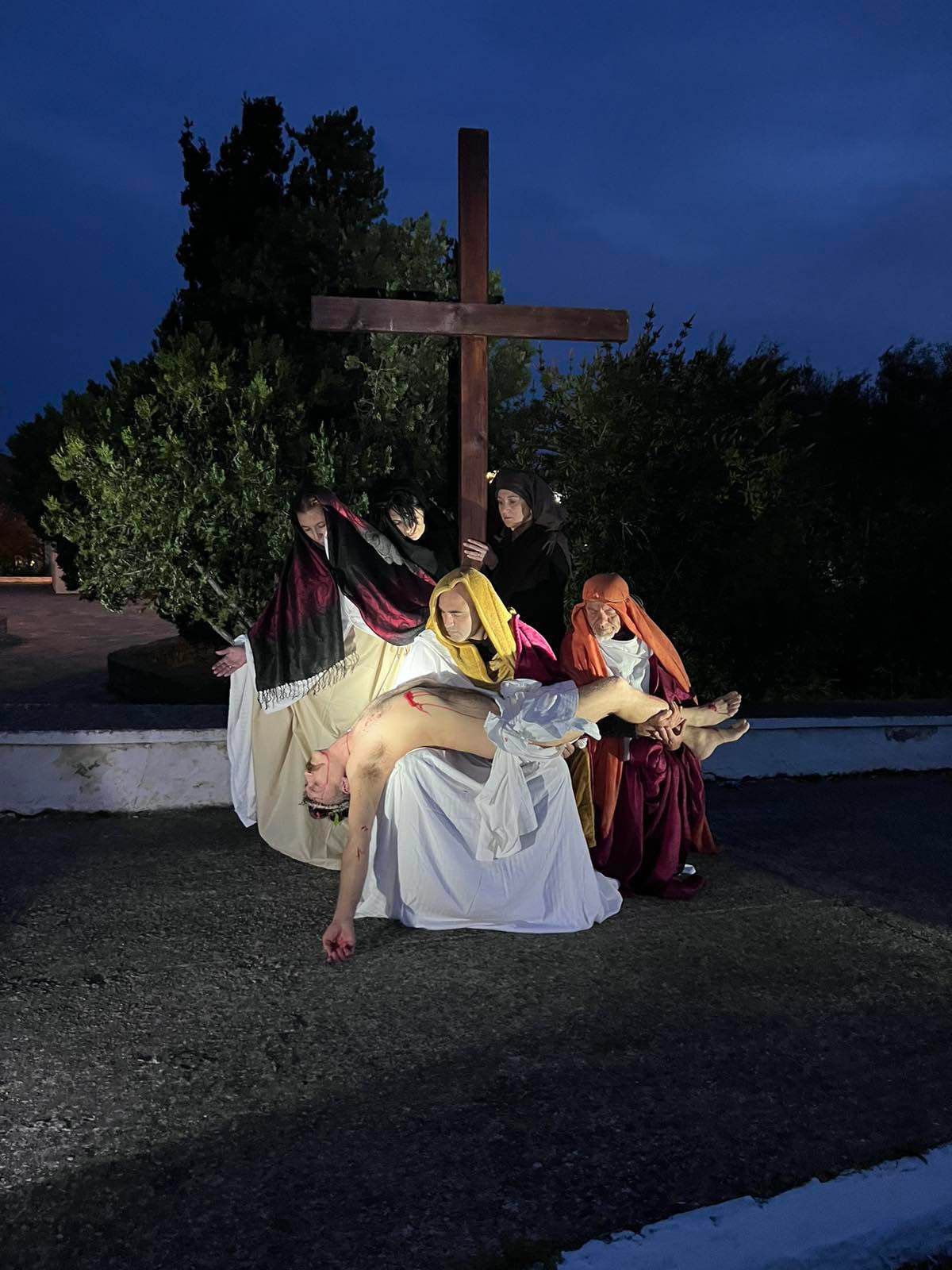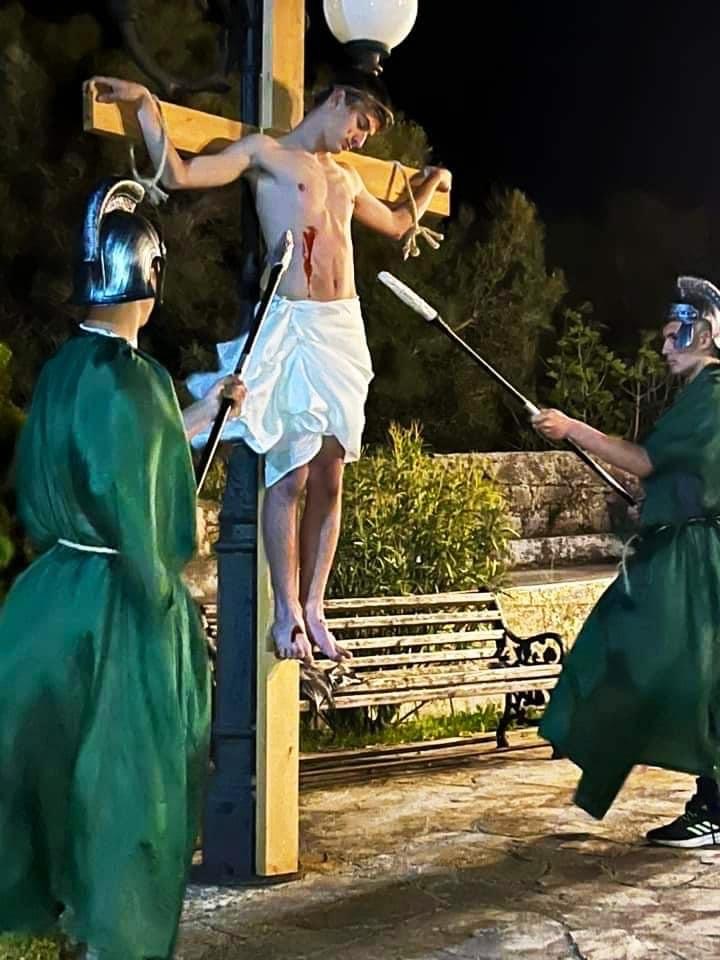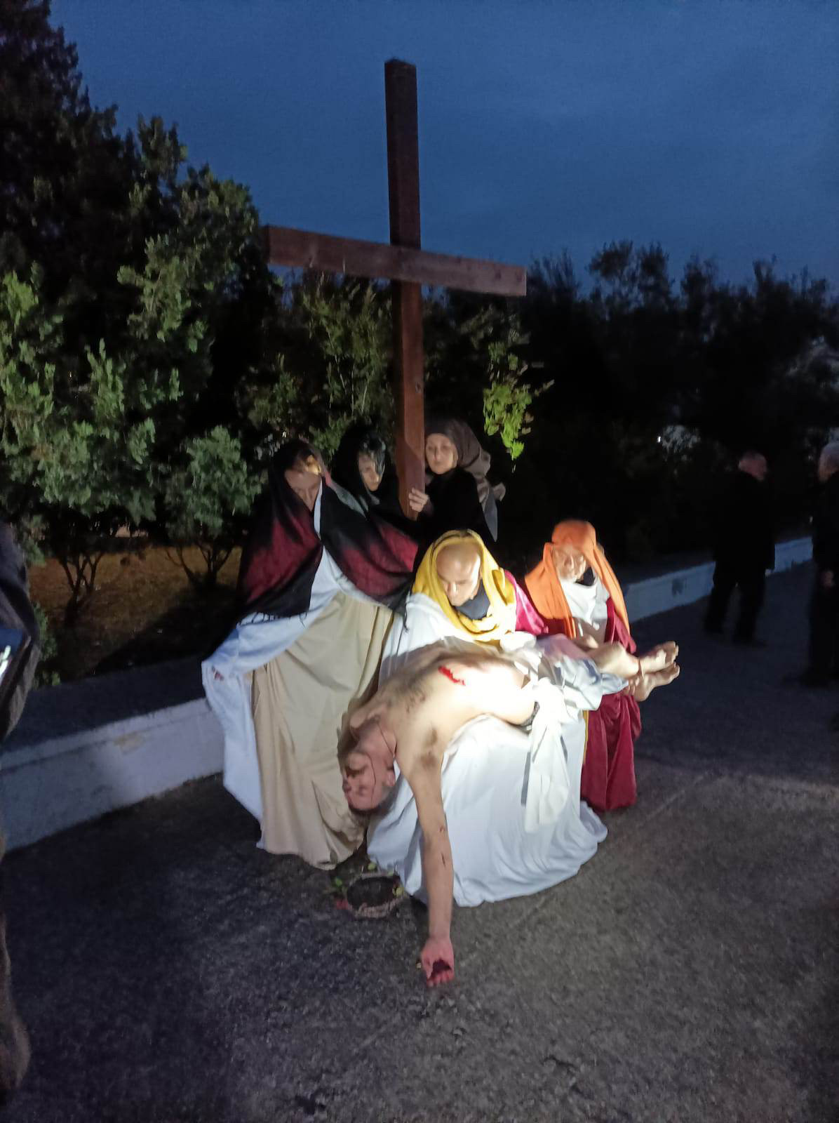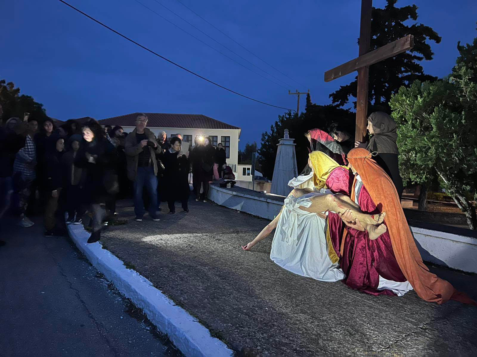 Η ευλαβική αναπαράσταση έλαβε χώρα χτες, Μεγάλη Παρασκευή, κατά την περιφορά του Επιταφίου στο Μούδρο της Λήμνου, από τον Πολιτιστικό Σύλλογο "Παύλος Κουντουριώτης".