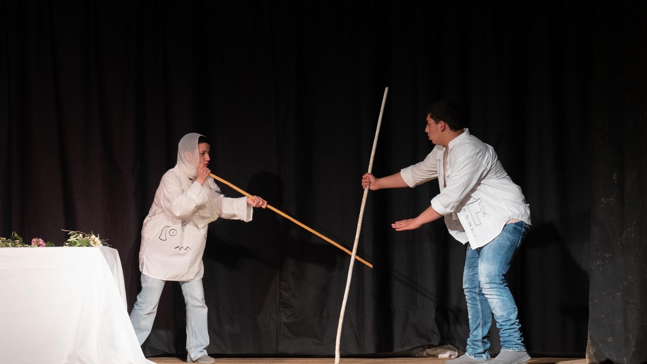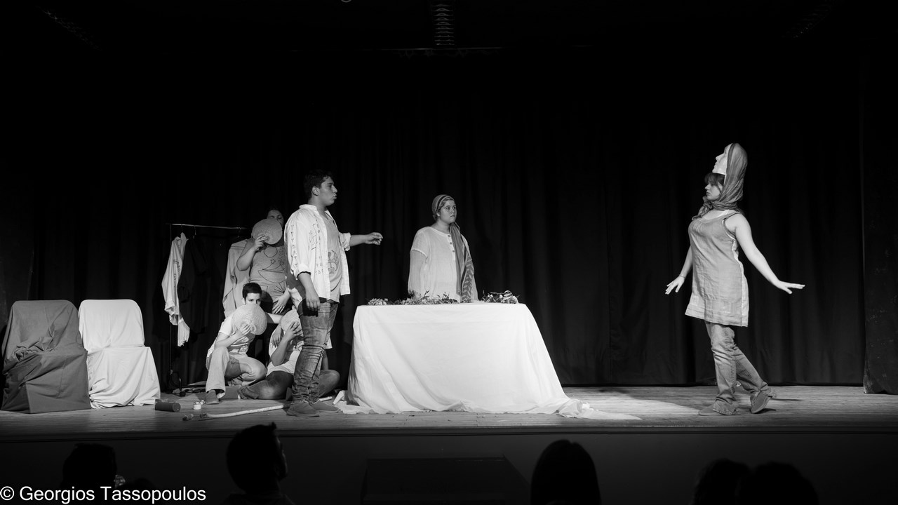 Τα μέλη της θεατρικής μας ομάδας: Χάρις Μεργιά, Αντώνης Μιχάκης, Ελένη Καλογίαννη (ΕΠΑΛ Μύρινας), Ελευθερία Λιγδαρά (ΓΕΛ Μούδρου), Γιοβάνα Μήλε, Ασπασία Χαβιά, Αδαμαντία Κονταρή.