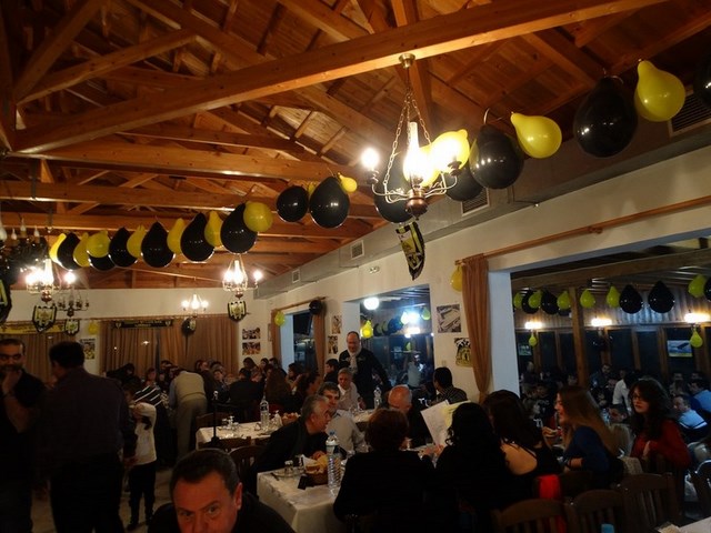 Υ/Γ: ´Αλλη μια ευχάριστη στιγμή της βραδιάς, ήταν όταν ο πρόεδρος της Ένωσης Φίλων ΑΕΚ Λήμνου, Απόστολος Παπάμαλης, έσβησε τα κεράκια της γενέθλιας, κιτρινόμαυρης - εννοείται - τούρτας του. Η γλυκύτατη σύζυγος του Ελένη, του ετοίμασε την έκπληξη και κείνος το καταδιασκέδασε.