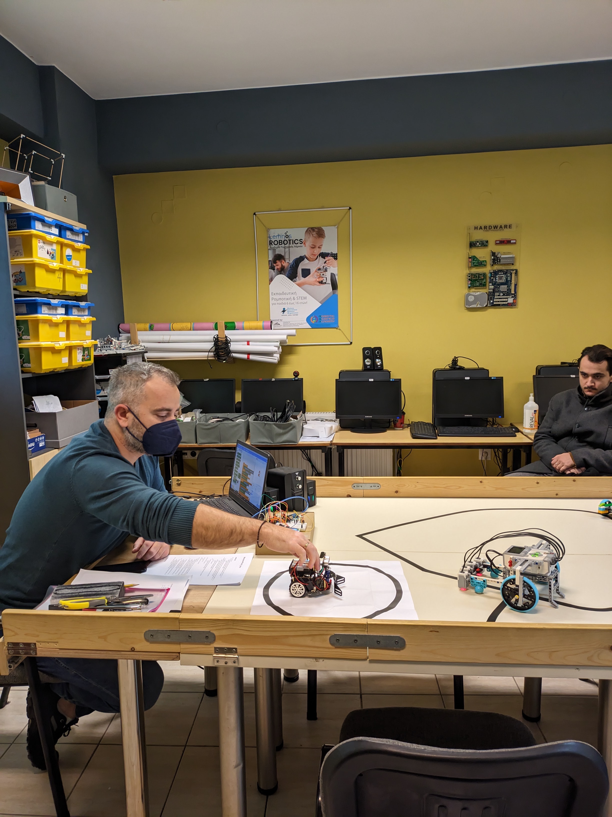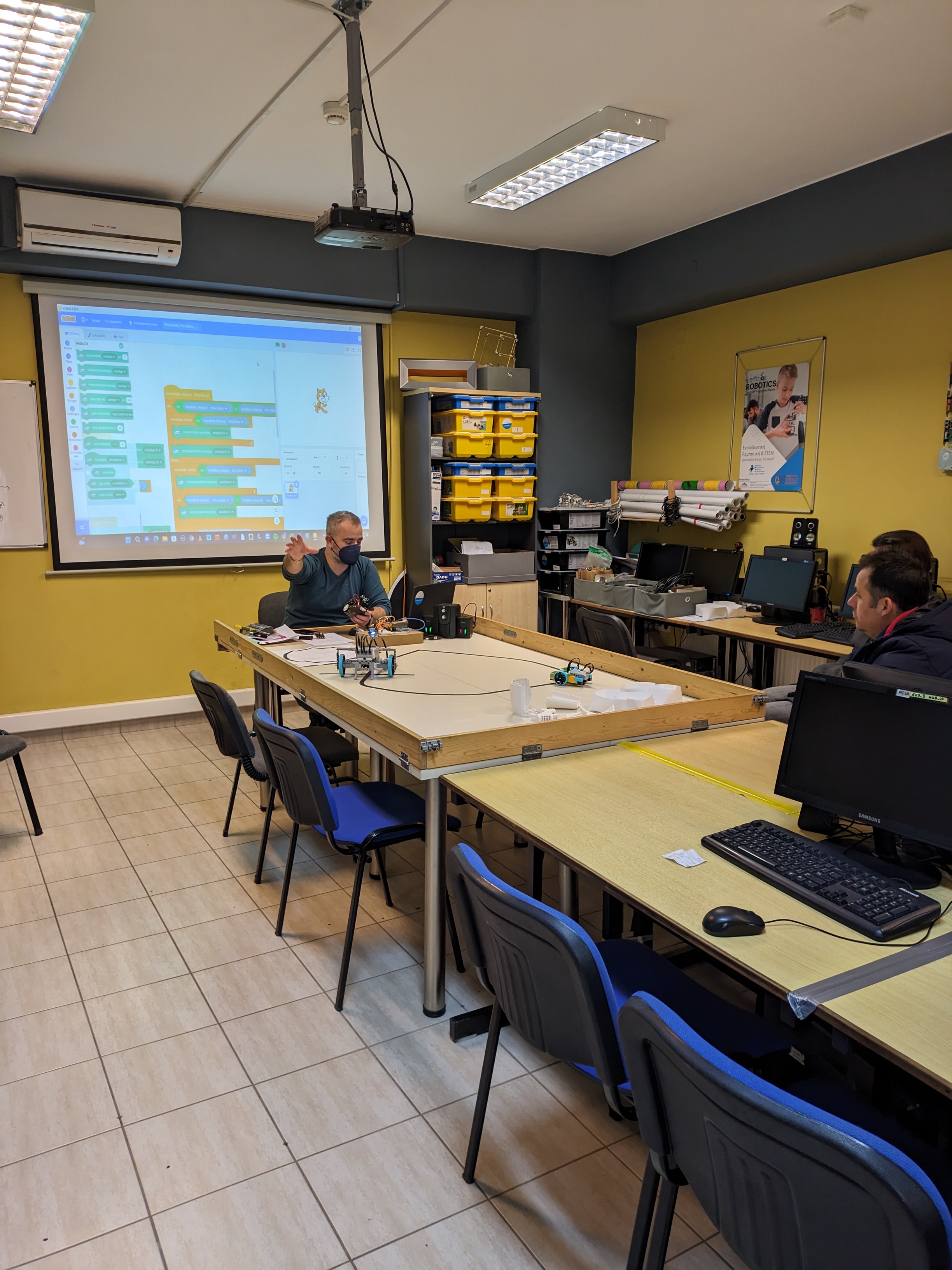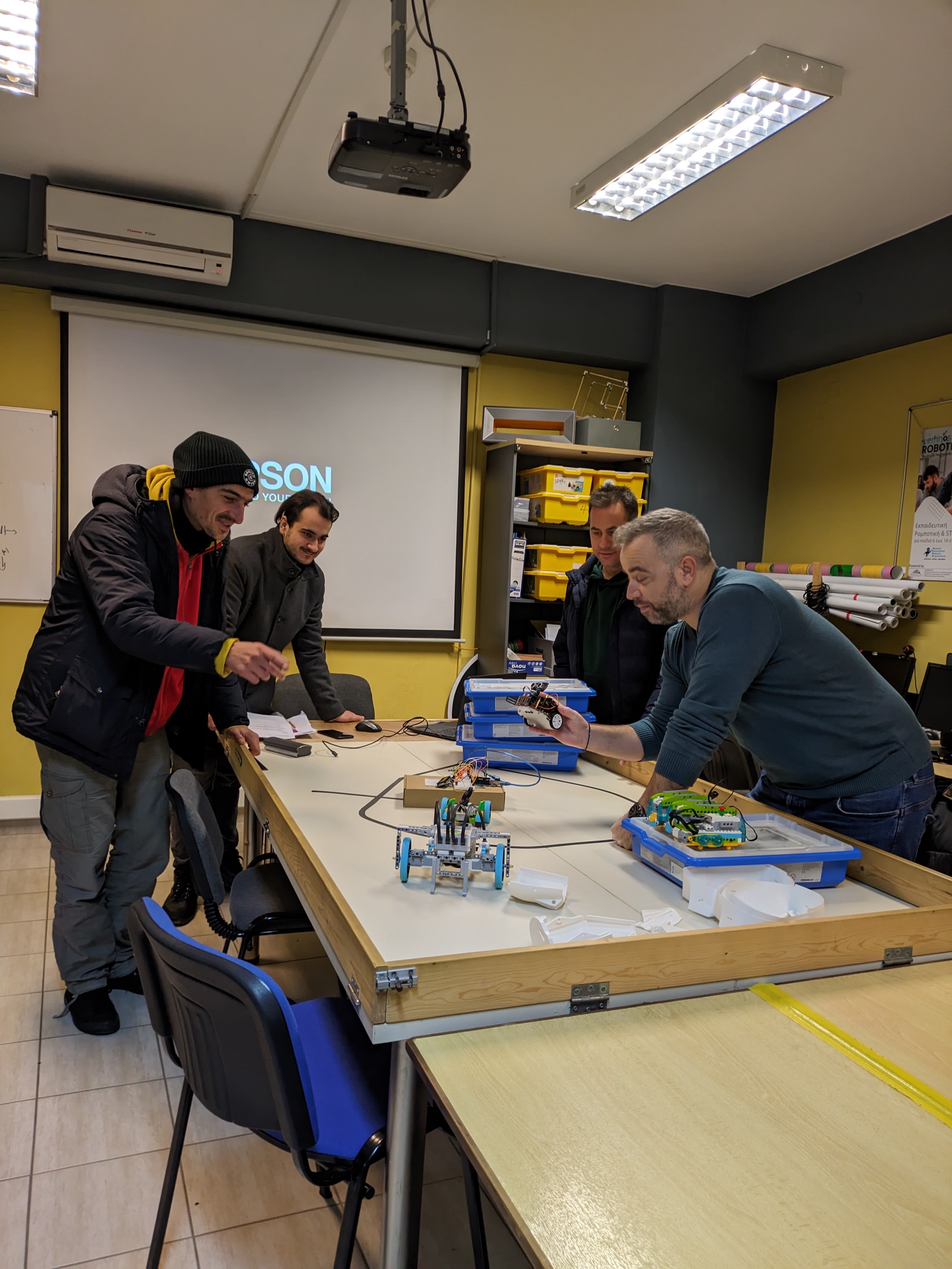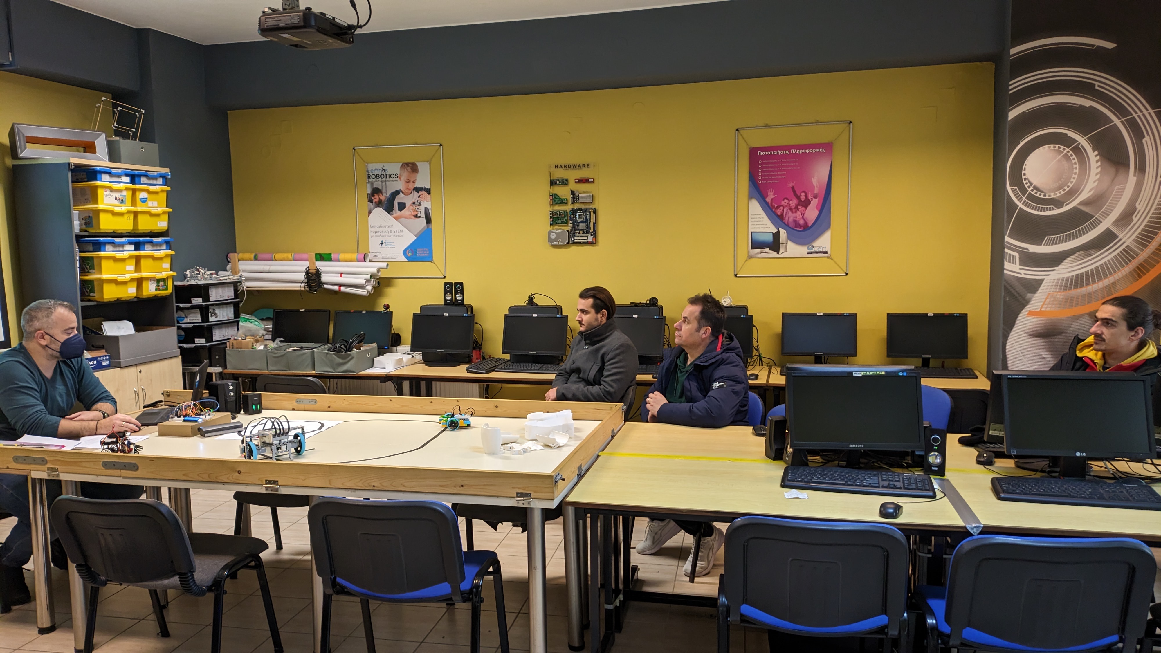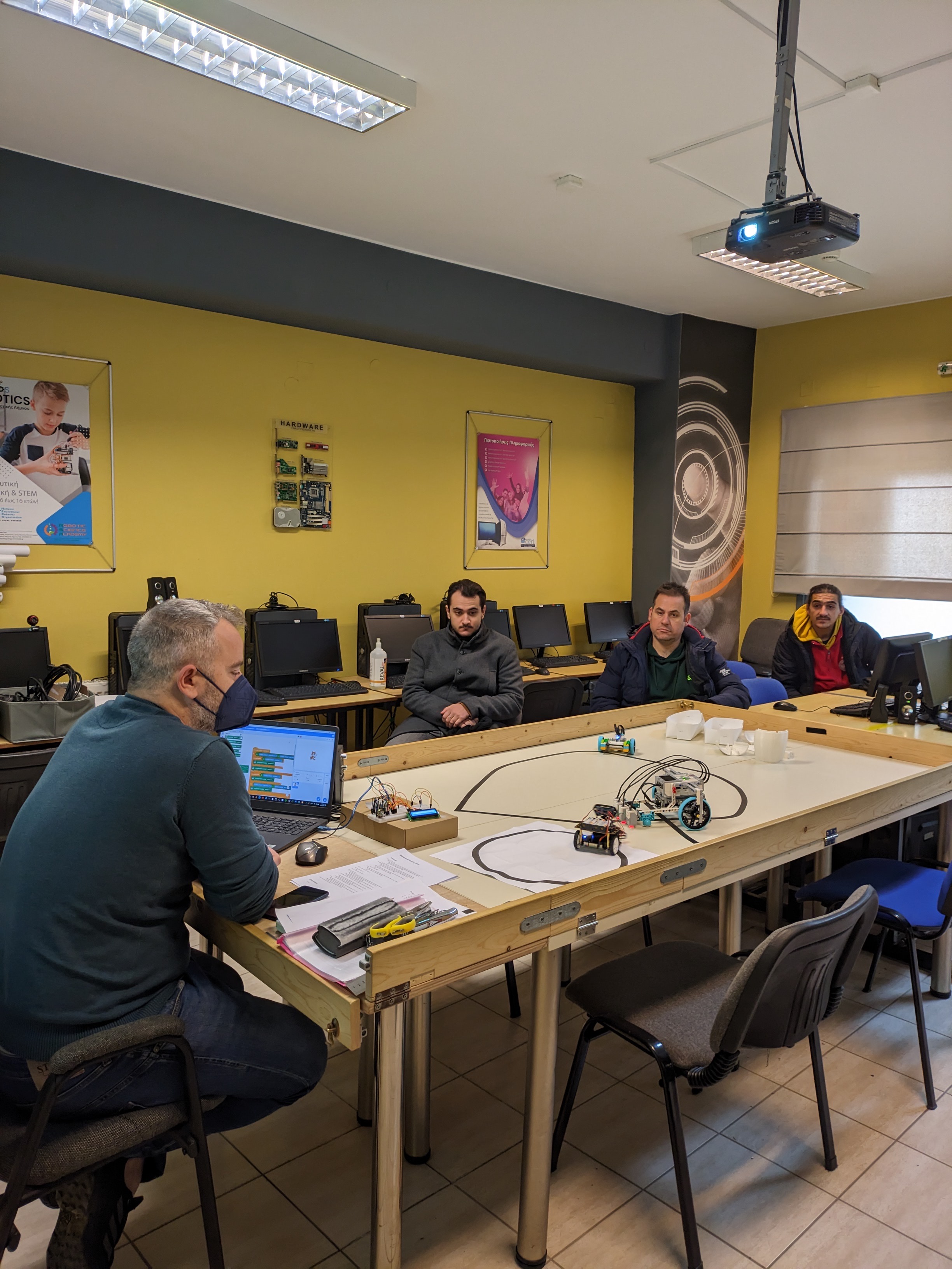 Στη συνέχεια του εισαγωγικού σεμιναρίου ακολούθησε η εφαρμογή, όπου οι σπουδαστές με τη συνδρομή του κ. Μακρή συναρμολόγησαν και προγραμμάτισαν ένα ρομπότ με βάση το πρόβλημα το οποίο τους τέθηκε να επιλύσουν. Οι καταρτιζόμενοι ενθουσιάστηκαν!