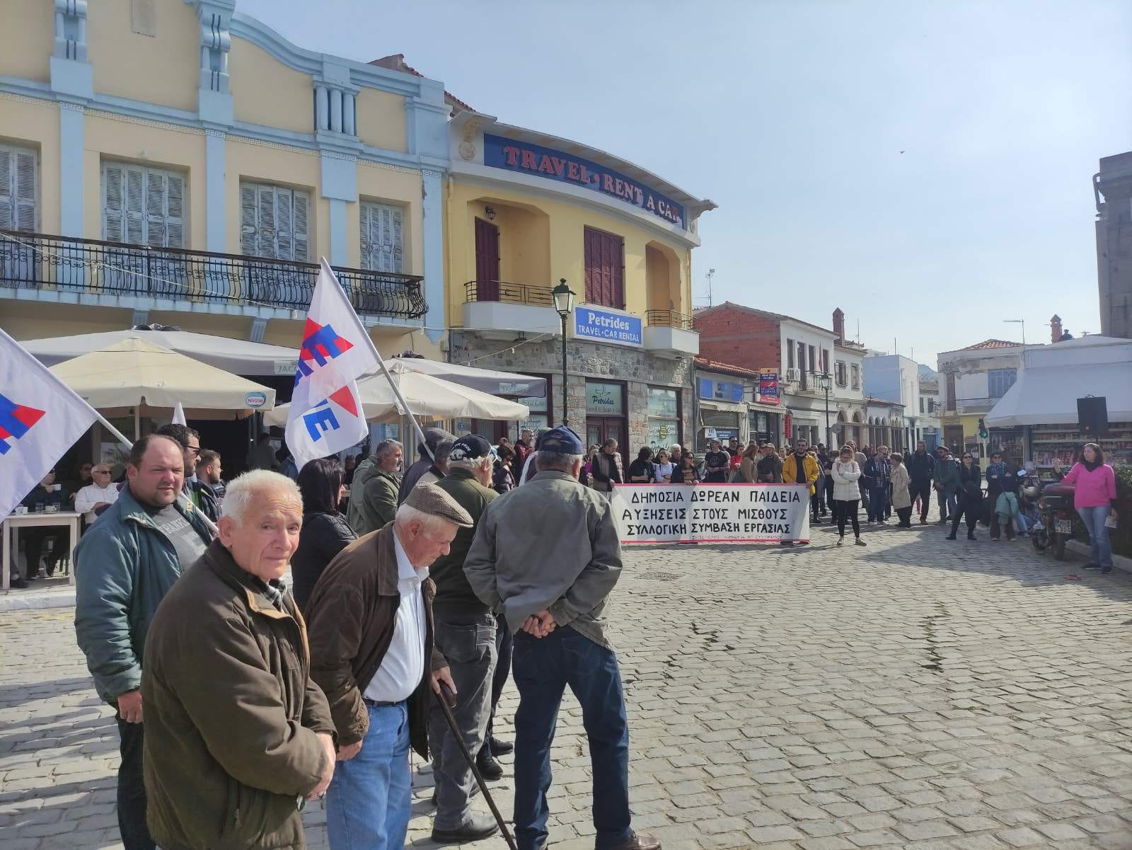 Χαιρετίζουμε τις συναδέλφισσες και συναδέλφους που συμμετείχαν στην απεργιακή συγκέντρωση στο λιμάνι της Μύρινας, σχηματίζοντας το μαζικότερο μπλοκ της συγκέντρωσης πίσω από το πανό των σωματείων των εκπαιδευτικών.
