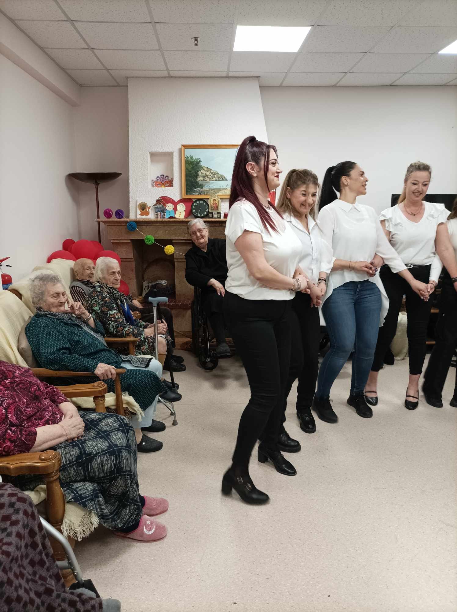 Το Σάββατο 2 Μαρτίου 2024 μετά από πρόσκληση της κας Νικολέτας Μουρατίδου ψυχολόγου του Γηροκομείου Λήμνου και κατόπιν επιθυμίας των συμπαθέστατων τροφίμων του ιδρύματος, ομάδα μελών του ΧΟΛ «Ο Ήφαιστος» βρέθηκε για ακόμη μια φορά δίπλα τους, προσφέροντας τους ψυχαγωγία μέσα από παραδοσιακά τραγούδια και χορούς.