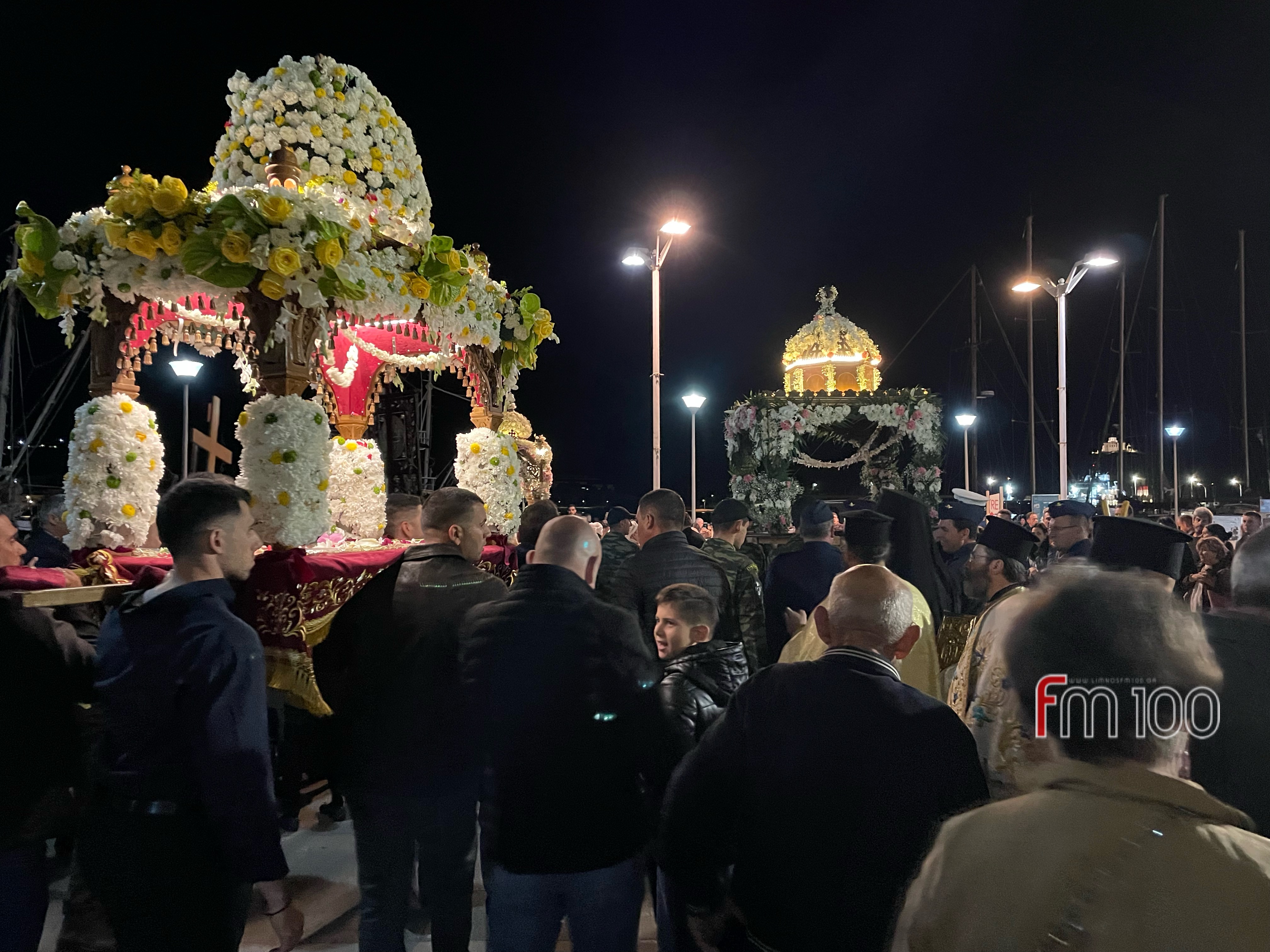 Το ιδιαίτερο αυτό αντάμωμα και φέτος δεν άφησε κανέναν ασυγκίνητο. Έτσι, λίγο μετά τις 9:30 το βράδυ, συναντήθηκαν στην αρχή του λιμανιού, οι πομπές των Επιτάφιων του Μητροπολιτικού Ιερού Ναού της Αγίας Τριάδας, του Ιερού ναού της Κοιμήσεως της Θεοτόκου του Τσας, καθώς και του Επιτάφιου του Στρατού, με επικεφαλής τον Μητροπολίτη Λήμνου & Αγίου Ευστρατίου Ιερόθεο.