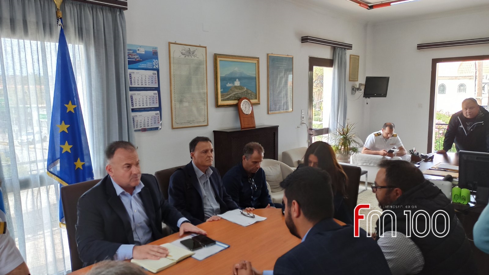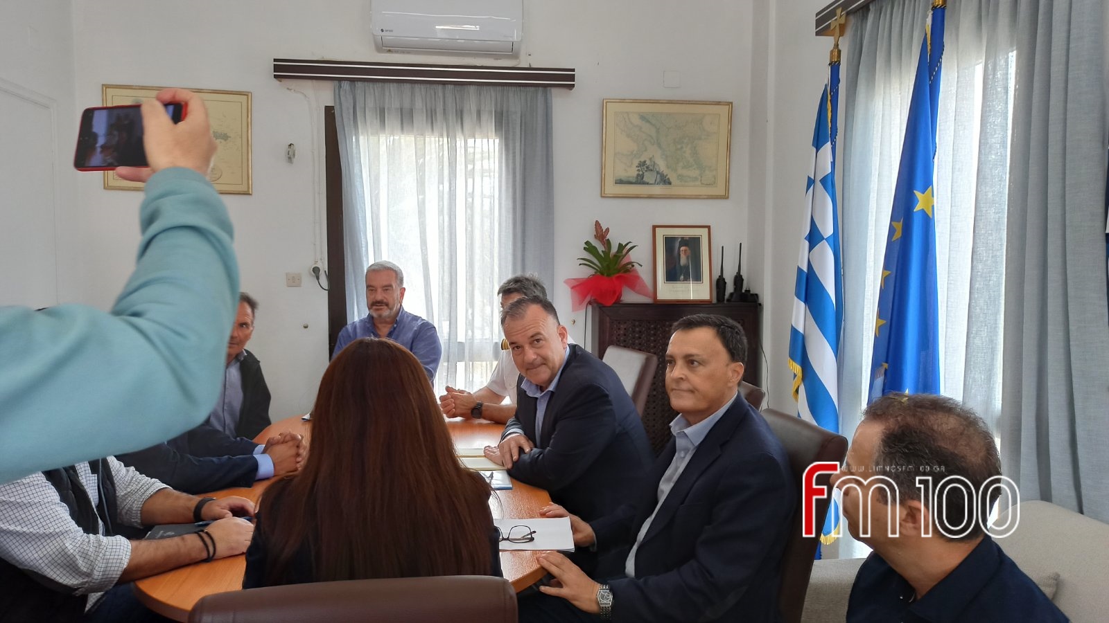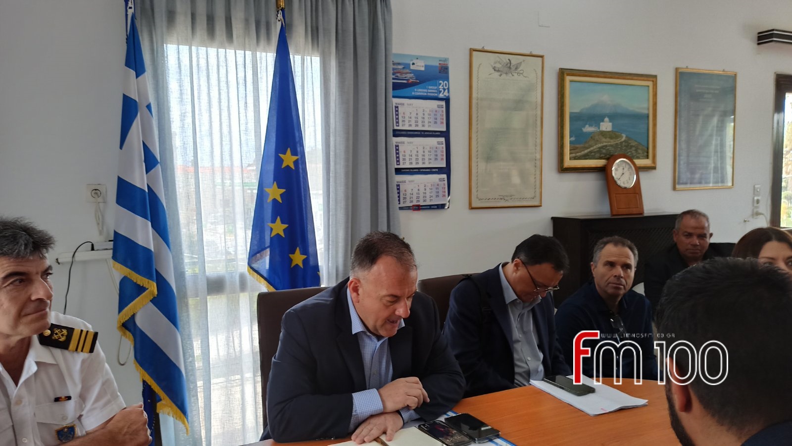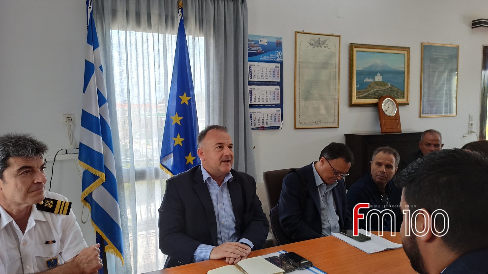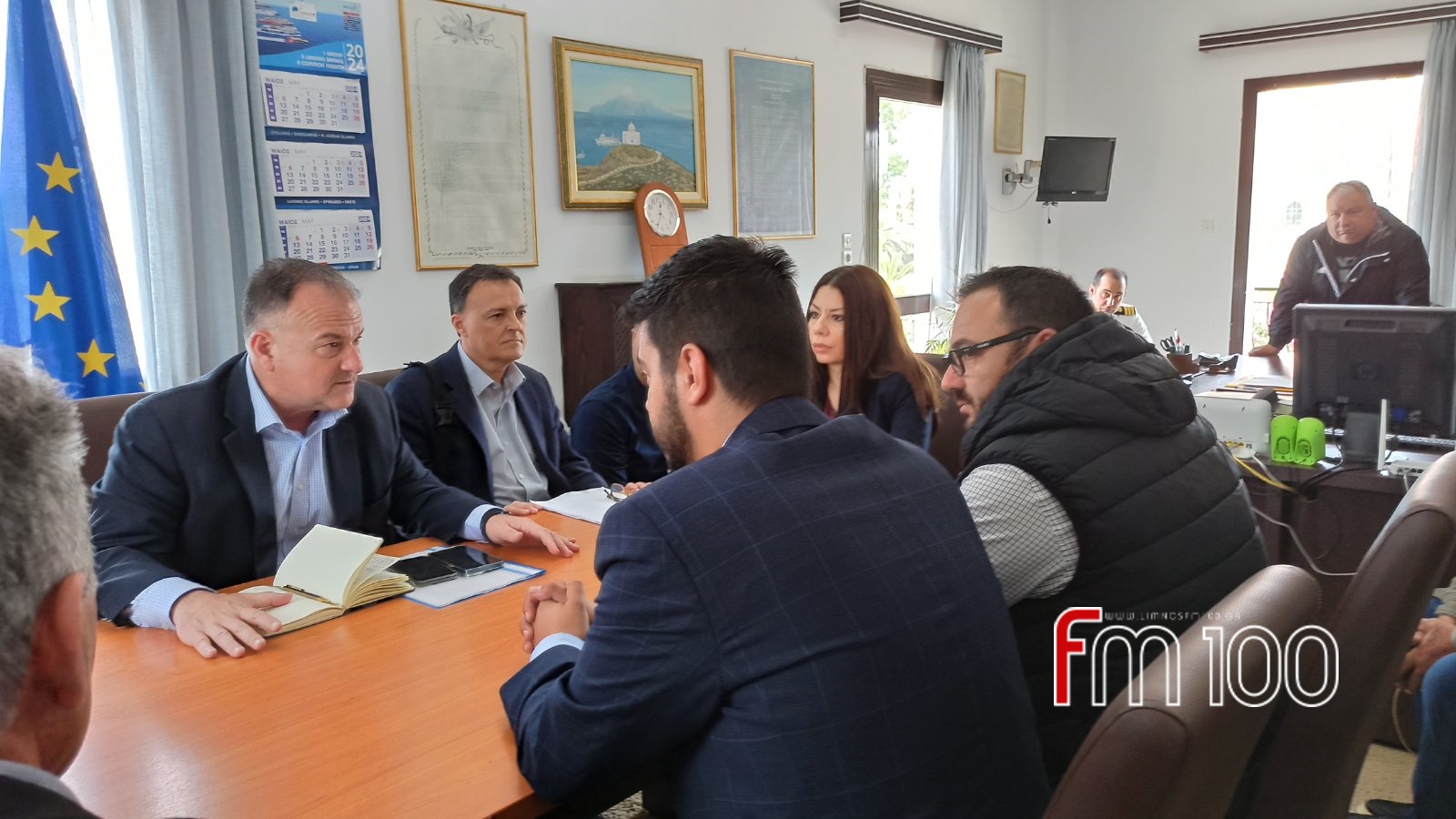 Οι δυο άνδρες έφτασαν στη Λήμνο λίγο πριν τις 12 το μεσημέρι και κατευθυνθήκαν αμέσως στο Επαρχείο όπου και συνομίλησαν με τον Έπαρχο Λήμνου κ. Απόστολο Κουτσογιάννη ο οποίος έθεσε ορισμένα από τα προβλήματα που αντιμετωπίζει το νησί στο κομμάτι της ακτοπλοΐας.