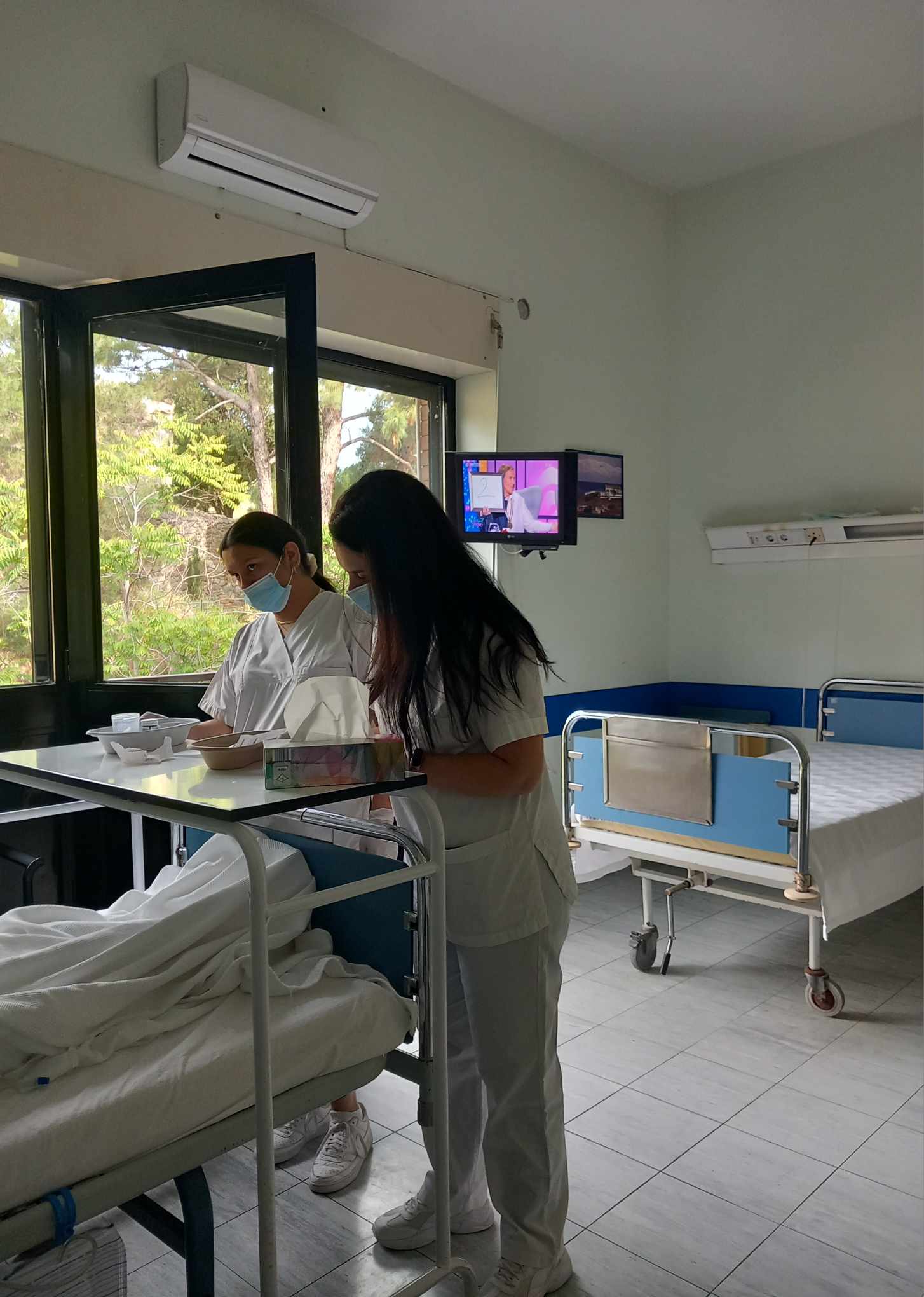 Στο φυσικό τους εργασιακό περιβάλλον, στο Νοσοκομείο Λήμνου, σε πραγματικές συνθήκες και σε πραγματικούς ασθενείς παρέχουν Νοσηλεία, χορηγούν φάρμακα, εκτελούν ενέργειες, όπως λήψη ζωτικών σημείων, μέτρηση οξυγόνου και σακχάρου κλπ