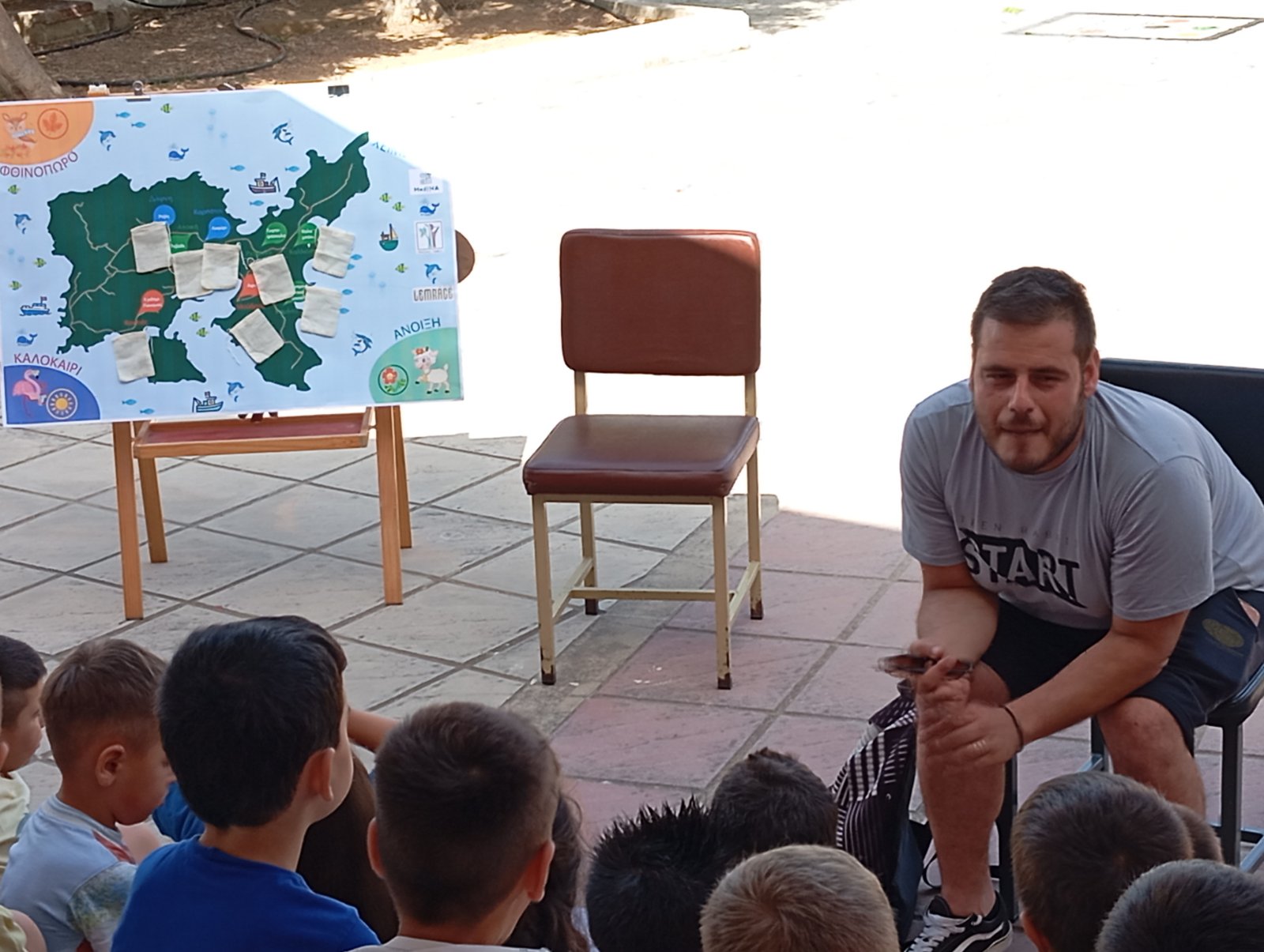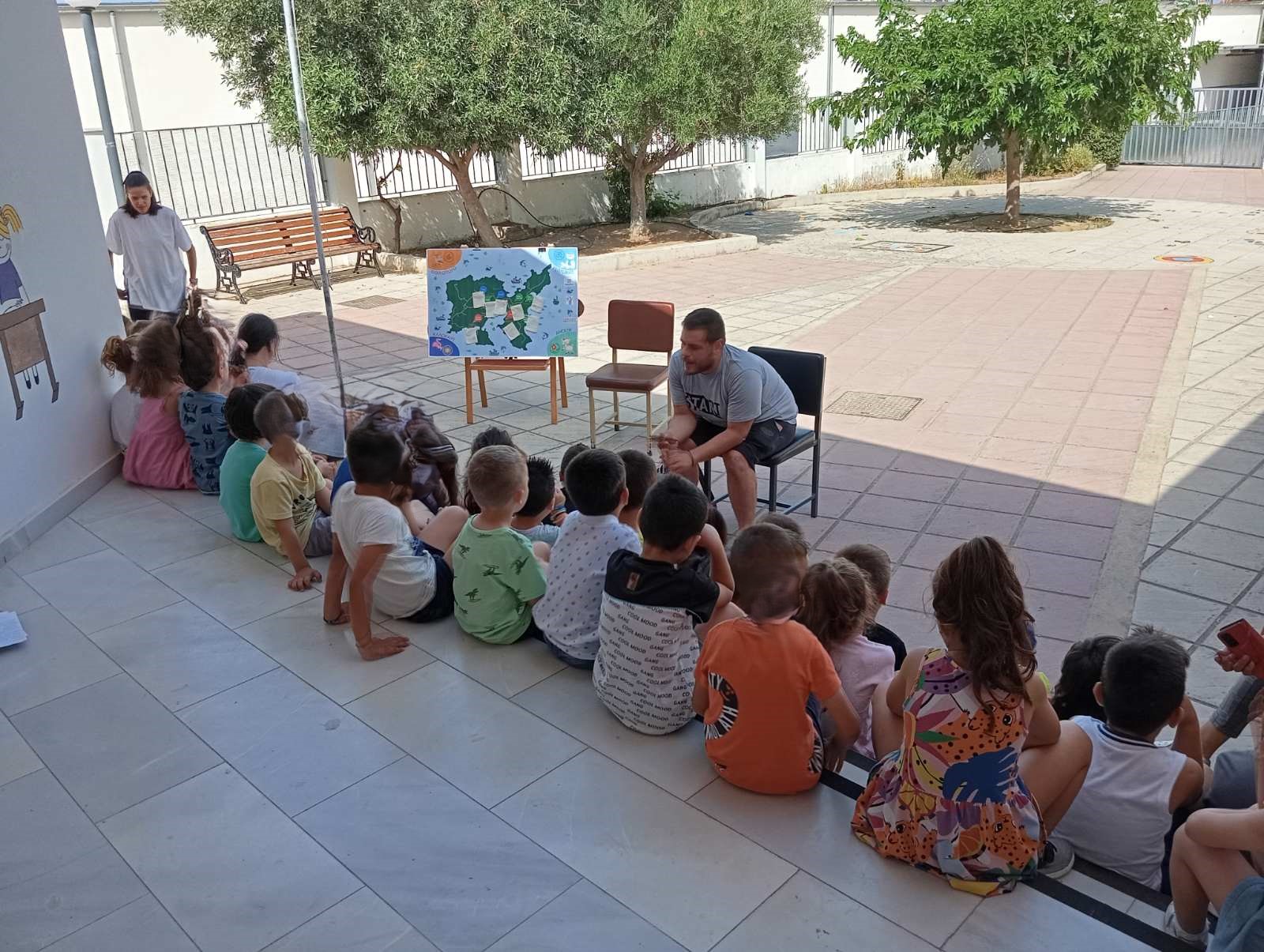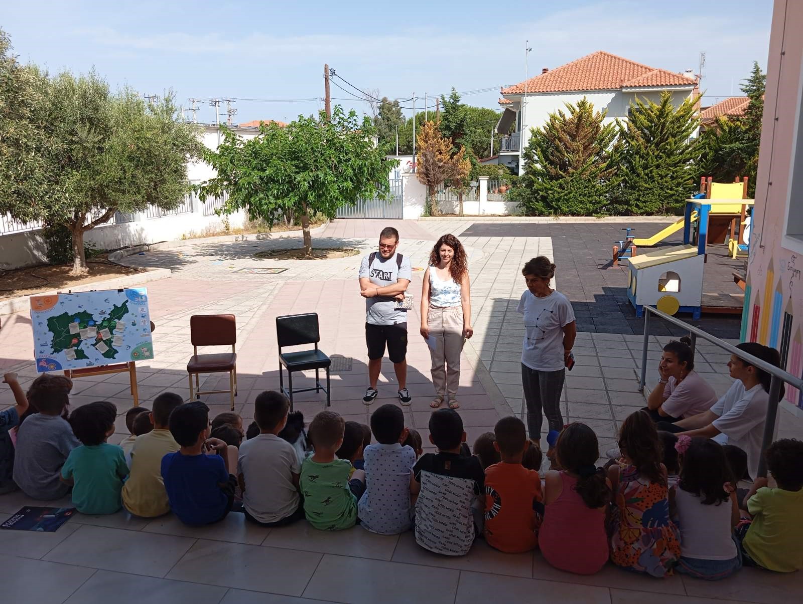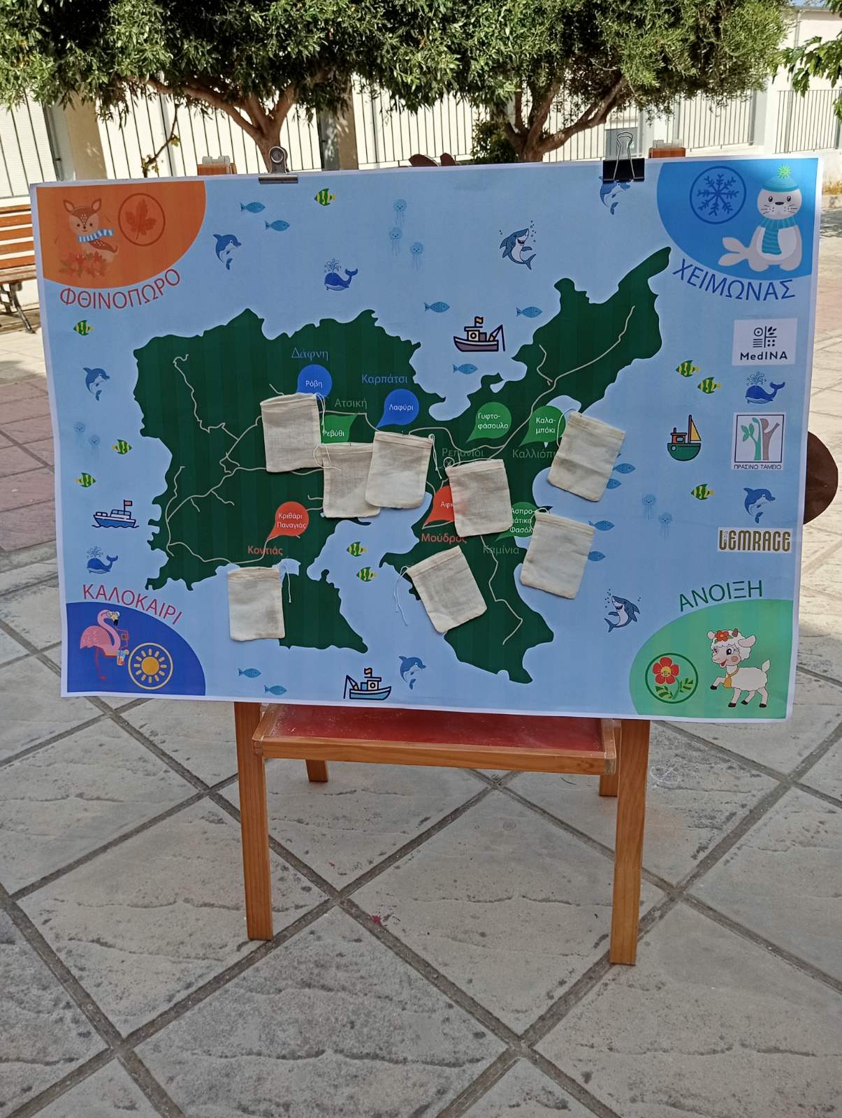 "Η δράση πραγματοποιήθηκε στο χώρο του Νηπιαγωγείου μας από τη γεωπόνο του MedINA, κυρία Σφακιανού Δανάη. Τα παιδιά έπαιξαν το παιχνίδι του «αγροτικού κύκλου των τοπικών ποικιλιών» κι έμαθαν ποια εποχή και σε ποια μέρη του νησιού σπέρνεται κάθε τοπική ποικιλία. Επίσης ο κύριος Ραφαήλ Γιαννέλης συνεργάτης του MedINA, έφερε τα νήπια σε επαφή με την Άυλη Πολιτιστική Κληρονομιά του νησιού και αφηγήθηκε σε αυτά ιστορίες και παραμύθια.