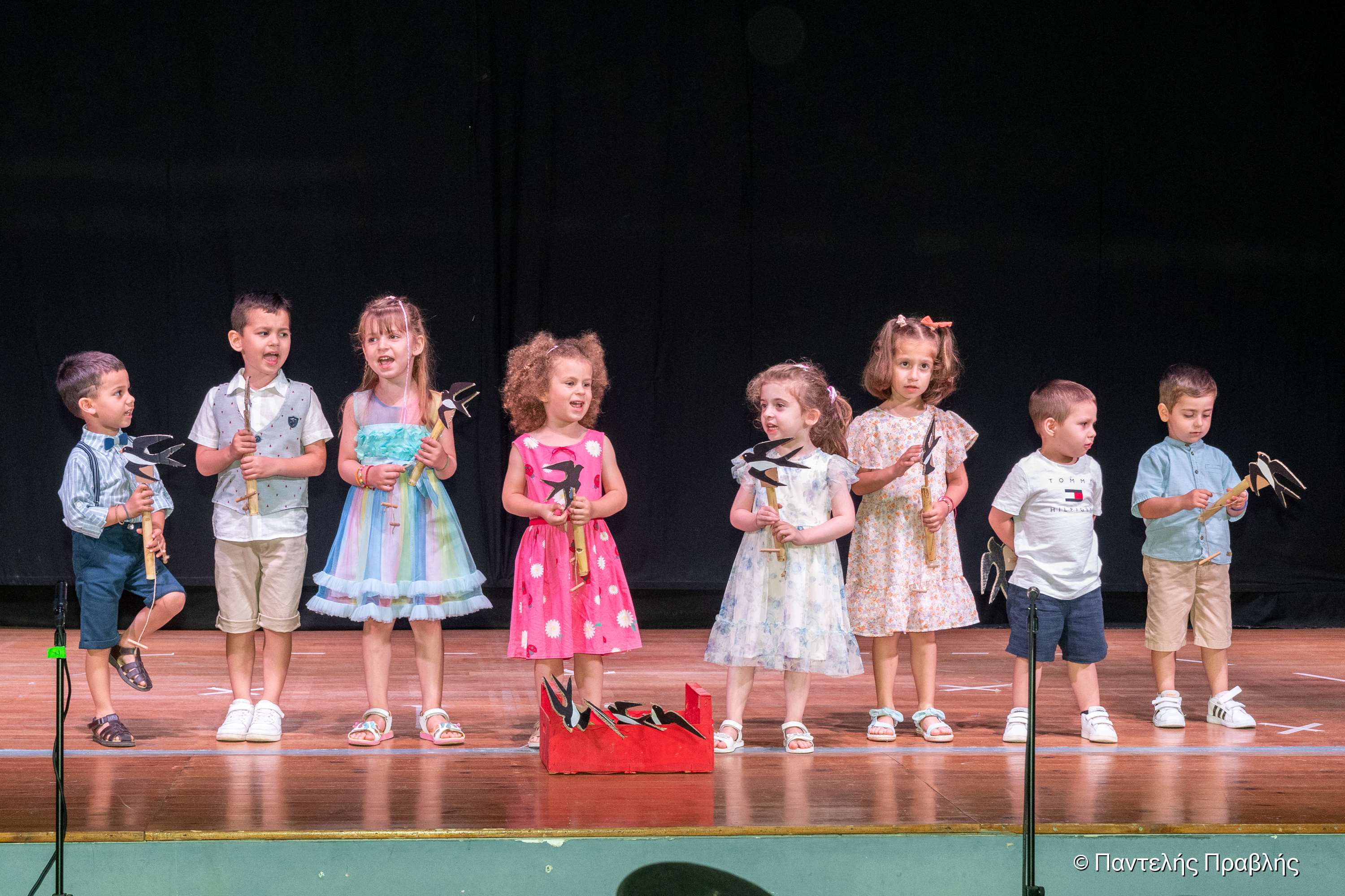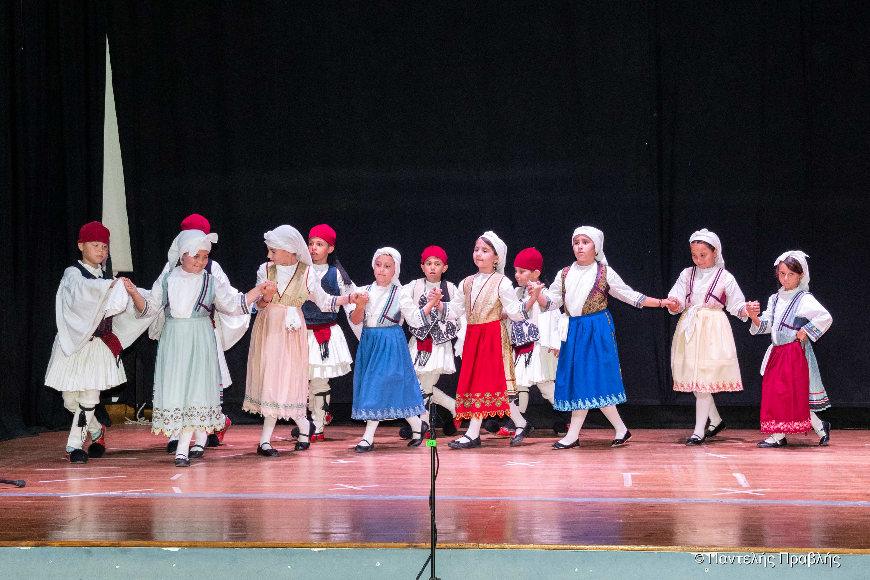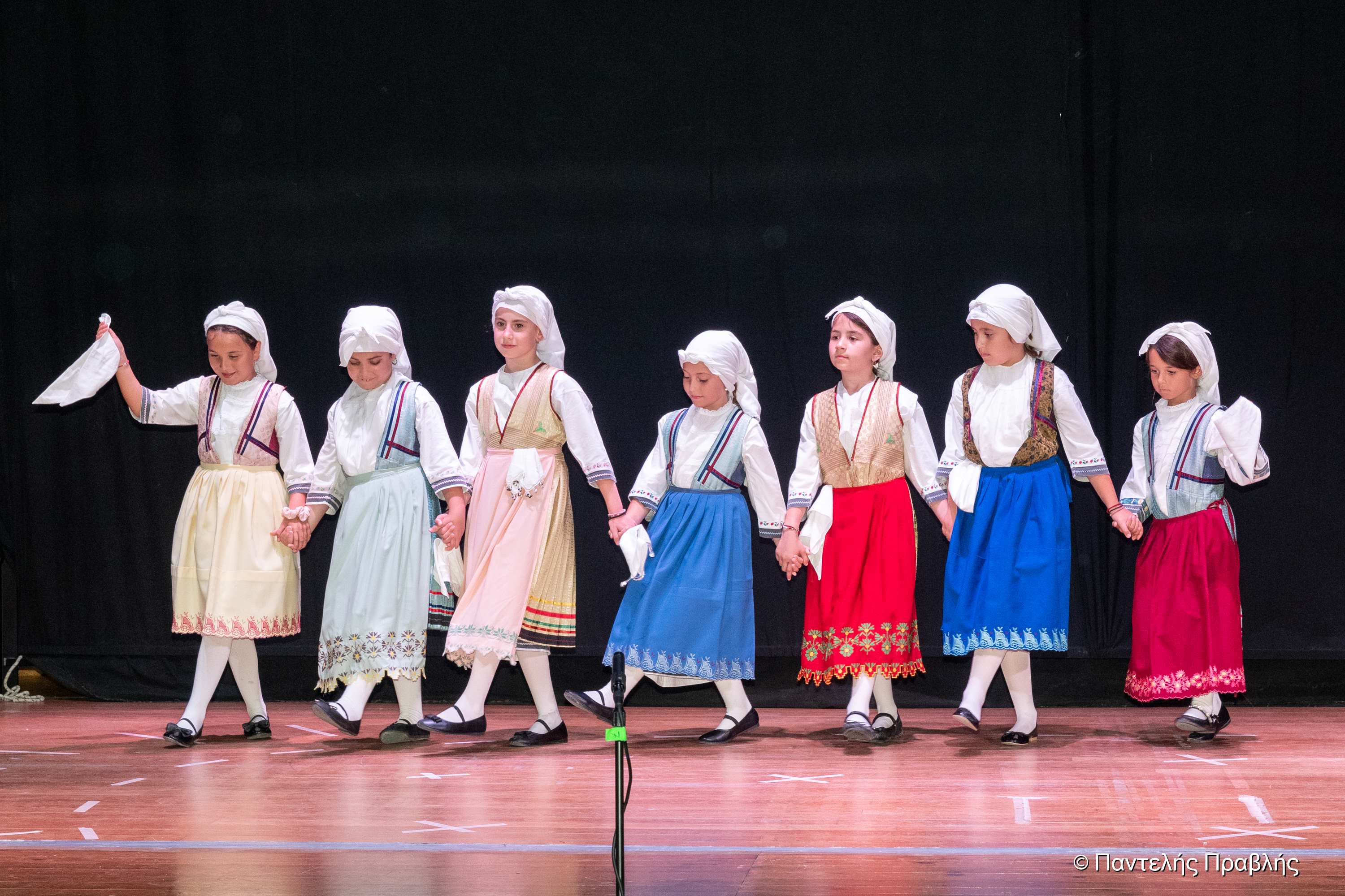 Οι πιο μικροί χορευτές και χορεύτριες από τις ομάδες της μουσικοκινητικής άνοιξαν την παράσταση με χελιδονίσματα, τραγούδια και χορευτικά μοτίβα. Ακολούθησαν οι μικρές σε ηλικία χορευτικές ομάδες, με τραγούδια και χορούς από την Πελοπόννησο, τη Θεσσαλία, την Ήπειρο, τη Μακεδονία και την Ανατολική Ρωμυλία-Μπάνα. Σειρά είχαν το Β. Αιγαίο, η Μακεδονία, τα Δωδεκάνησα και η Θράκη από τα μεγαλύτερα παιδιά, ενώ το κλείσιμο έκανε η εφηβική ομάδα με μια υπέροχη παρουσίαση τραγουδιών και χορών από την Κρήτη.