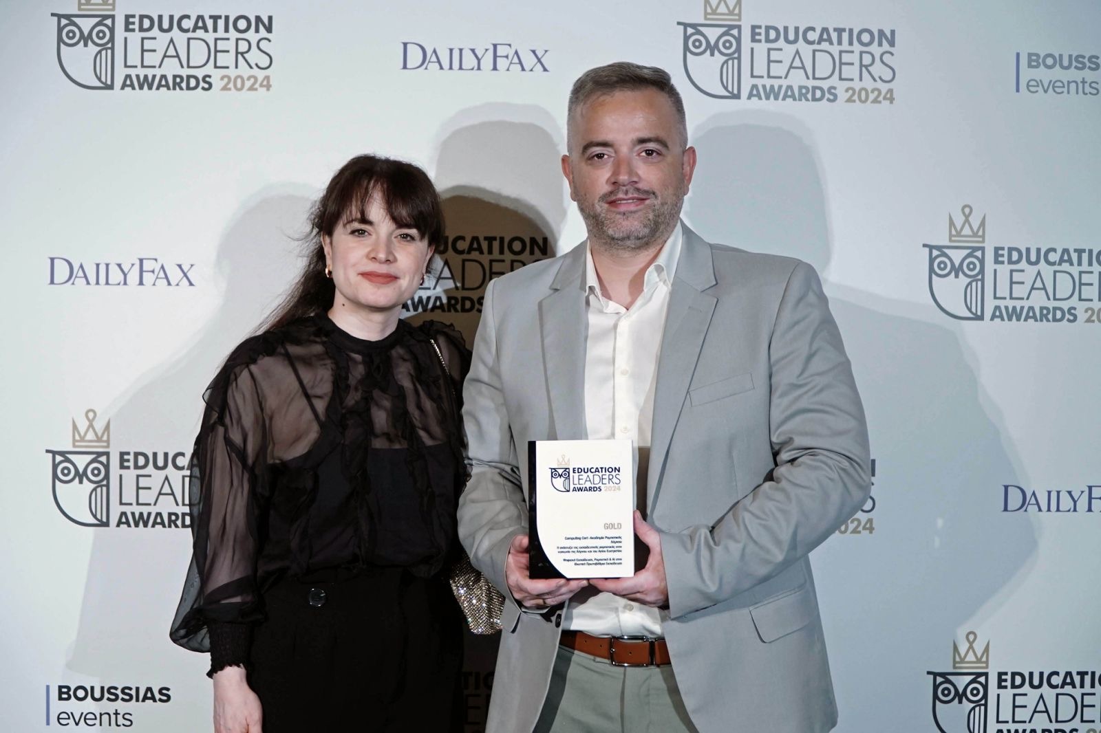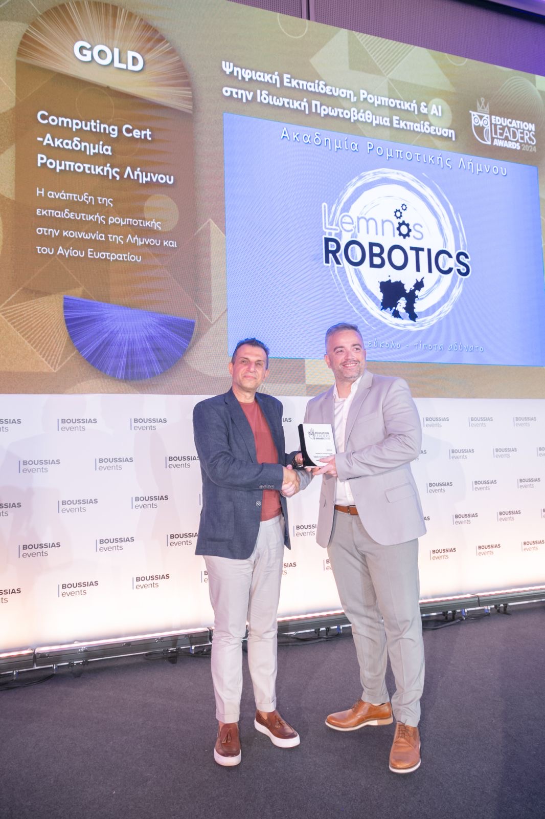 Το βραβείο της Λήμνου και του Computing Cert, παρέλαβε ο Αντώνης Μακρής από τον κ Βαφειαδάκη Γιάννη, πρόεδρο του ΟΕΦΕ (Ομοσπονδία Εκπαιδευτικών Φροντιστών Ελλάδος).