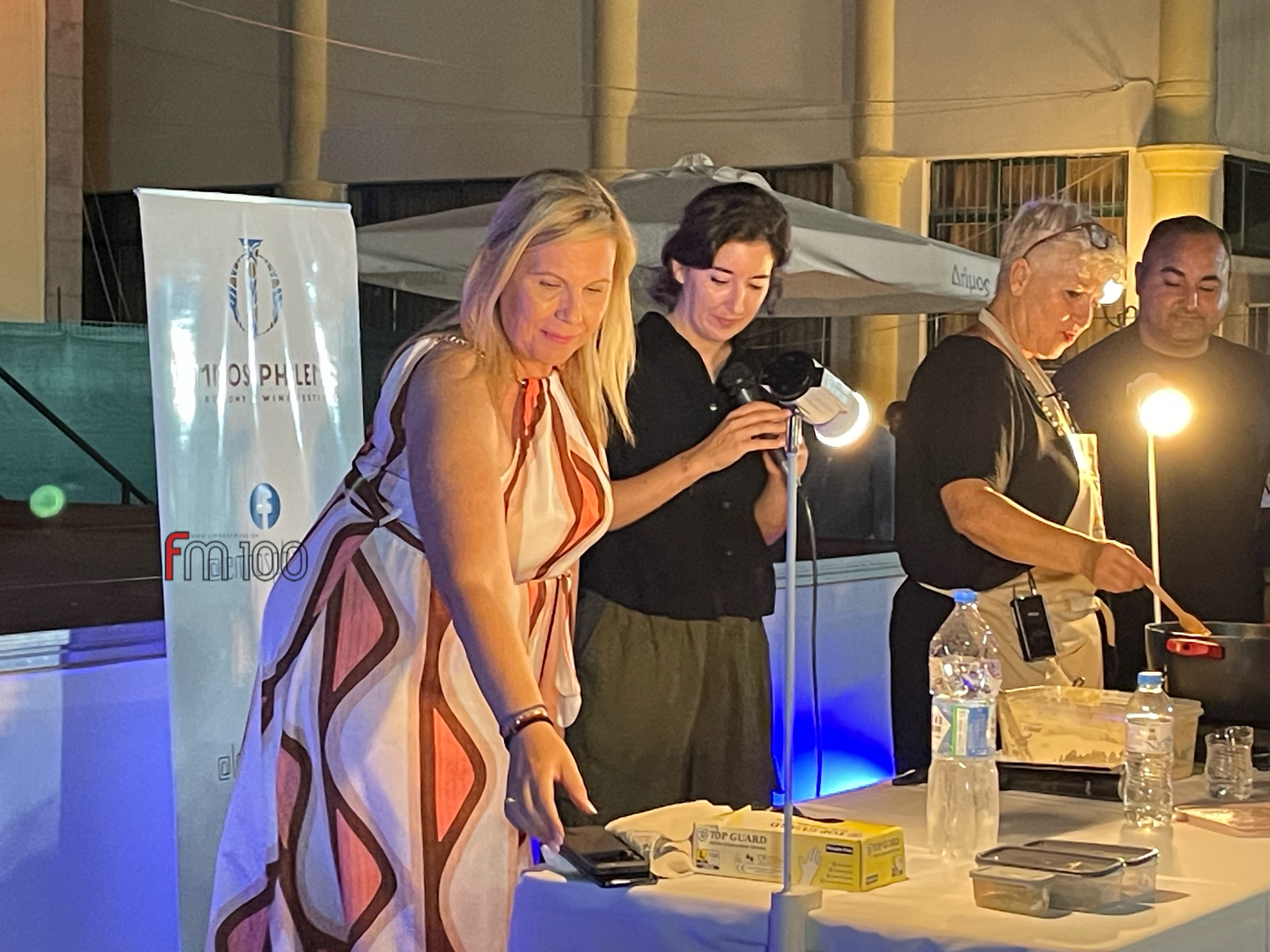 Η Δήμαρχος Λήμνου Ελεονώρα Γεώργα καθώς και η Αντιδήμαρχος Πολιτισμού Ιουλία Λυγδά, απηύθηναν χαιρετισμό ενώ στον ρόλο της…ειδικής γευσιγνώστριας βρέθηκε εχθές βράδυ, η γνωστή δημοσιογράφος του ΣΚΑΪ, η οποία έλκει την καταγωγή της από τη γειτονική Λέσβο και απολαμβάνει αυτές τις ημέρες τις διακοπές της στη Λήμνο.