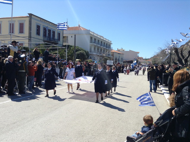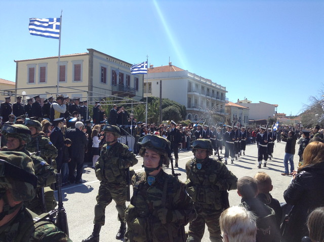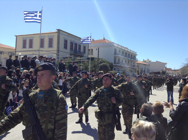 Ο καλός καιρός αποτέλεσε έναν καλό σύμμαχο και επέτρεψε τους κατοίκους του νησιού να κατακλύσουν το Ρωμέικο Γυαλό και να χειροκροτήσουν μαθητές και στρατιώτες.