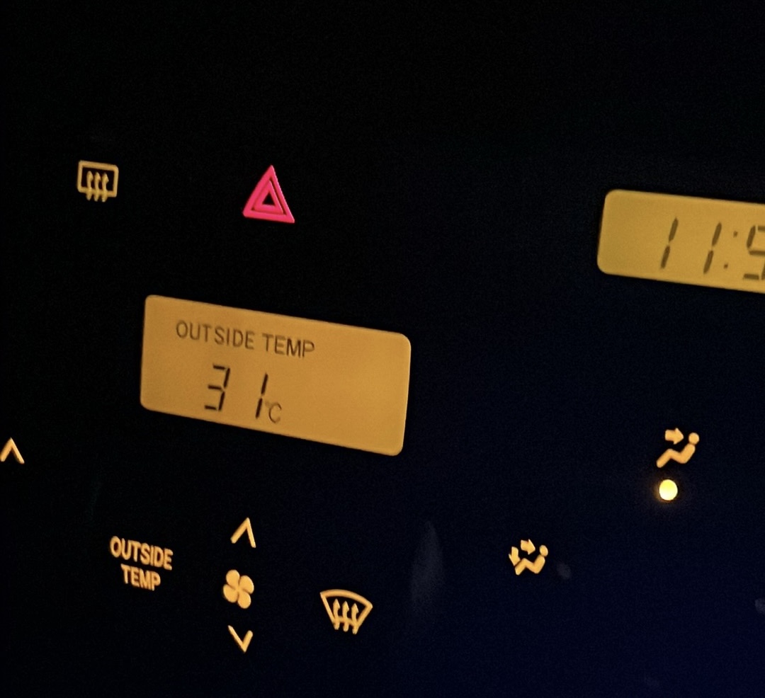 Στις φωτογραφίες, βλέπετε τη θερμοκρασία που καταγράφονταν εχθές το βράδυ στις 23:50, λίγο έξω από τη Μύρινα. 31 βαθμοί Κελσίου.