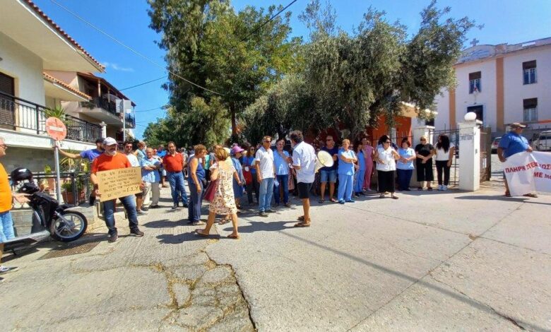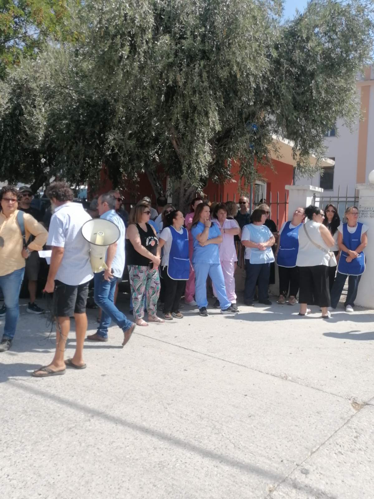 Μαζικά συμμετείχαν οι εργαζόμενοι, κάτοικοι και επισκέπτες της Λήμνου στη συγκέντρωση – αγωνιστική υποδοχή του Υπουργού Υγείας έξω από το νοσοκομείο του νησιού, στην οποία καλούσαν τα εργατικά σωματεία του δημόσιου και ιδιωτικού τομέα.