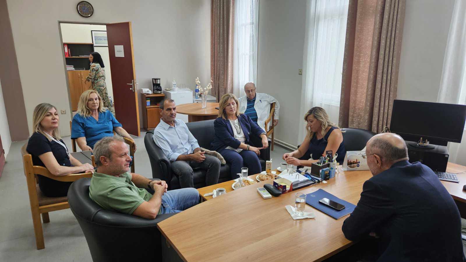 Ο κ. Βαρτζόπουλος συναντήθηκε με την Αντιπρόεδρο του ΔΣ του Γ.Ν.Κ.Υ Μαρία Ρούσου, με τον Διευθυντή της Ψυχιατρικής Κλινικής του Νοσοκομείου, Κώστα Κατσιγιαννόπουλο, καθώς και με το ιατρικό και νοσηλευτικό προσωπικό του νοσοκομείου και συζήτησε για την εφαρμογή του νέου νόμου 5129/2024, για την ολοκλήρωση της ψυχιατρικής μεταρρύθμισης και τη δημιουργία του Εθνικού Δικτύου Υπηρεσιών Ψυχικής Υγείας.
