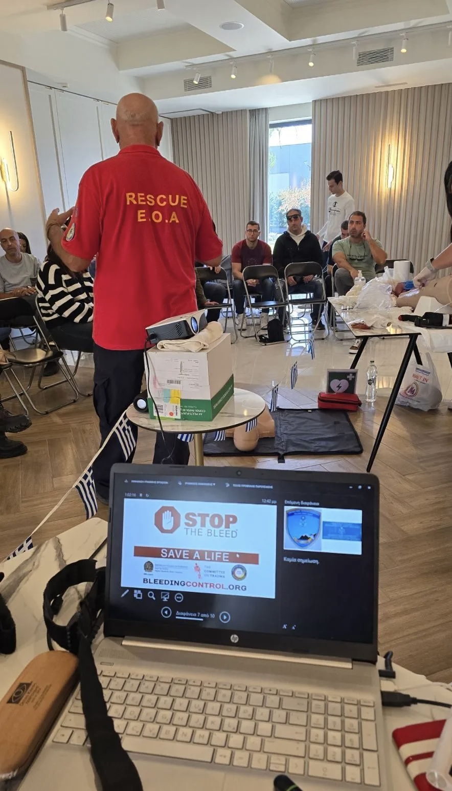 Η Ε.Ο.Α. παραμένοντας πιστή στις Αξίες της και αφοσιωμένη στην προσφορά Ποιοτικής Εκπαίδευσης Πρώτων Βοηθειών, με σκοπό τη διασφάλιση της ζωής του Συνανθρώπου μας, διοργάνωσε, επί διήμερο, το Διεθνώς Πιστοποιημένο σεμινάριο “STOP THE BLEED®” για τα τοπικά Στελέχη των Ενόπλων Δυνάμεων, των Σωμάτων Ασφαλείας και τους Εθνοφύλακες.