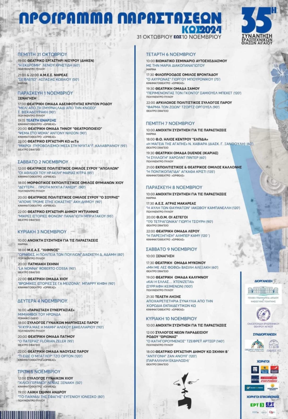 Χρόνια τώρα, αυτή η συνάντηση αποτελεί μια καλλιτεχνική, ετήσια ευκαιρία η οποία φέρνει κοντά ερασιτεχνικές θεατρικές ομάδες από τα νησιά του Αιγαίου.