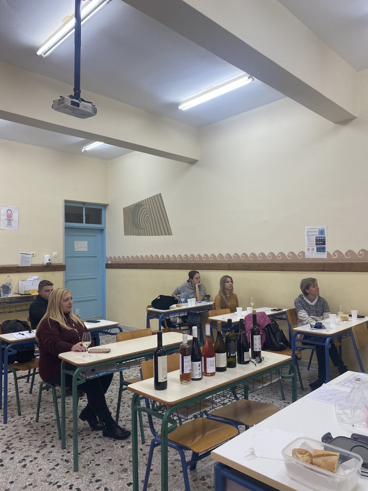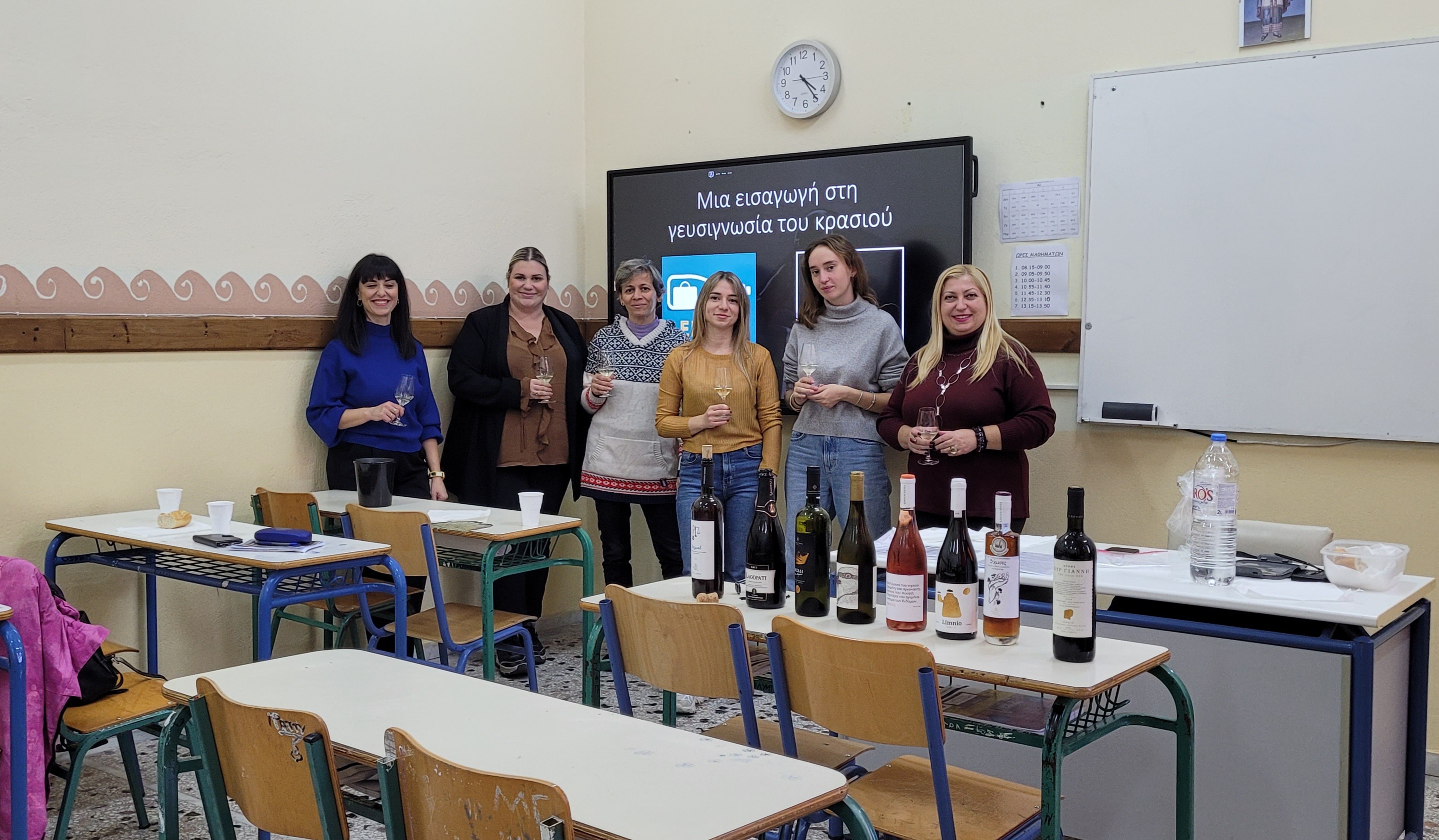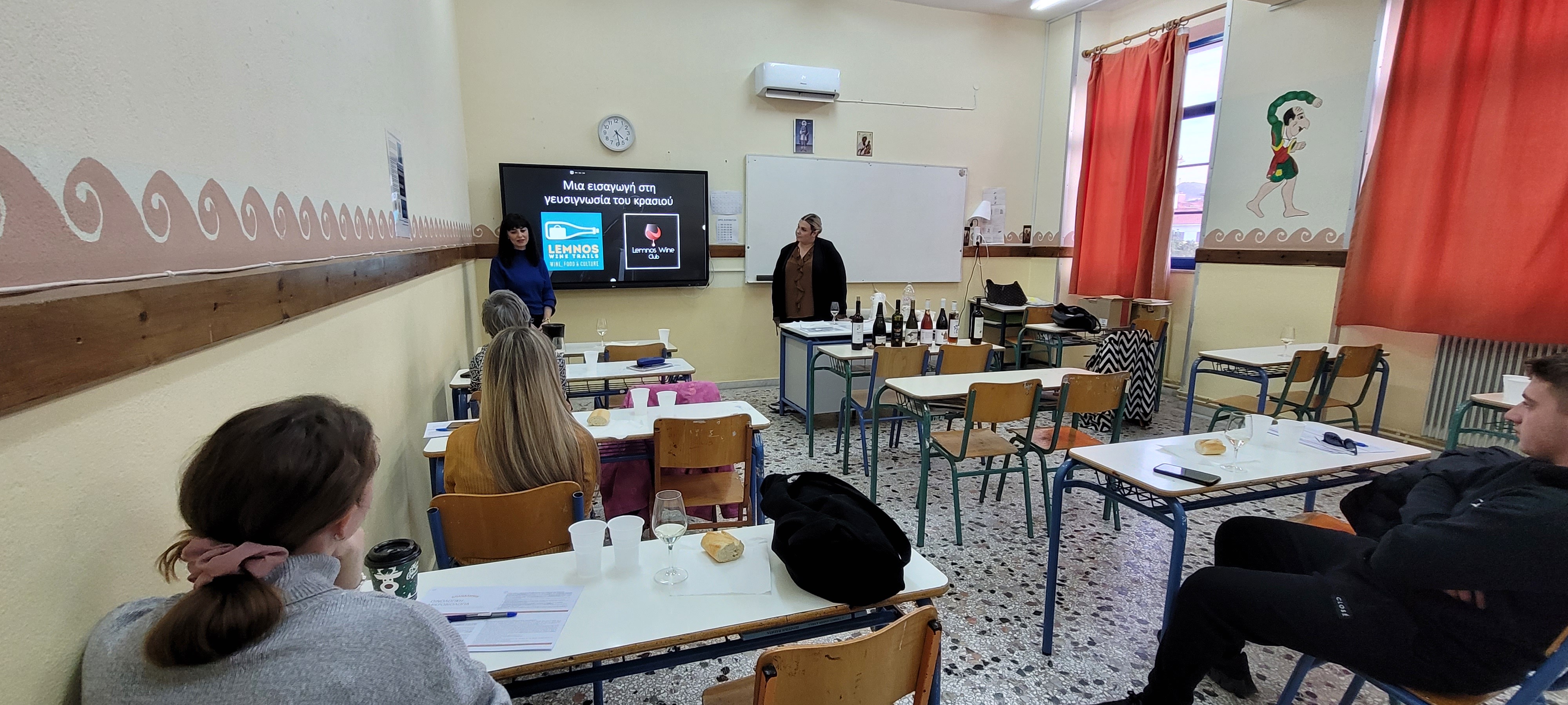 Η κα Κωνσταντάρα, εκ μέρους του Limnos Wine Trails και Limnos Wine Club, έφτιαξε μια λίστα Λημνιών οίνων, διαφορετικών τύπων, τους οποίους παρουσίασε και στη συνέχεια δοκίμασε μαζί με τους σπουδαστές, την εκπαιδεύτρια και την Διευθύντρια της Σχολής. Επεξήγησε ποιες γνώσεις οφείλει να έχει ένας αμπελουργός-οινοποιός για να δοκιμάσει και να αξιολογήσει το προϊόν του και δίδαξε στους σπουδαστές πως να πραγματοποιήσουν σωστά και τεχνικά οργανοληπτικό έλεγχο οπτικά, οσφρητικά και γευστικά.