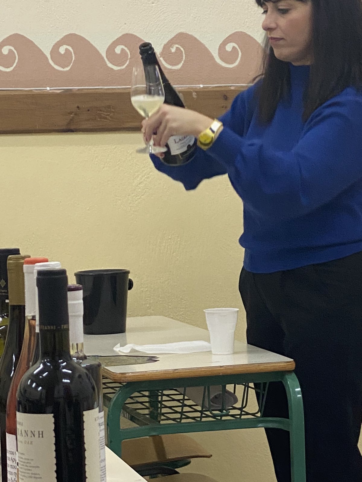 Εκπροσωπώντας το Limnos Wine Trails και το Limnos Wine Club, η κα Κωνσταντάρα παρουσίασε μια ποικιλία λημνιών οίνων, εξηγώντας τις τεχνικές αξιολόγησής τους. Στη δοκιμή περιλήφθηκαν οκτώ τοπικά κρασιά, καθώς και ένα συλλεκτικό Ξινόμαυρο του 2018 από το Κτήμα Κυρ-Γιάννη, όλα ευγενική χορηγία του Χ. Παλαιολογούδια και του καταστήματος «Η Λήμνος μας».