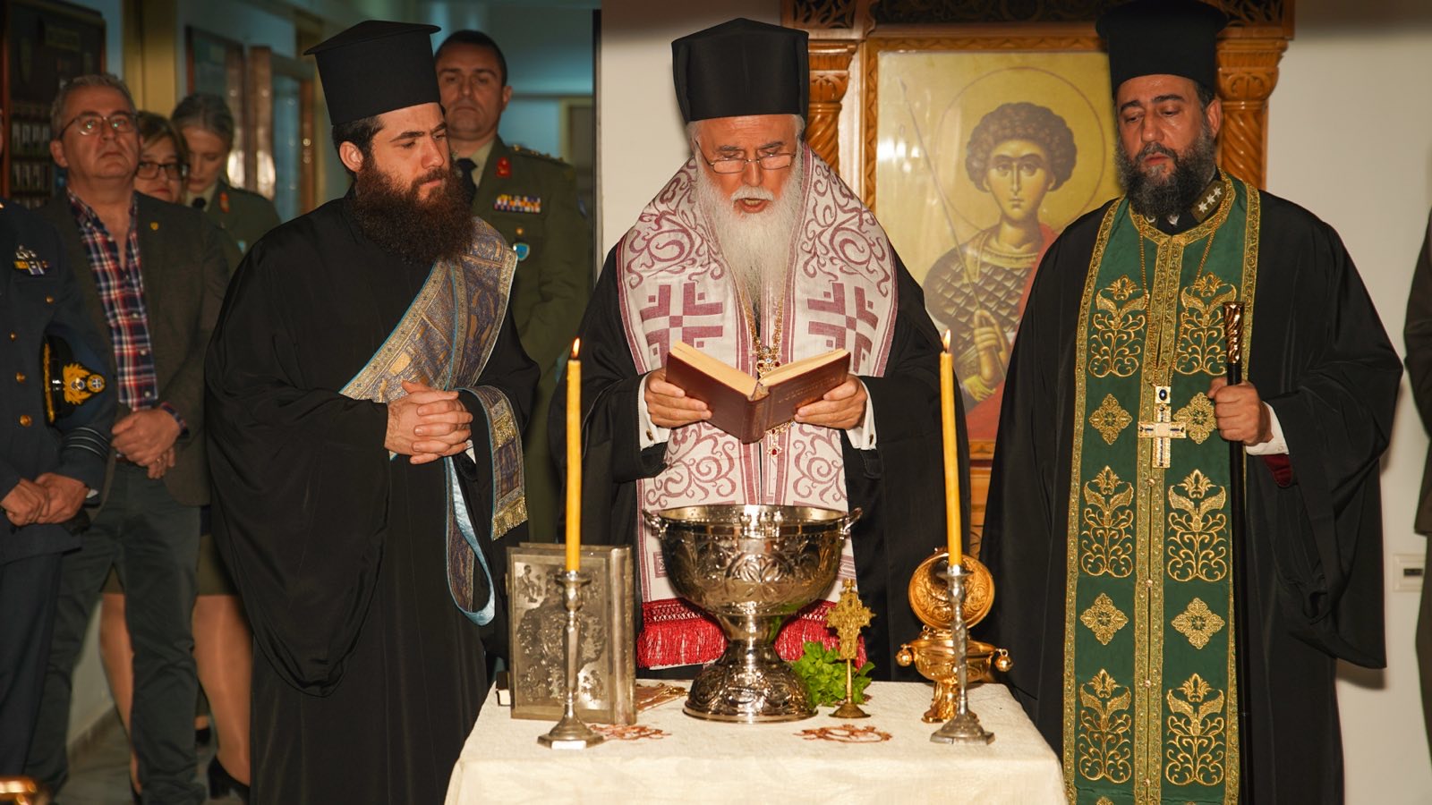 Η τελετή, στην οποία αποδόθηκε στρατιωτικός σεβασμός στην ιστορική μνήμη της Λήμνου πραγματοποιήθηκε υπό την παρουσία του Σεβασμιωτάτου Μητροπολίτη Λήμνου & Αγίου Ευστρατίου κ. Ιεροθέου, ο οποίος πλαισιώθηκε από τον Στρατιωτικό Ιερέα π. Νικόλαο Μπάντρα και τον Διάκονο π. Ηλία Μιχαηλίδη.