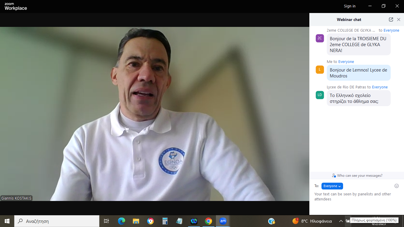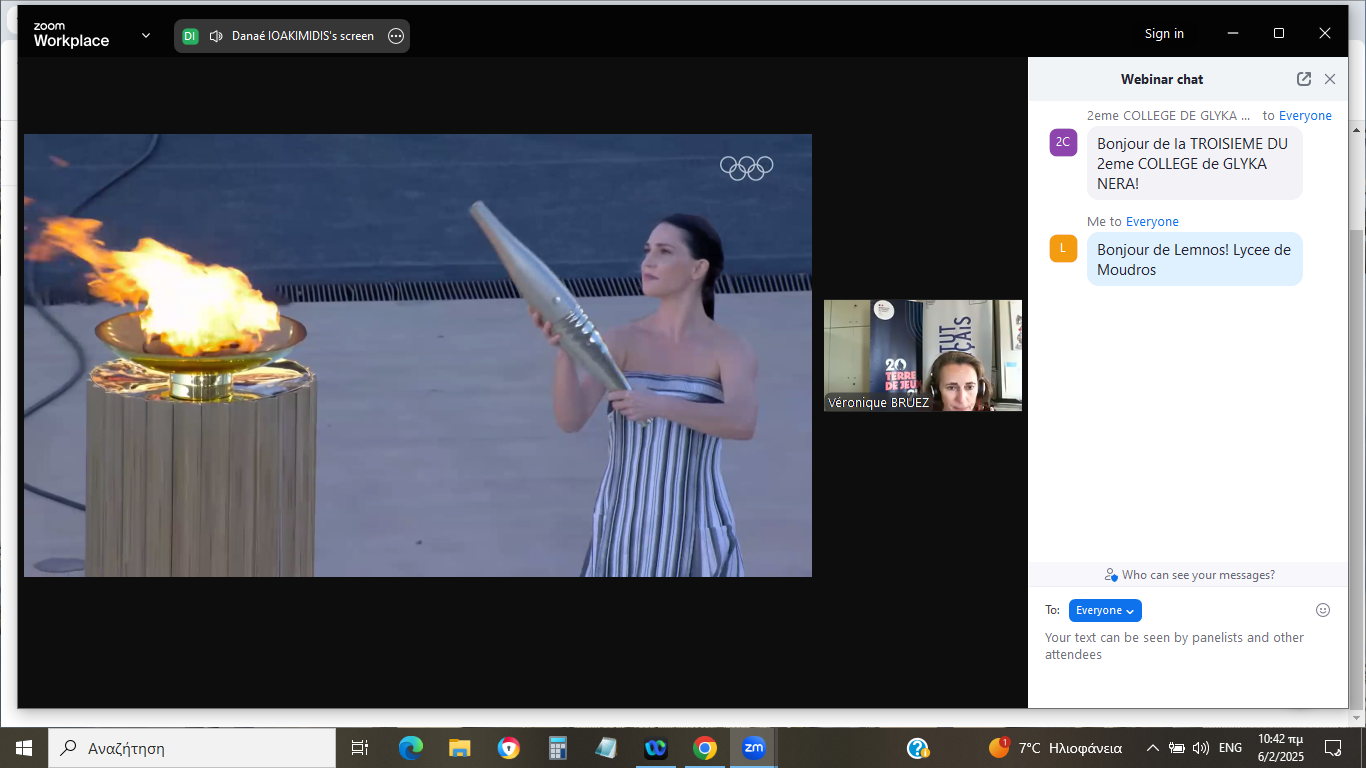 Στο πλαίσιο αυτής της πρωτοβουλίας, οι μαθητές του Τμήματος Γαλλικών της Α’ Λυκείου του ΓΕΛ Μούδρου έλαβαν μέρος, την Πέμπτη 6 Φεβρουαρίου, σε τηλεδιάσκεψη όπου είχαν την ευκαιρία να συνομιλήσουν με τον Παραολυμπιονίκη κολύμβησης, Γιάννη Κωστάκη. Κατά τη διάρκεια της συνάντησης, οι μαθητές παρακολούθησαν βίντεο από την παράδοση της Ολυμπιακής Φλόγας στη Γαλλία, καθώς και στιγμιότυπα από τους Ολυμπιακούς και Παραολυμπιακούς Αγώνες του Παρισιού 2024.