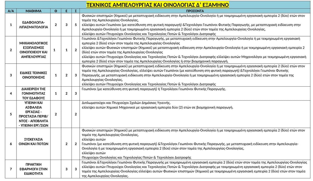 - Πτυχιούχοι Οινολογίας και Τεχνολογίας Ποτών & Τεχνολόγοι Διατροφής
