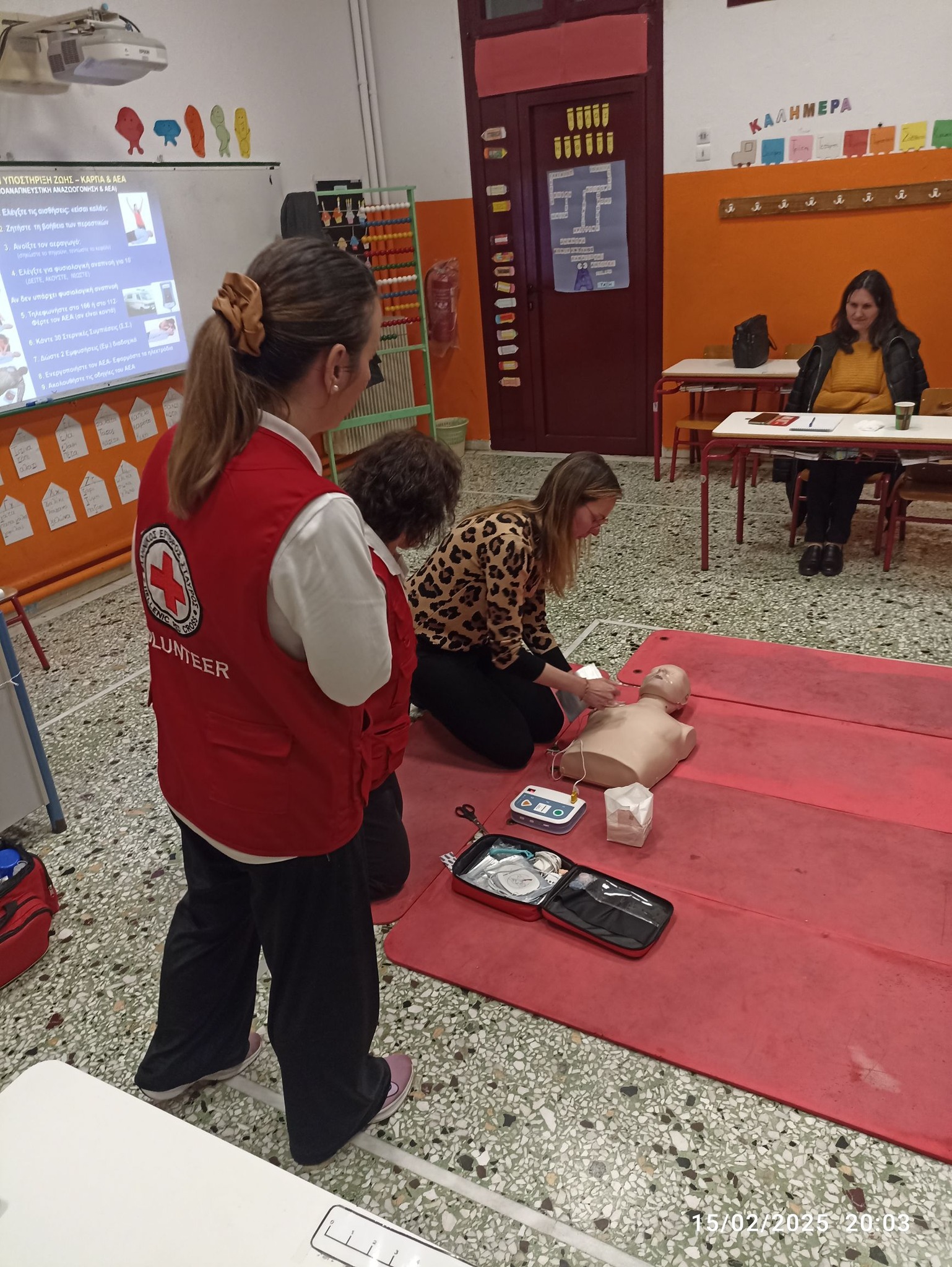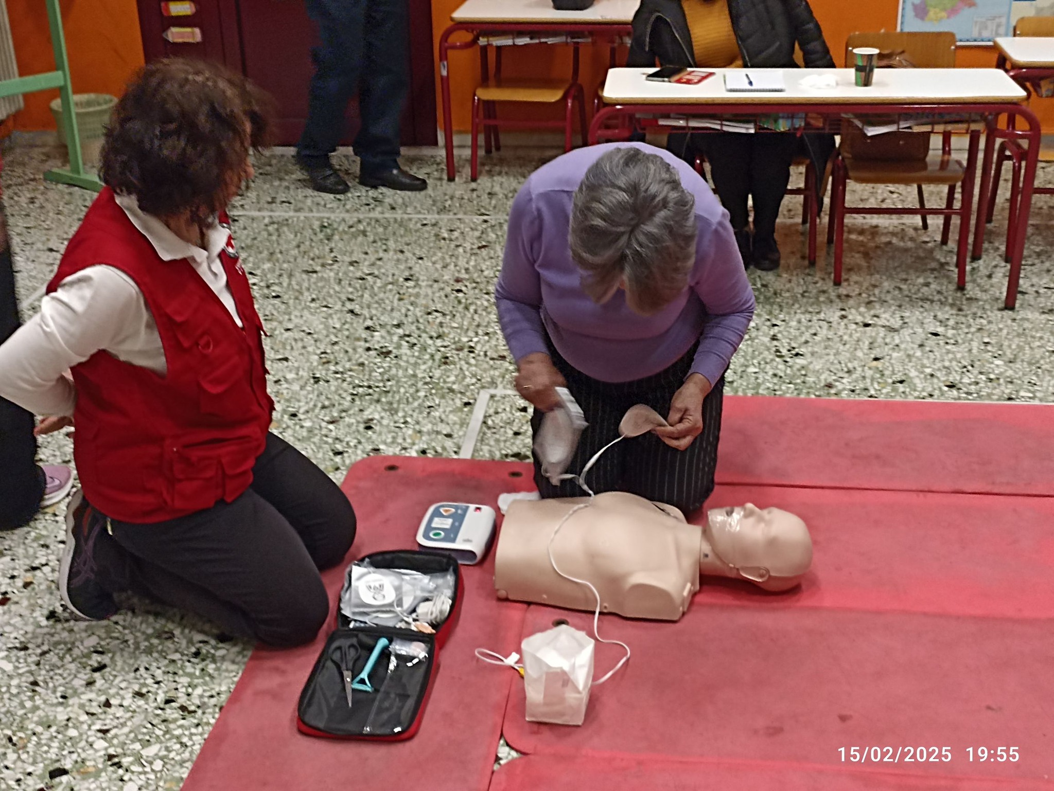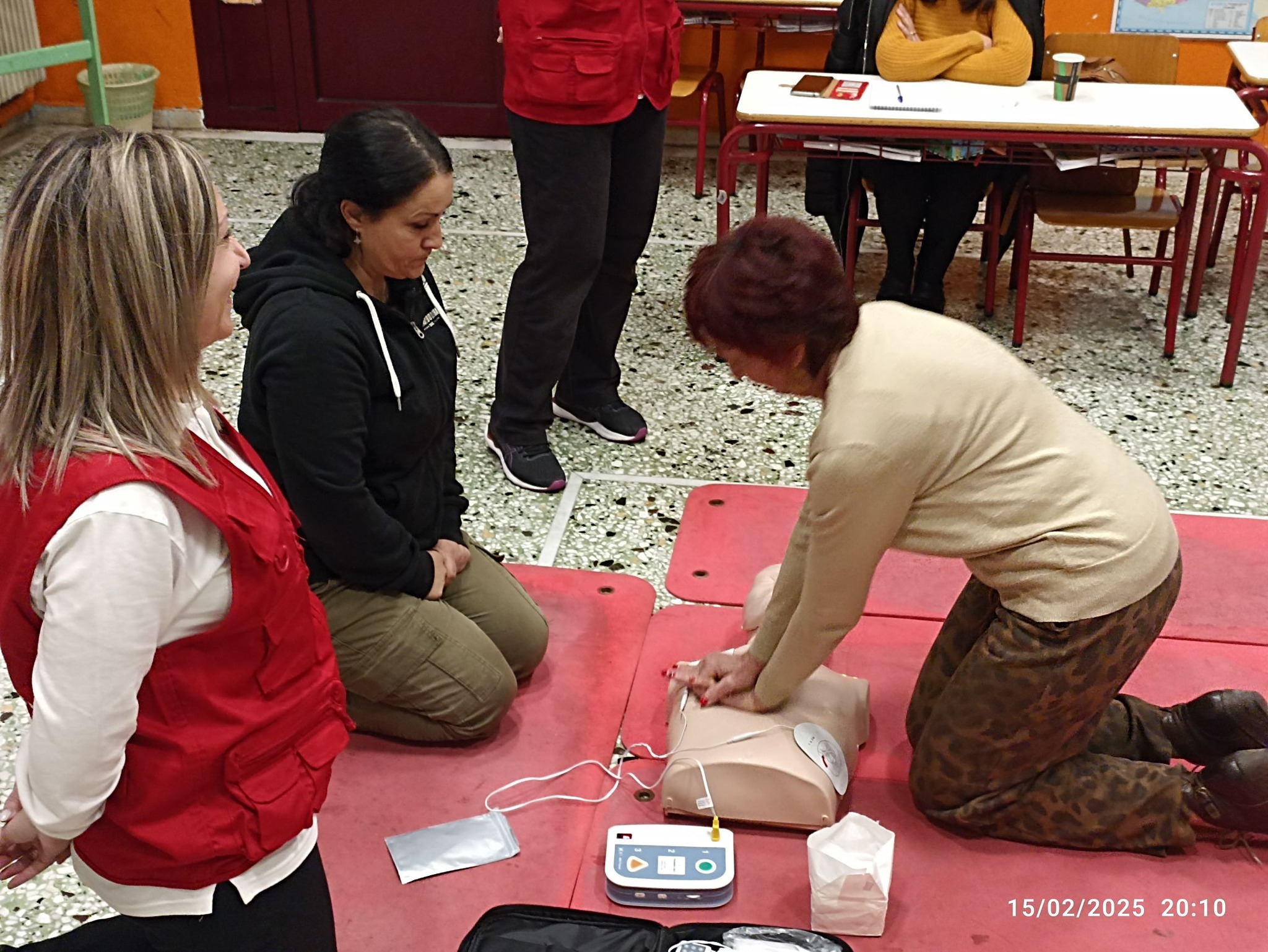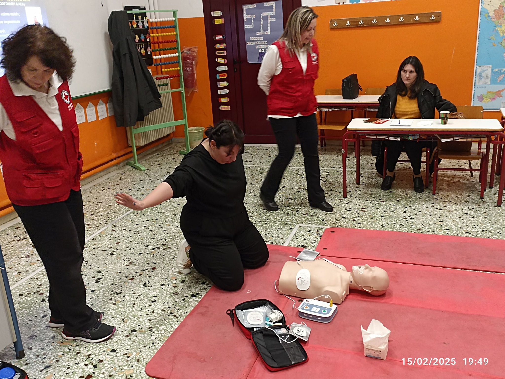 Η εκπαίδευση έγινε από τις Εθελοντριες πιστοποιημένες Εκπαιδευτριες του τομέα υγείας του ΕΕΣ του Περιφερειακού Τμήματος Λήμνου -Αγιου Ευστρατίου, Αλέξ. Τζιρτη, Σοφία Αρβανιτίδη, Βάσια Καραγιάννη, παρουσία του Προέδρου του ΠΣ Δημητρίου Κ. Αχιλαδελλη.